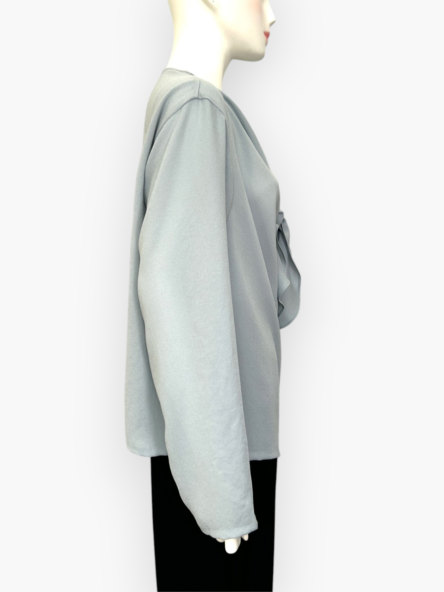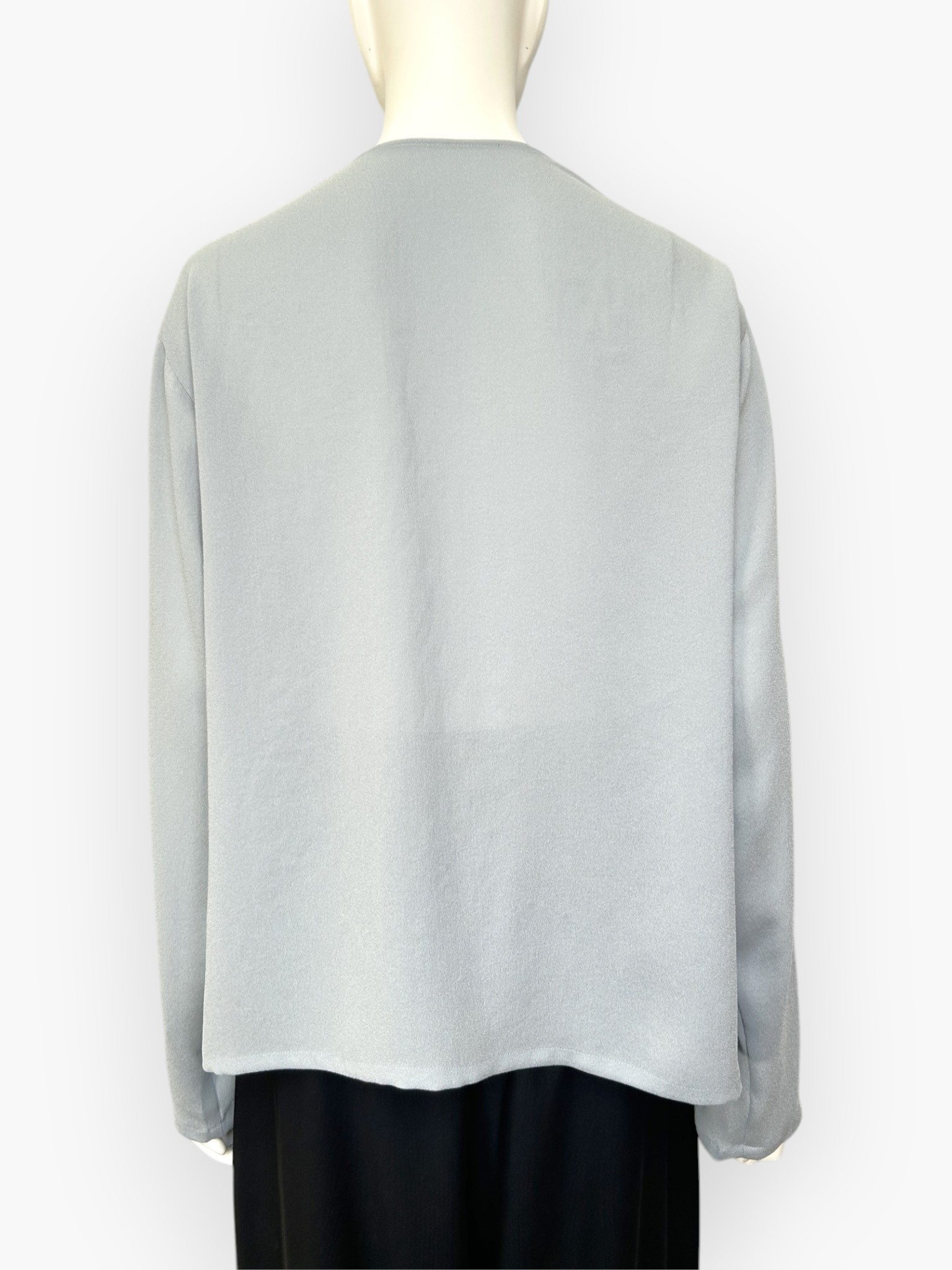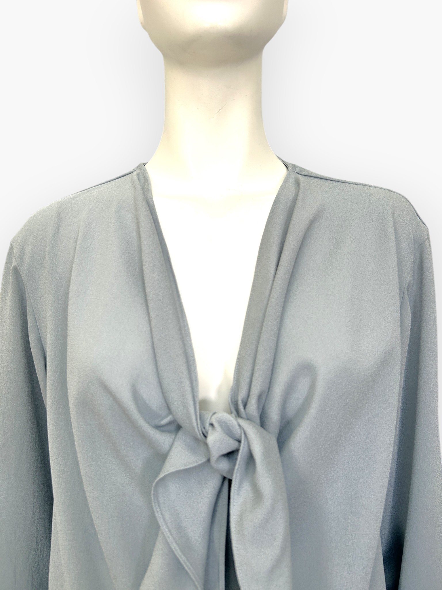 動く度に揺れる、ほんのりシアーなアムンゼンの生地感と共布で作られたボウタイが上品な印象を与えてくれる1枚です。