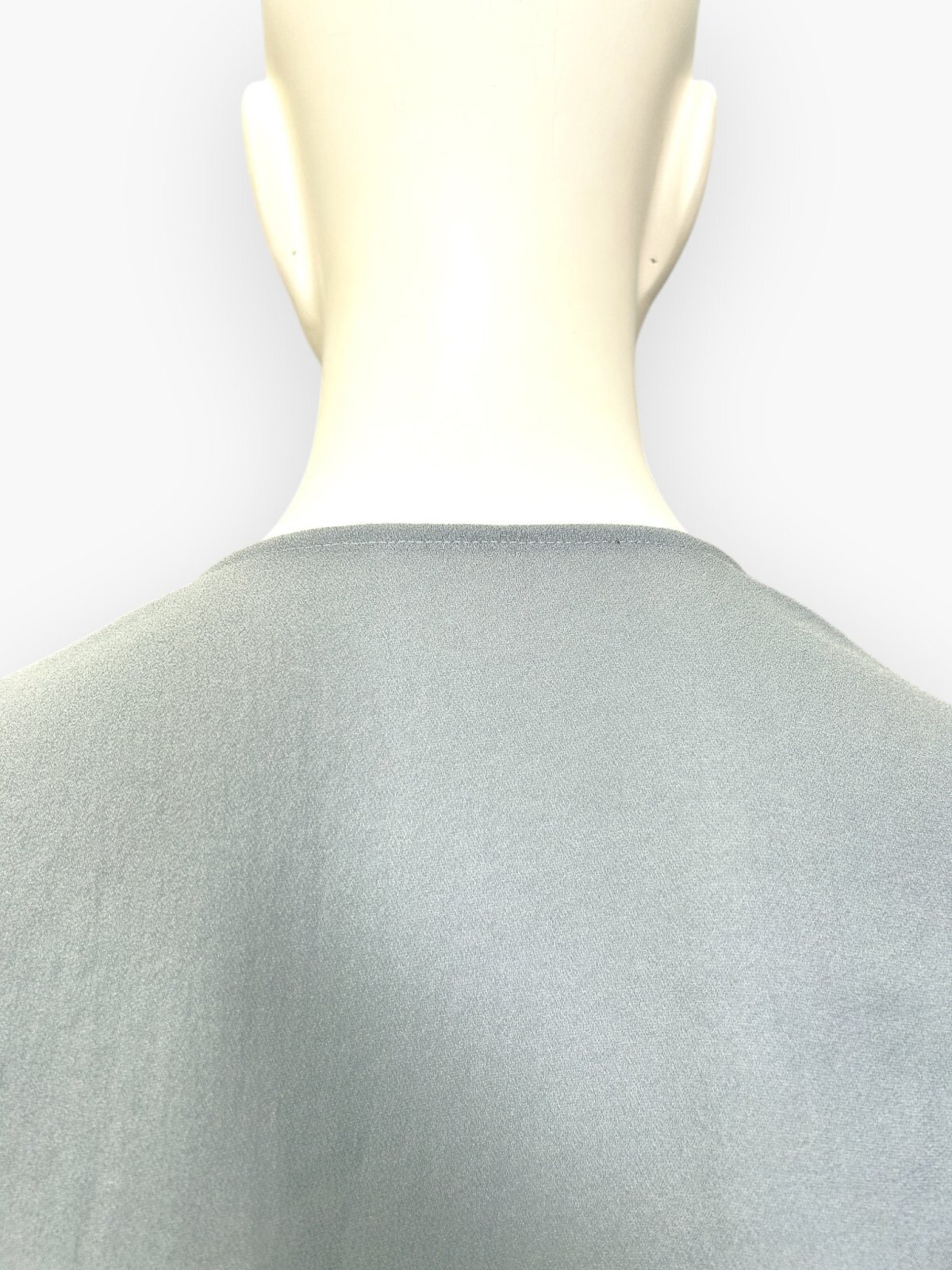 シルクのような風合いの糸を使用。糸に撚りをかけ光沢感を抑えつつ、シルクライクな落ち感と膨らみが特徴。