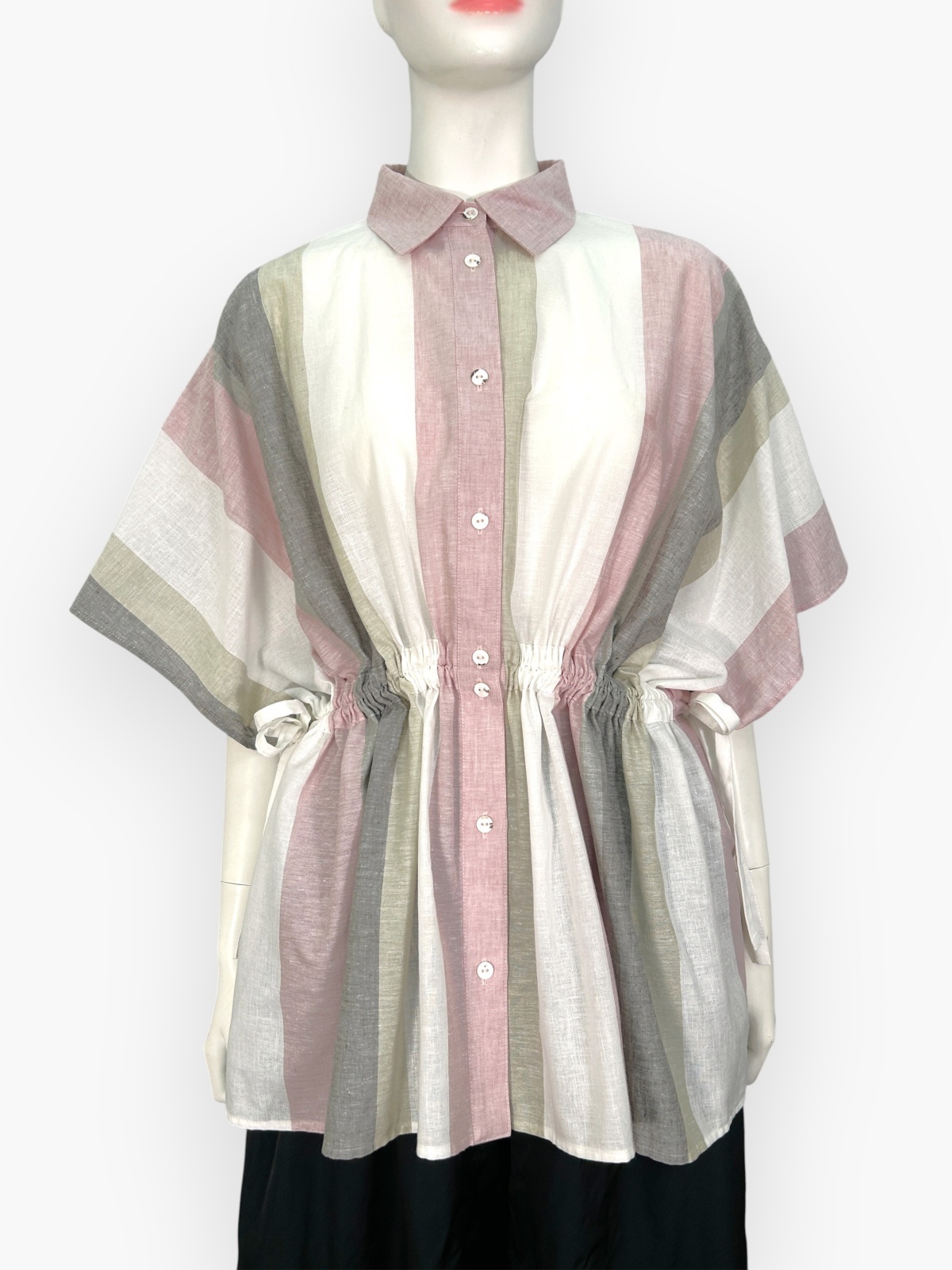 コットンリネンの素材は汗ばむ季節でも肌に纏わり付かず涼しくご着用いただけます。