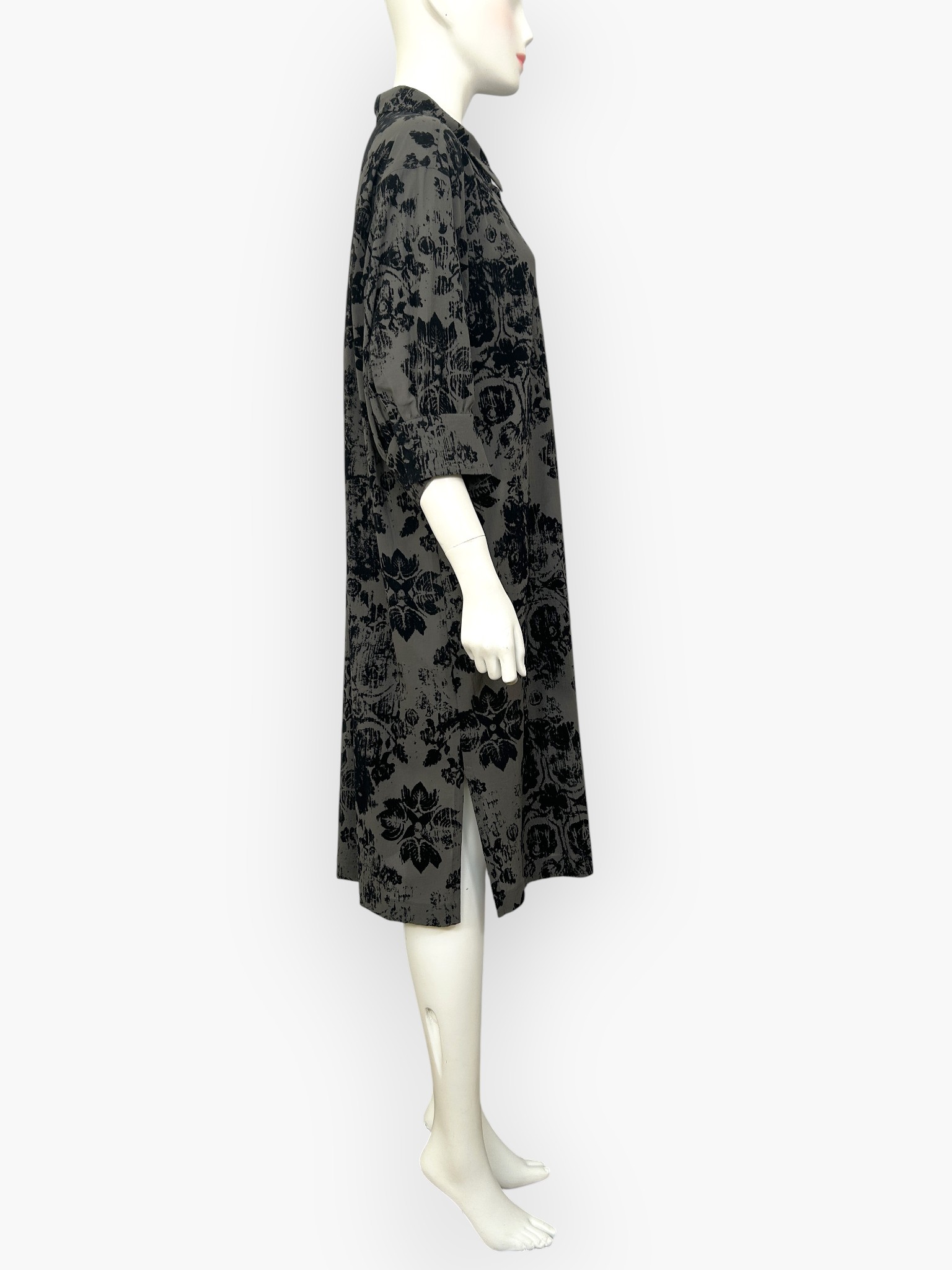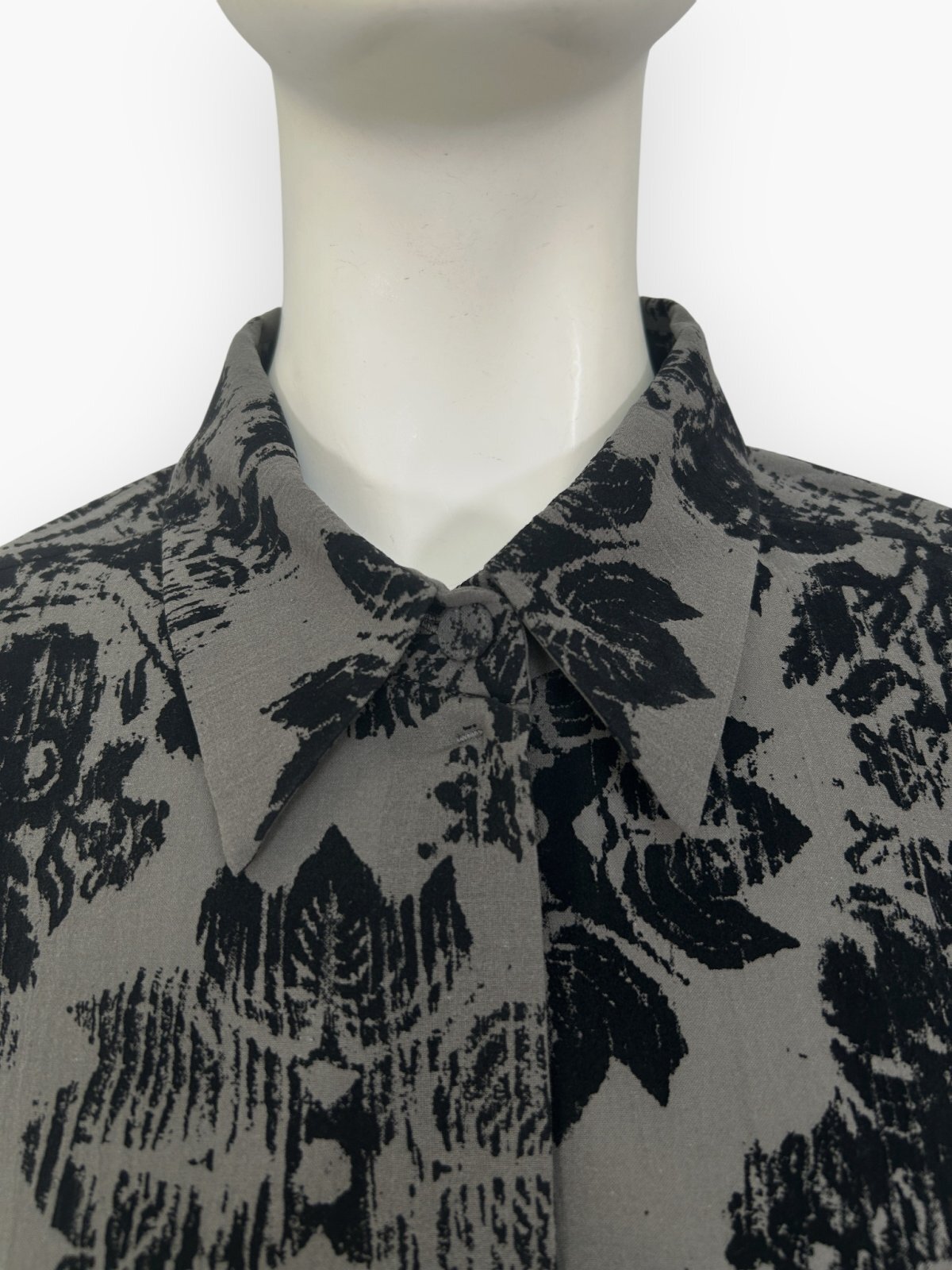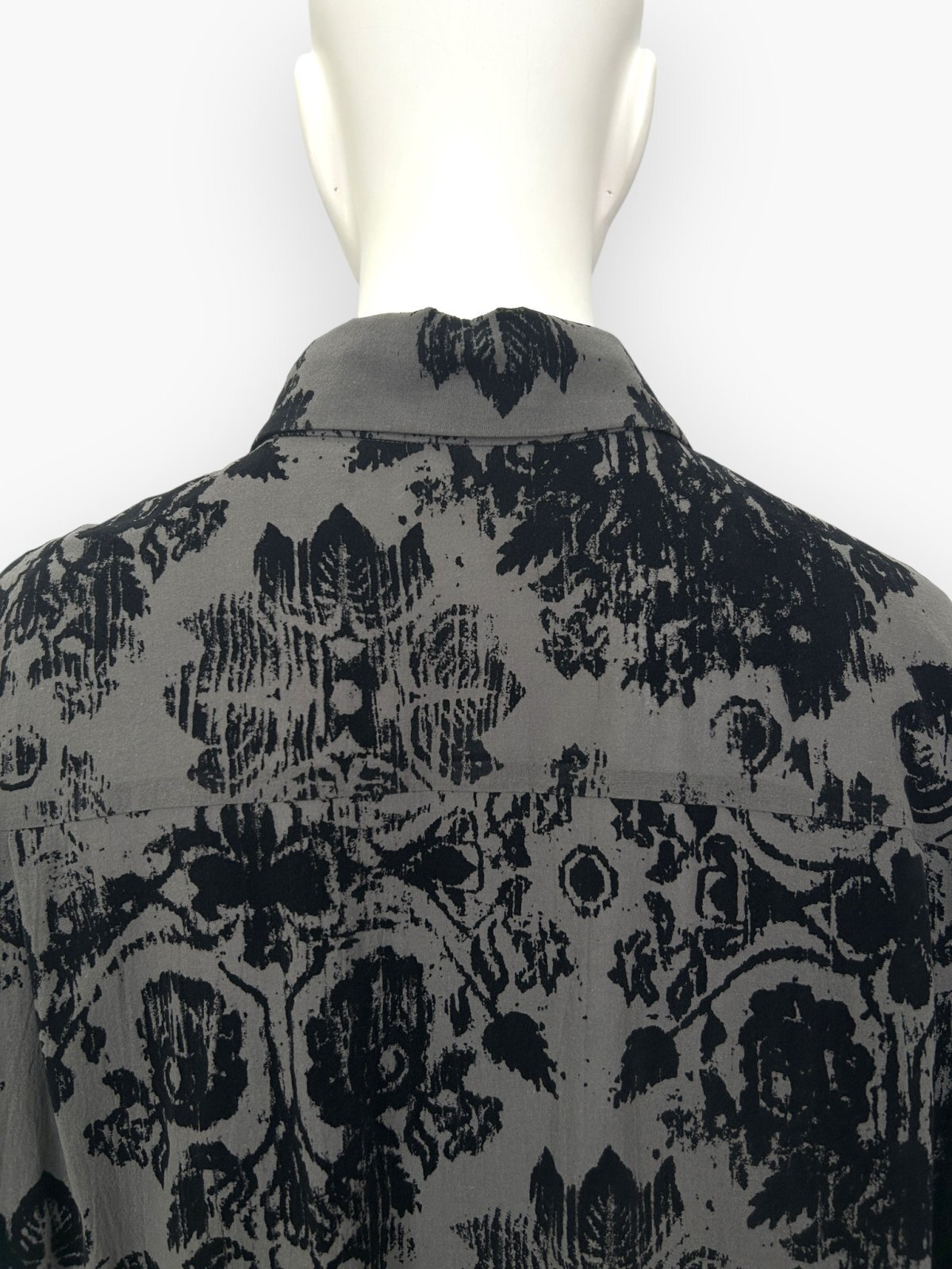 シャビーの効いた壁紙調の美しい柄をフロッキーで表現したロングブラウス。