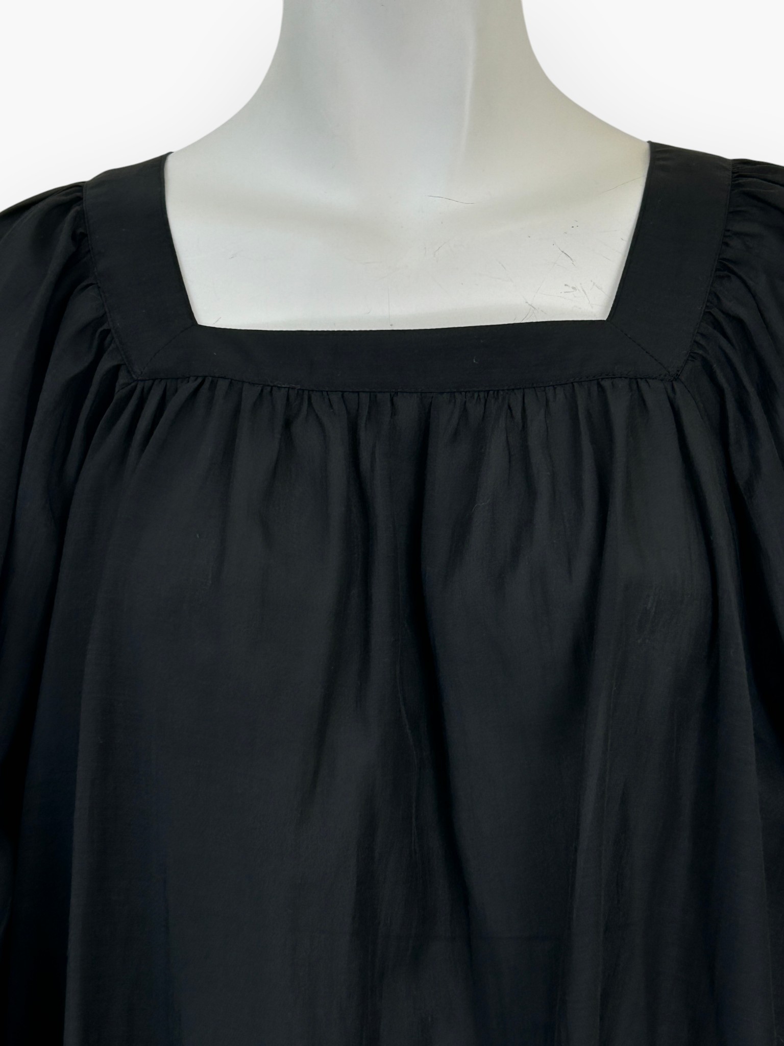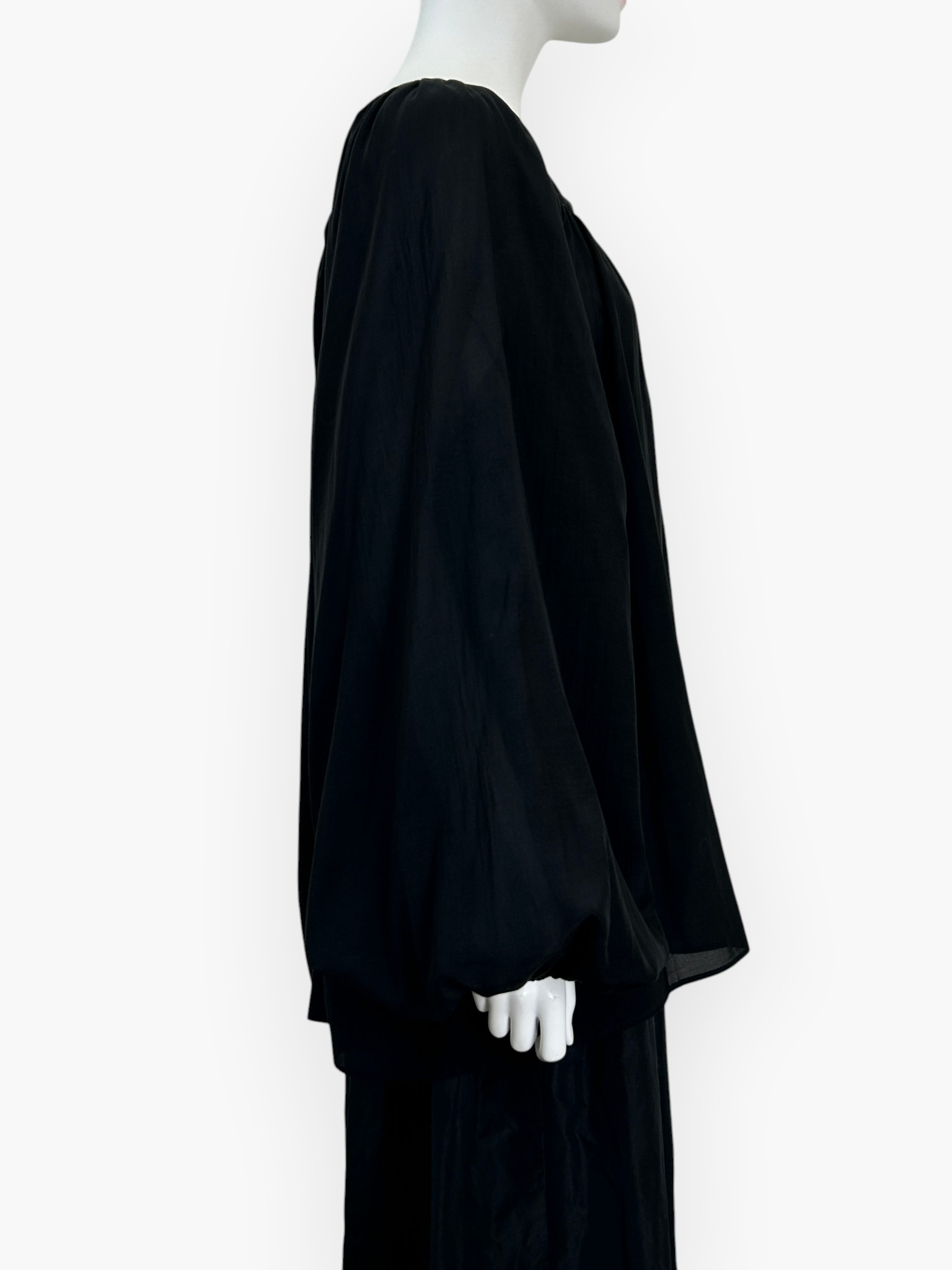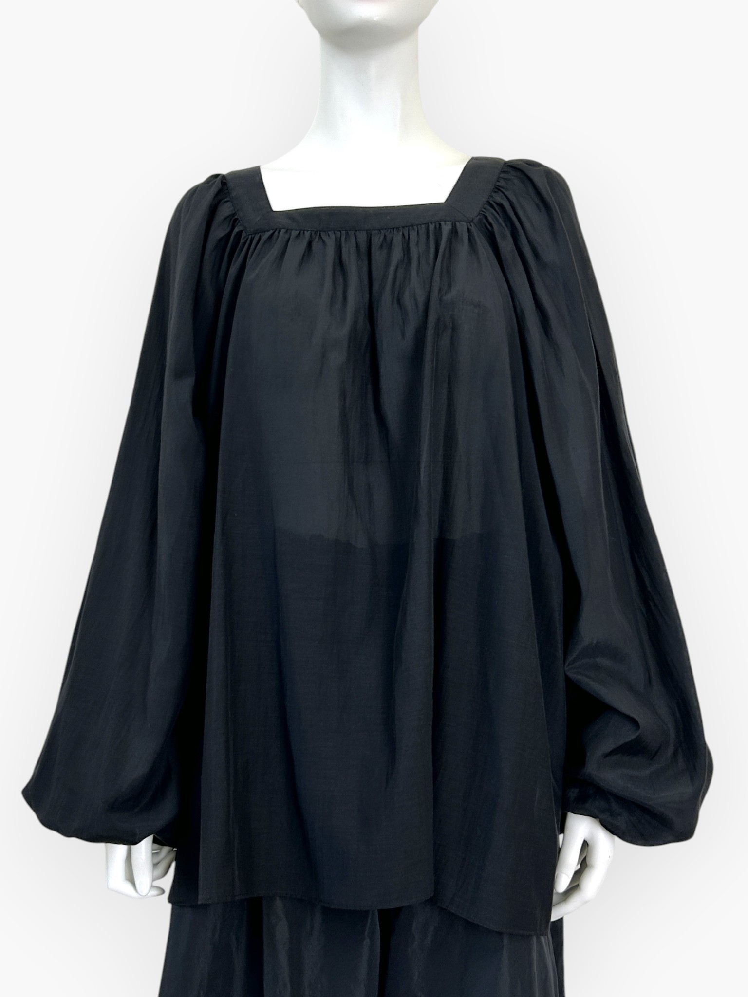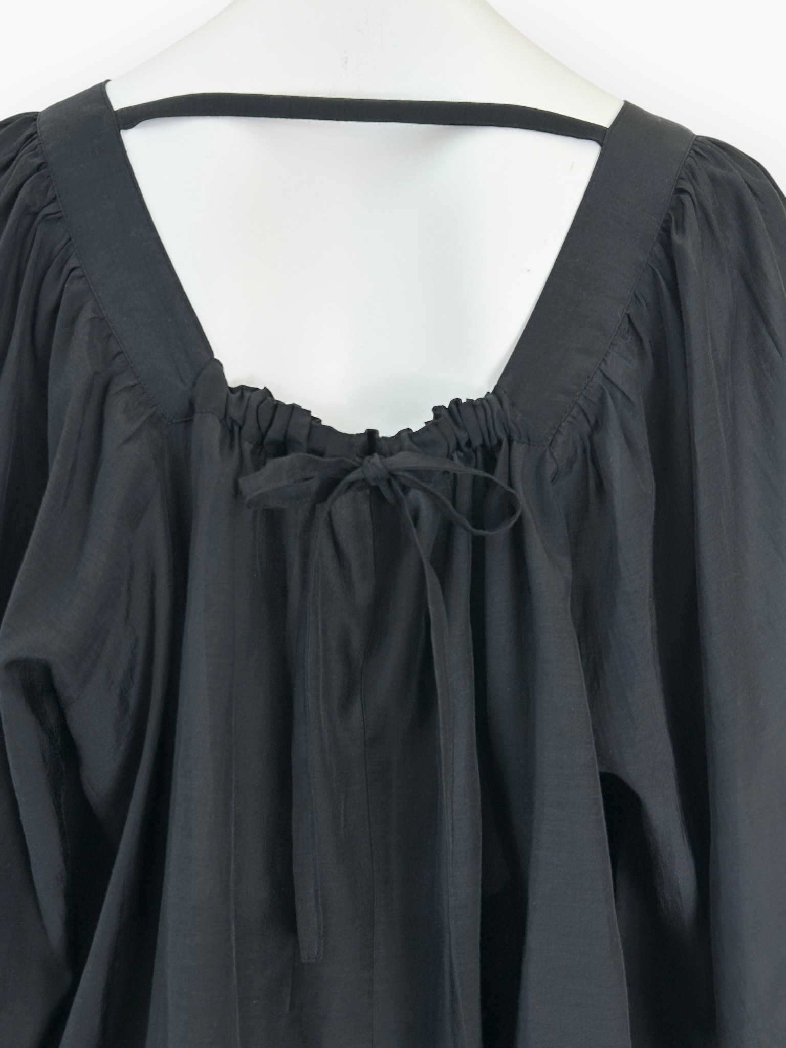 袖のボリュームが印象的でフェミニンなギャザーブラウス。