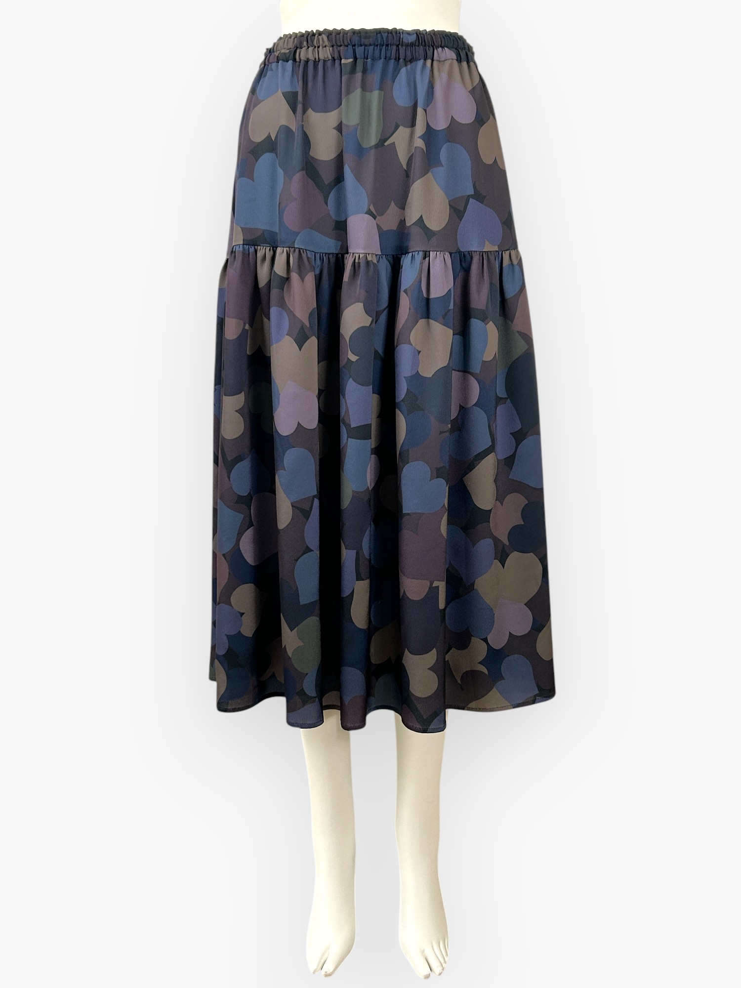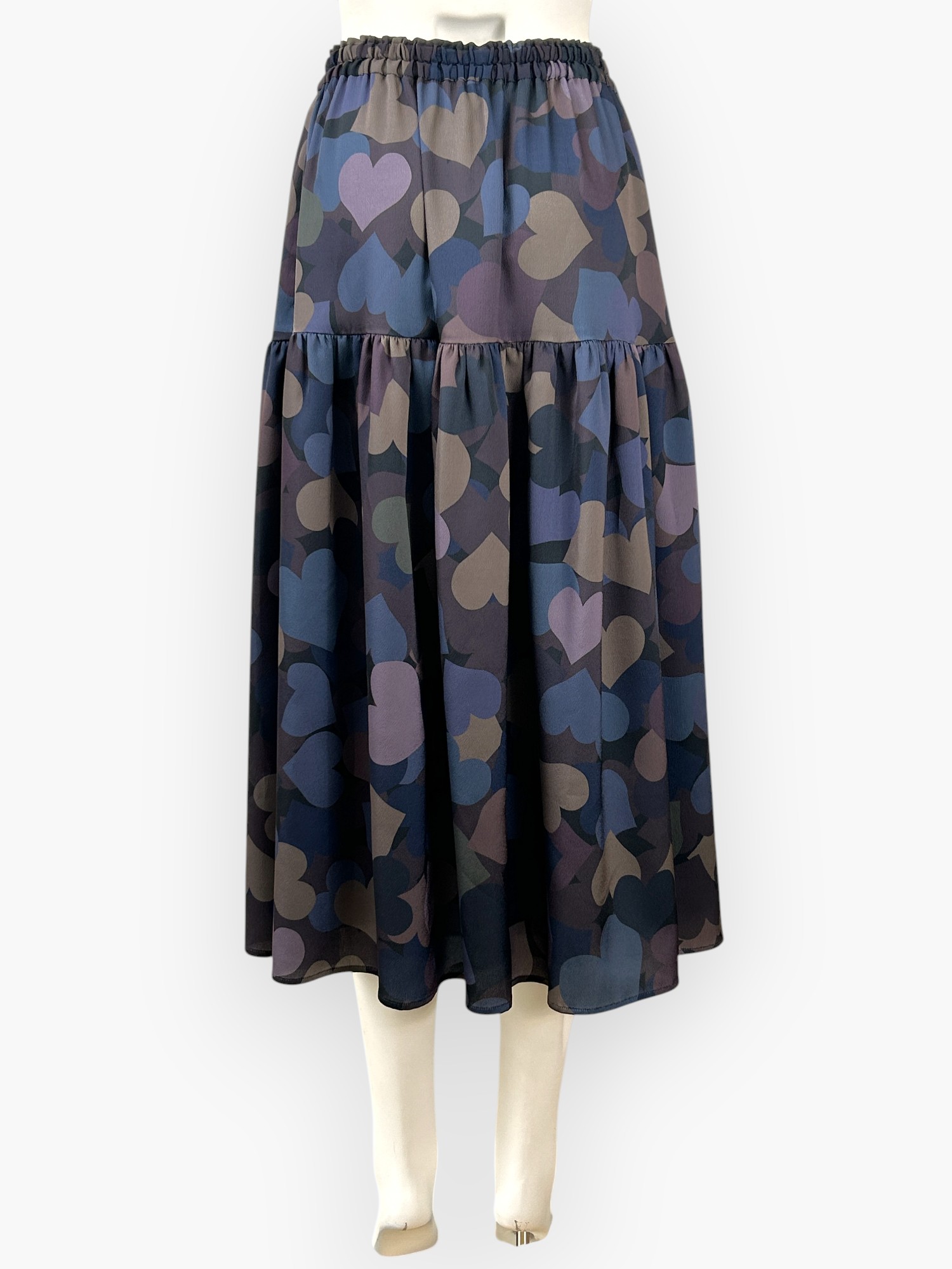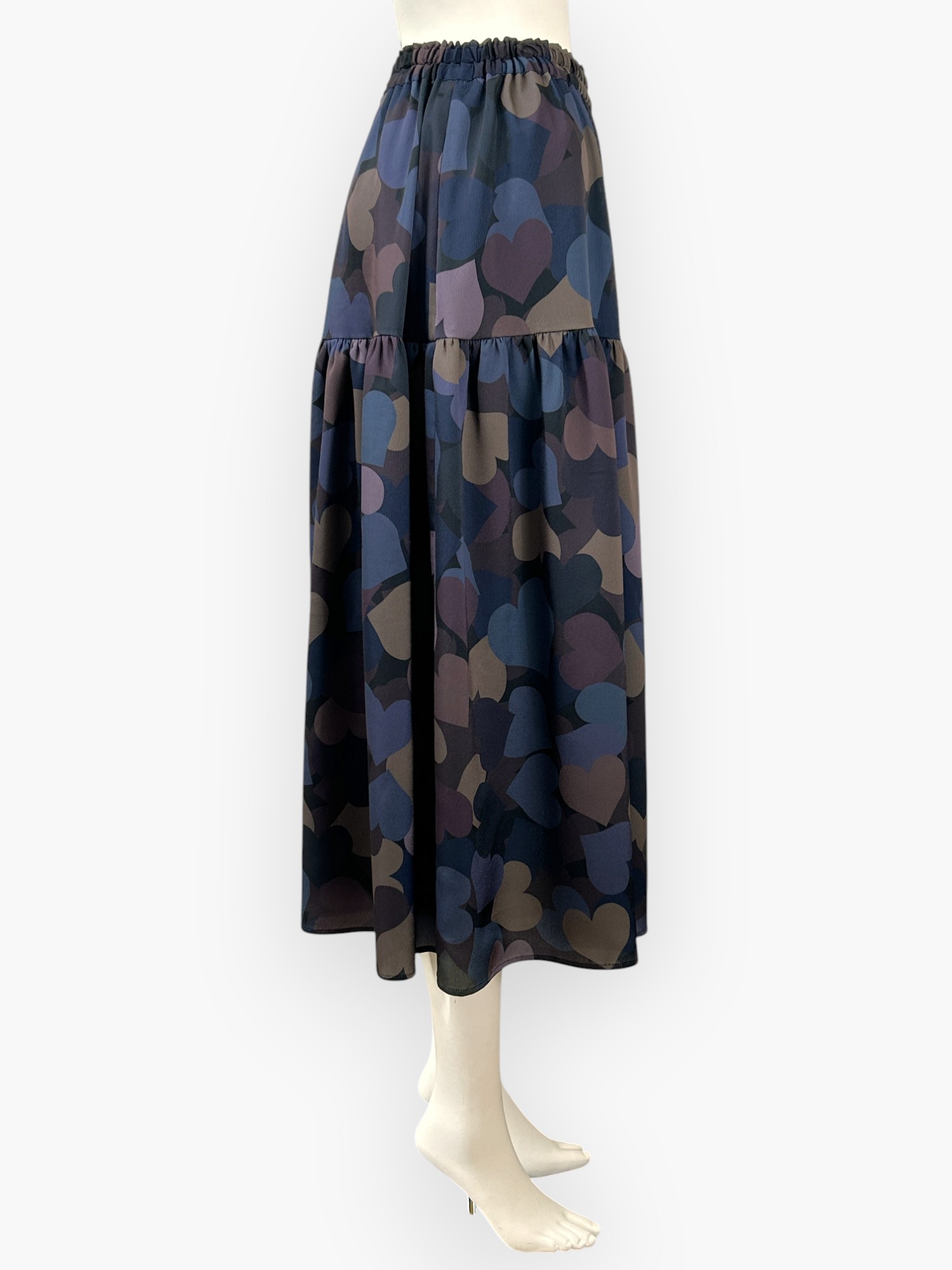 シャカシャカシェイクしたように、動きのあるランダムなハートが魅力的なスカート。