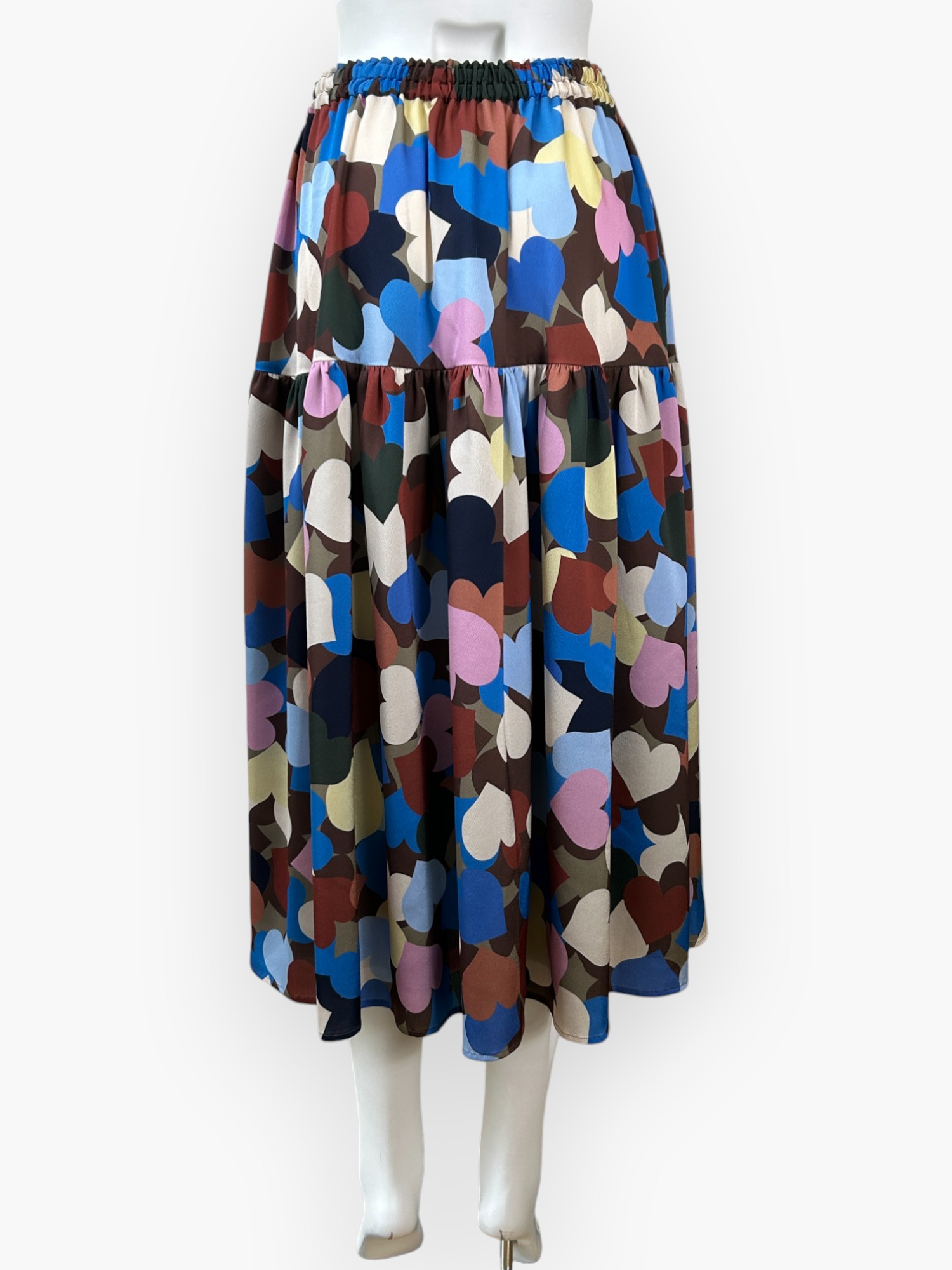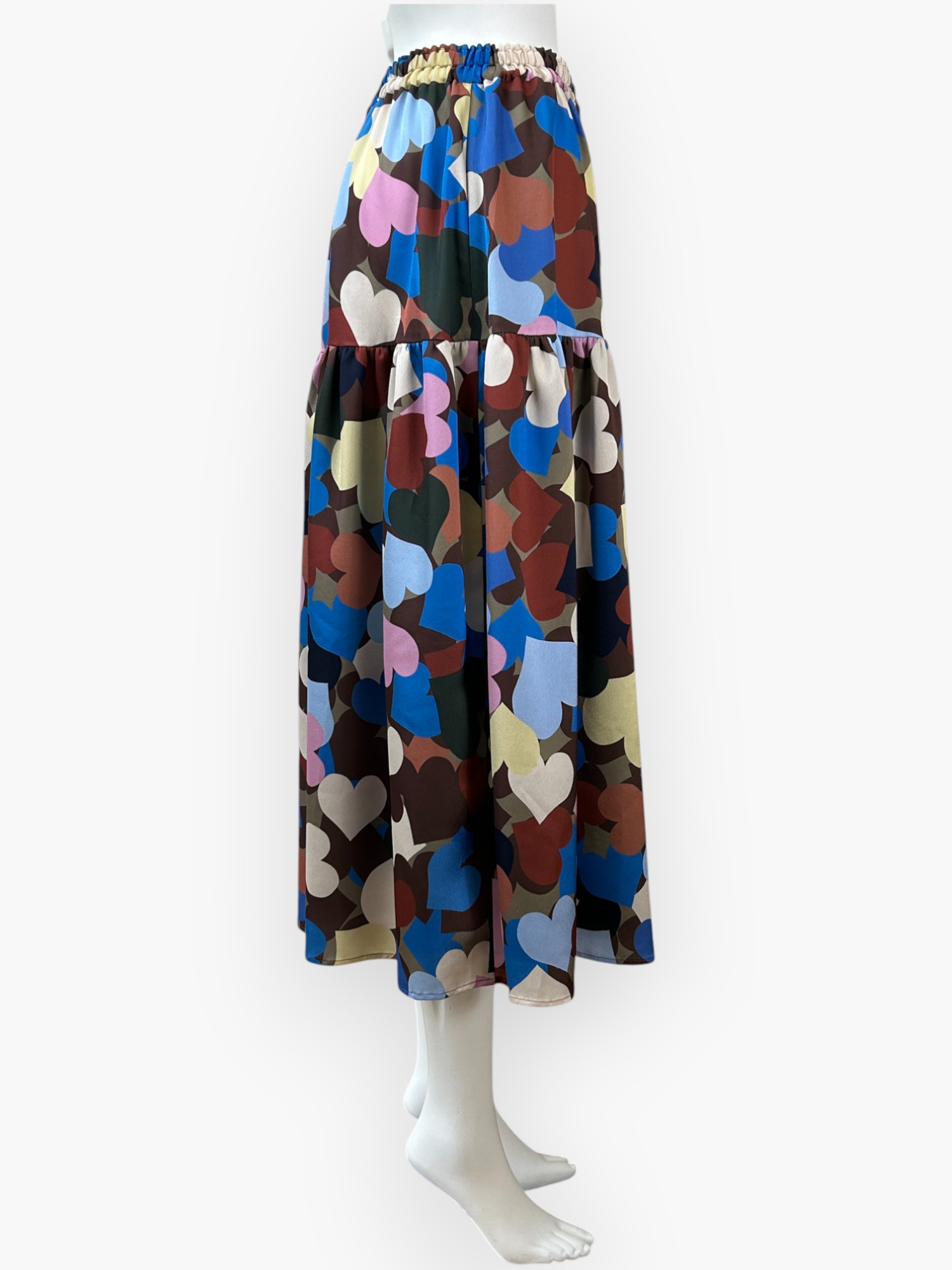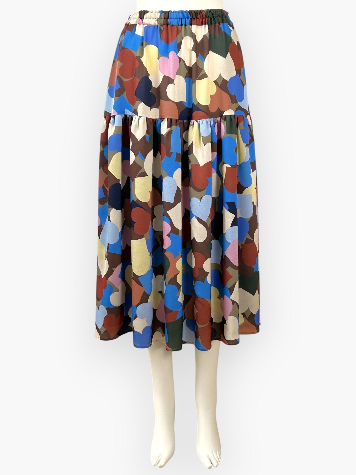 シャカシャカシェイクしたように、動きのあるランダムなハートが魅力的なスカート。
