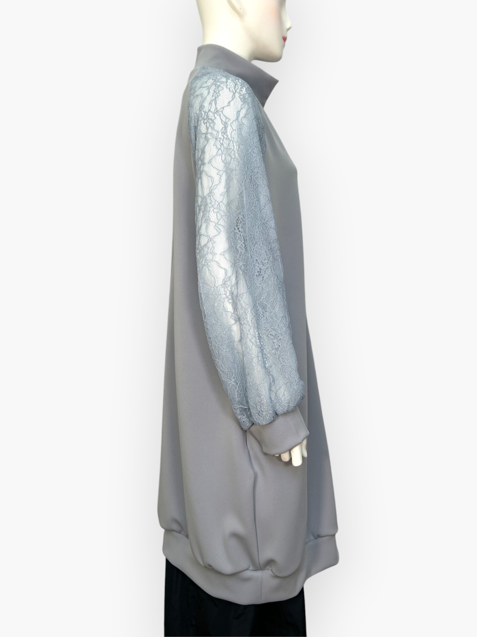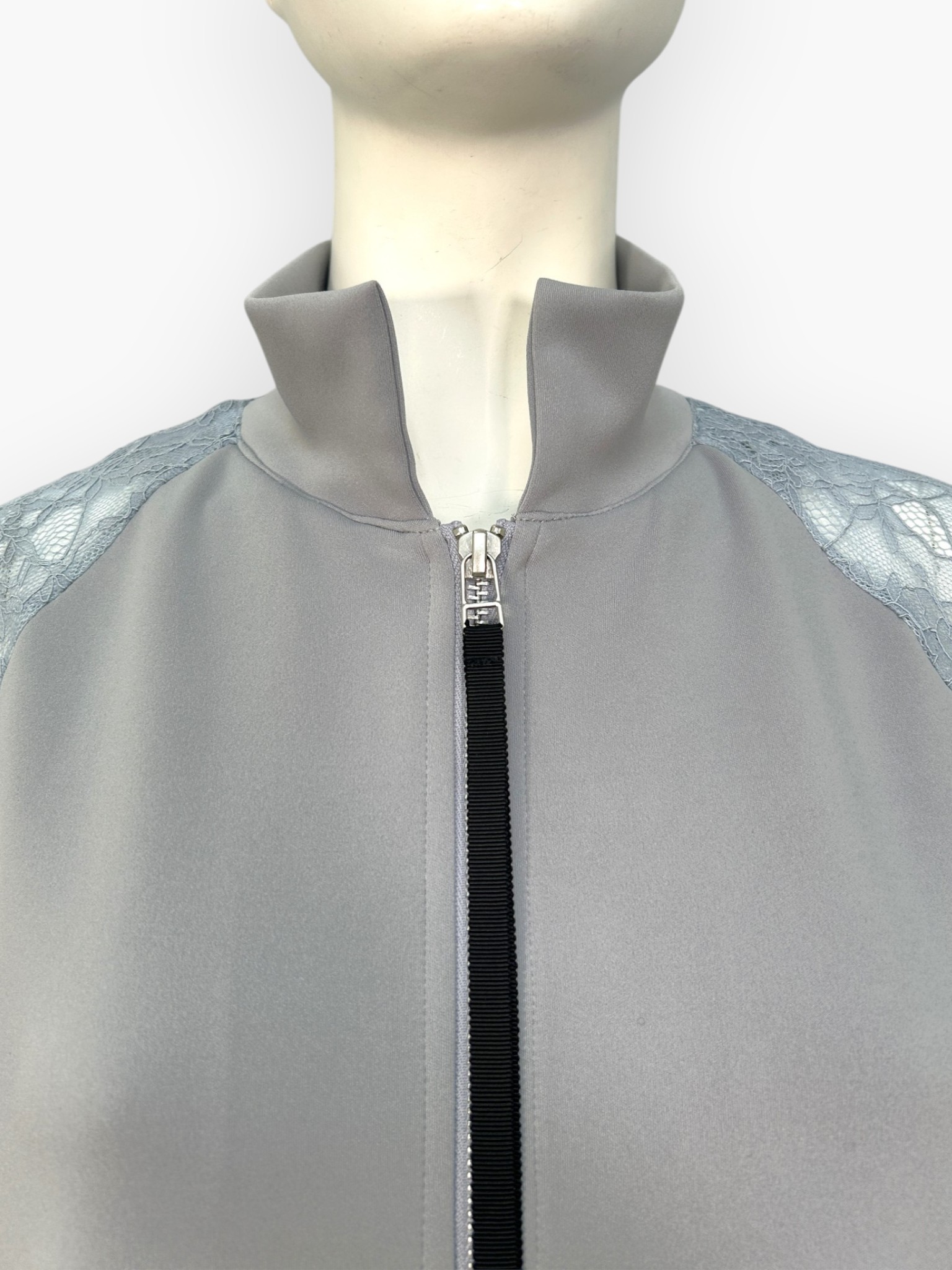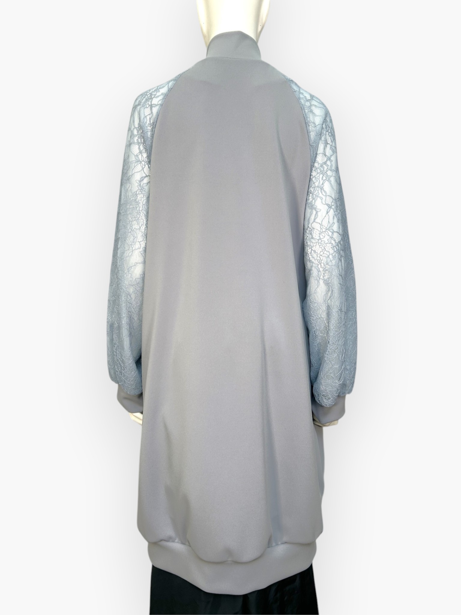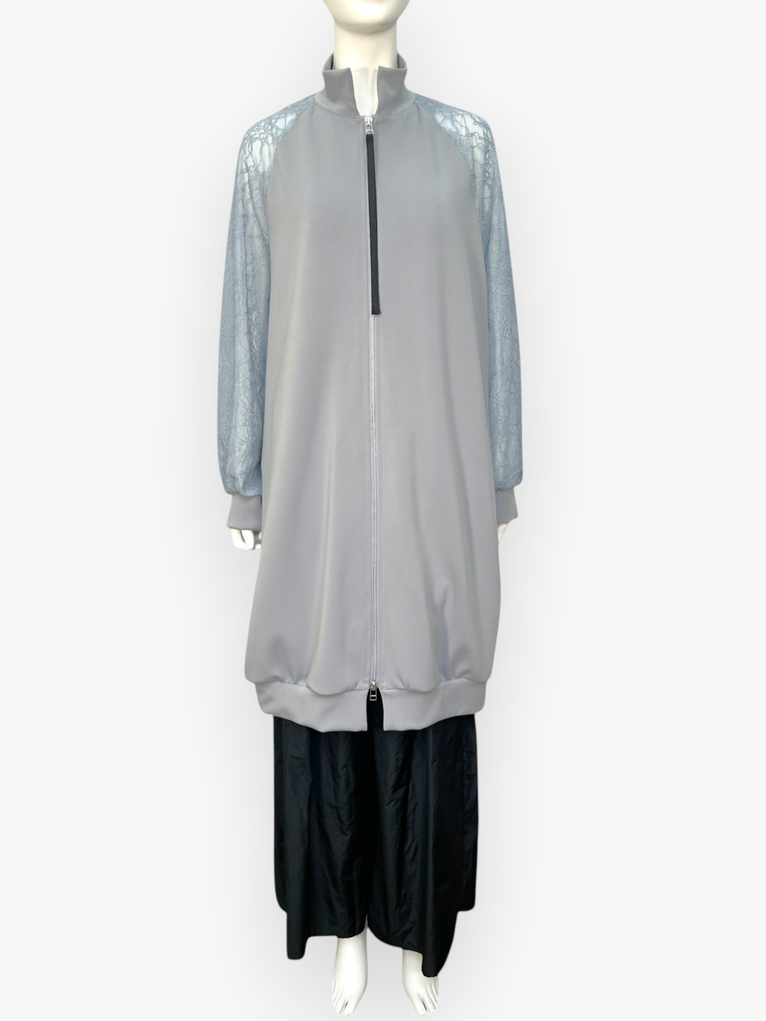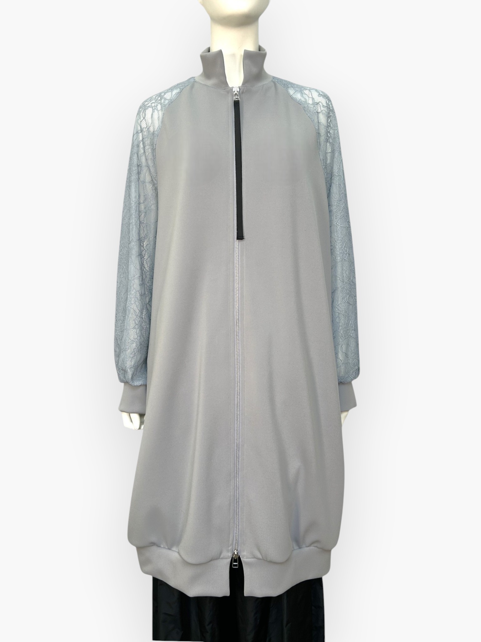 繊細なレースとジャージ素材の組み合わせが新しいロングブルゾン。