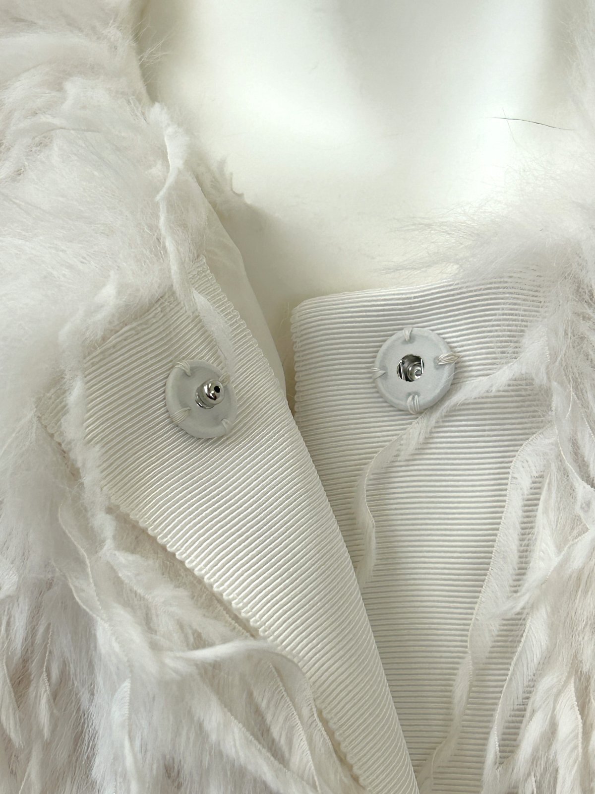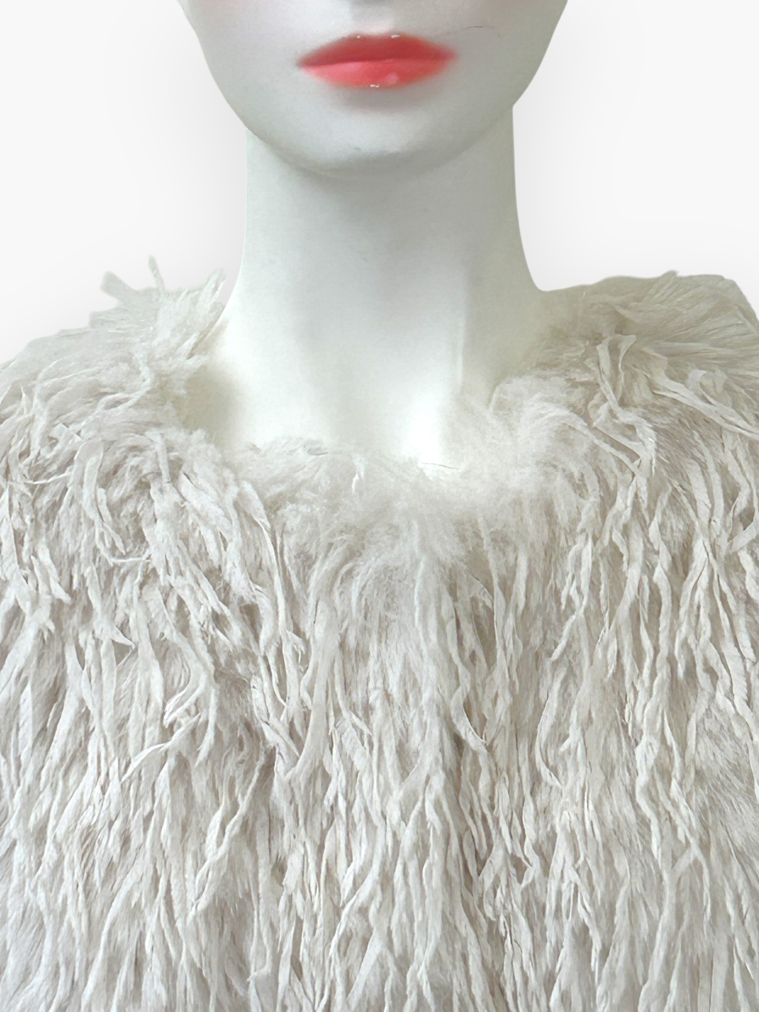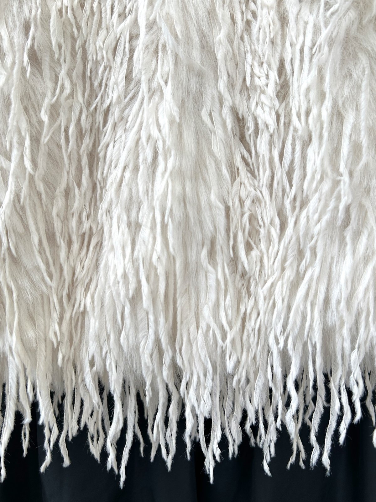 フェザーヤーンをふんだんに使用したファー素材。他にはない毛足の長さ、動きのある見え方。