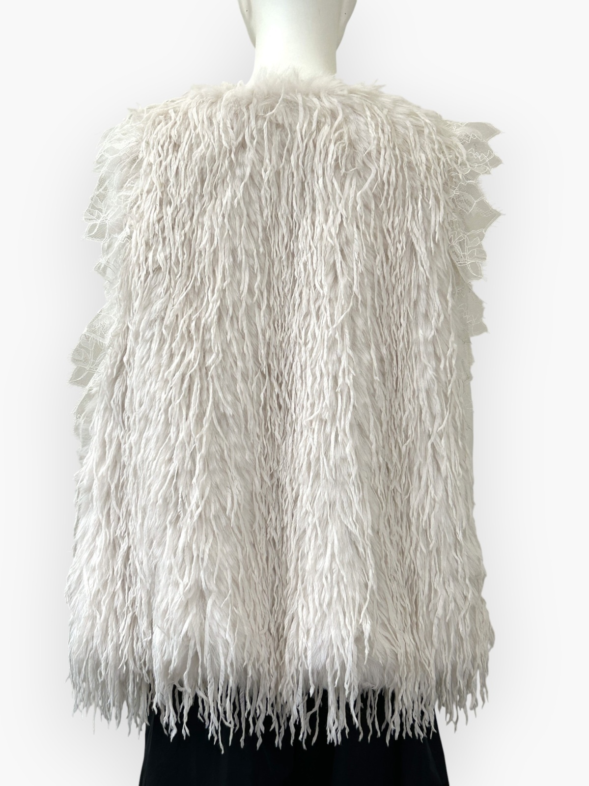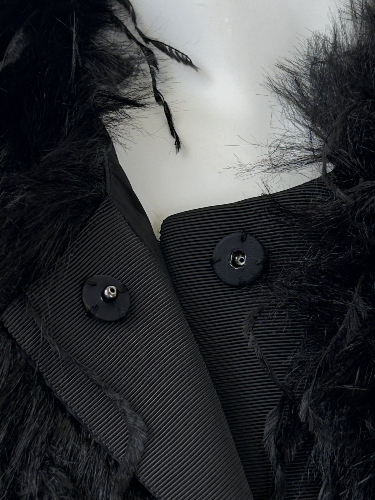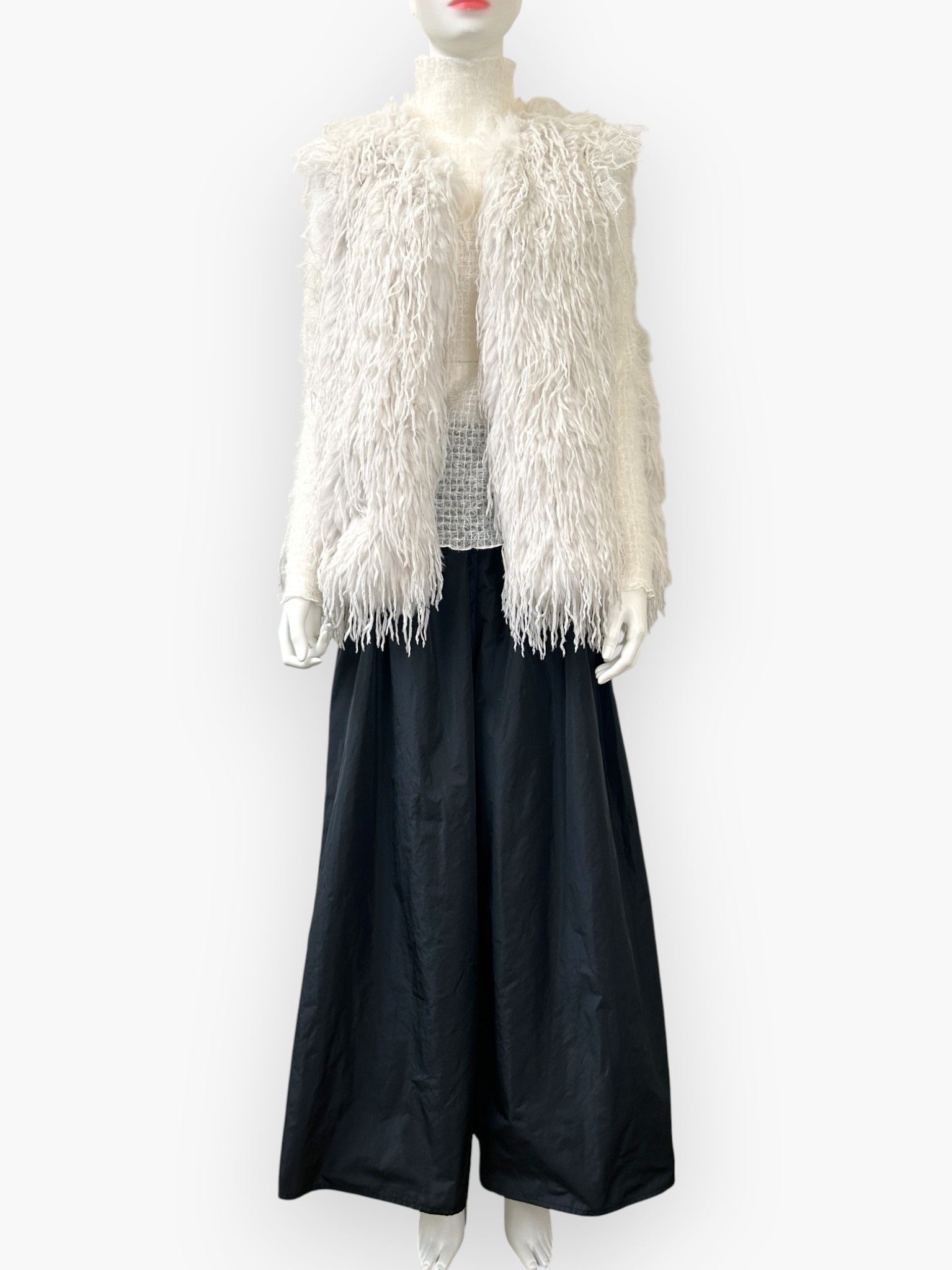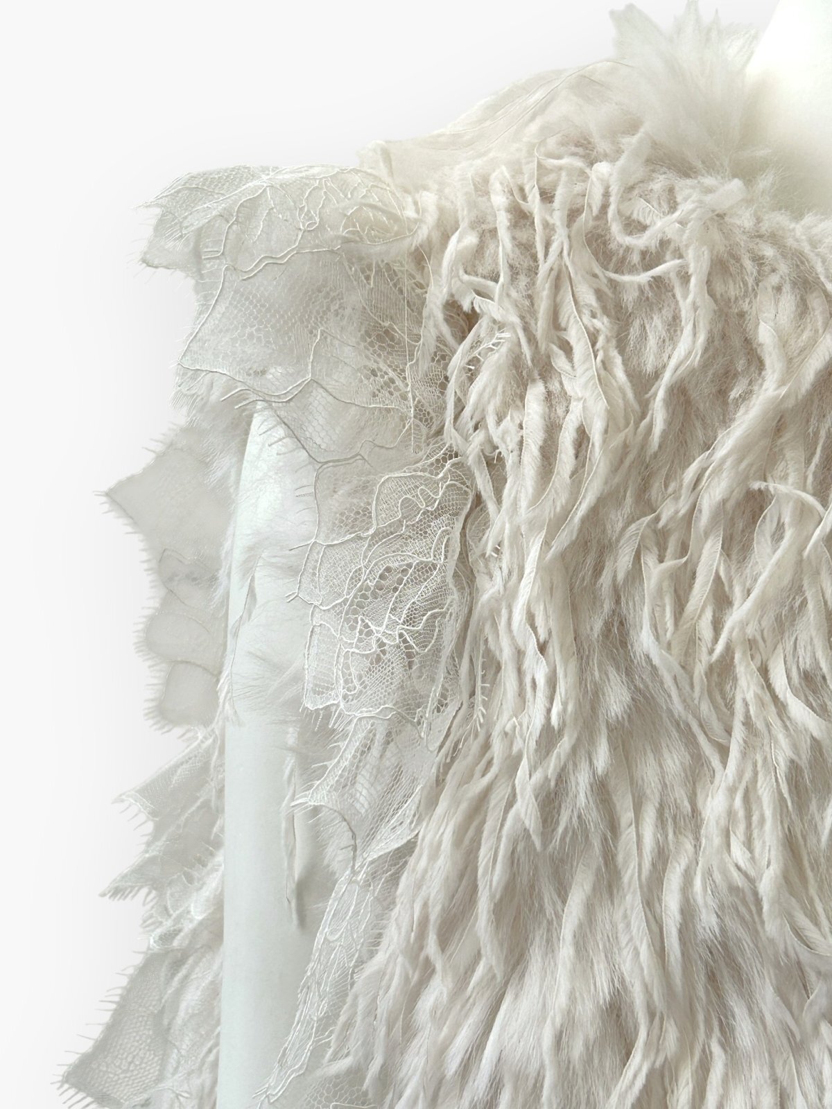 フェザーヤーンをふんだんに使用したファー素材。他にはない毛足の長さ、動きのある見え方。