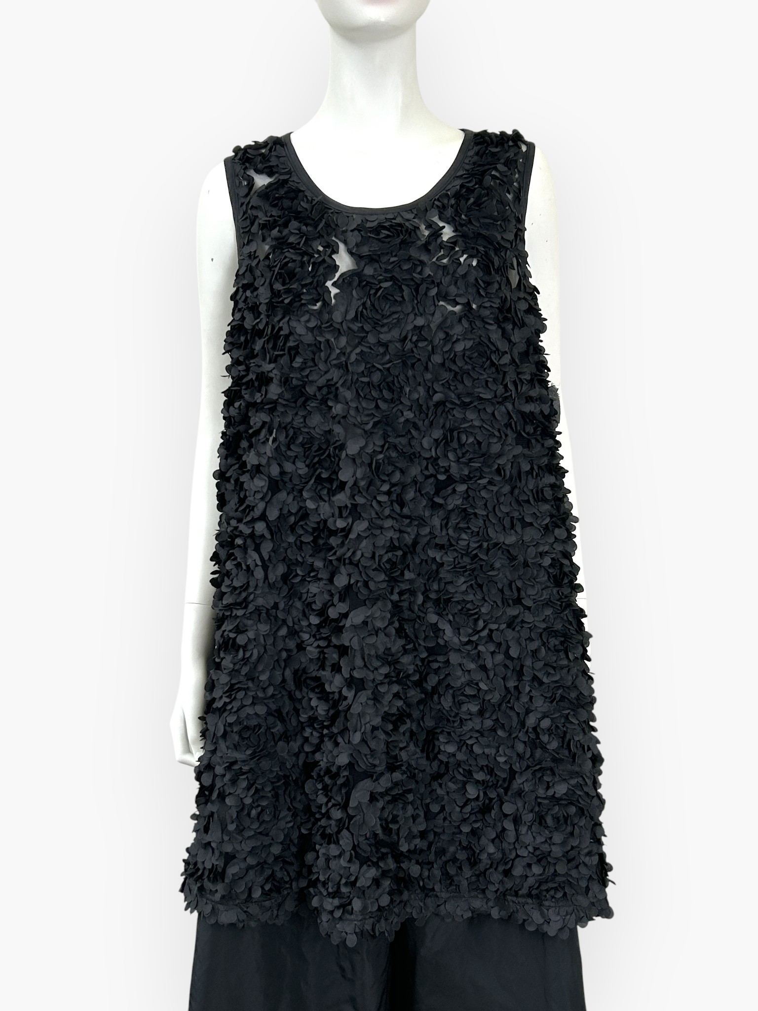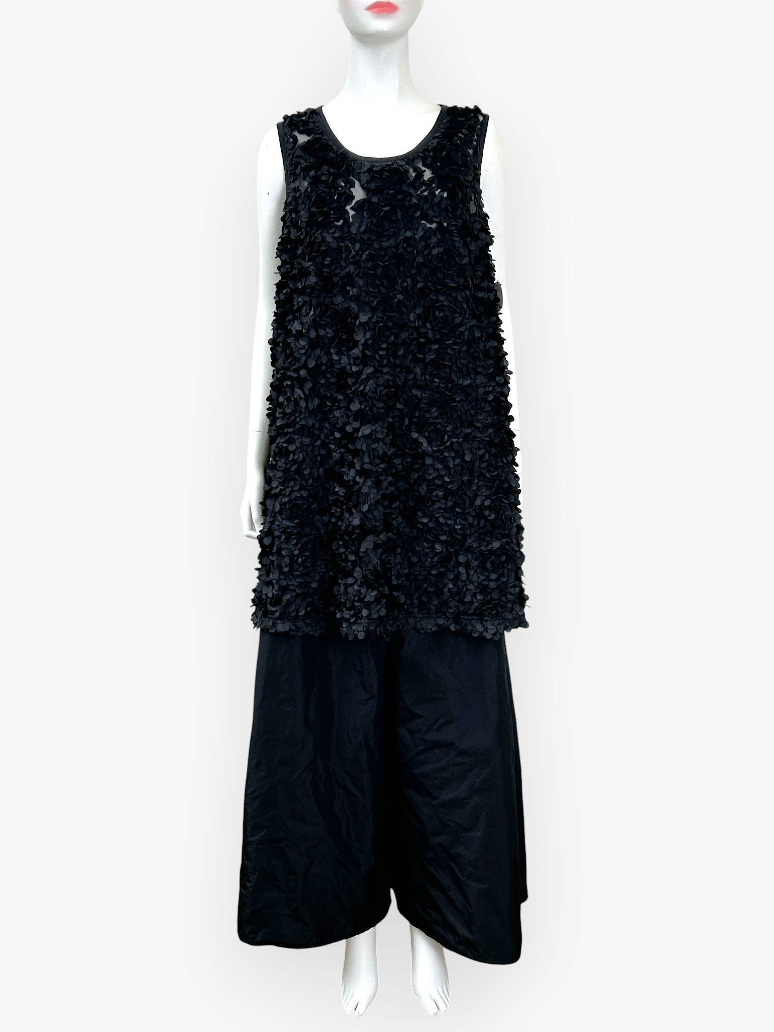 花びらを散りばめたような立体感が新鮮なプルオーバータイプのジレ風チュニック。