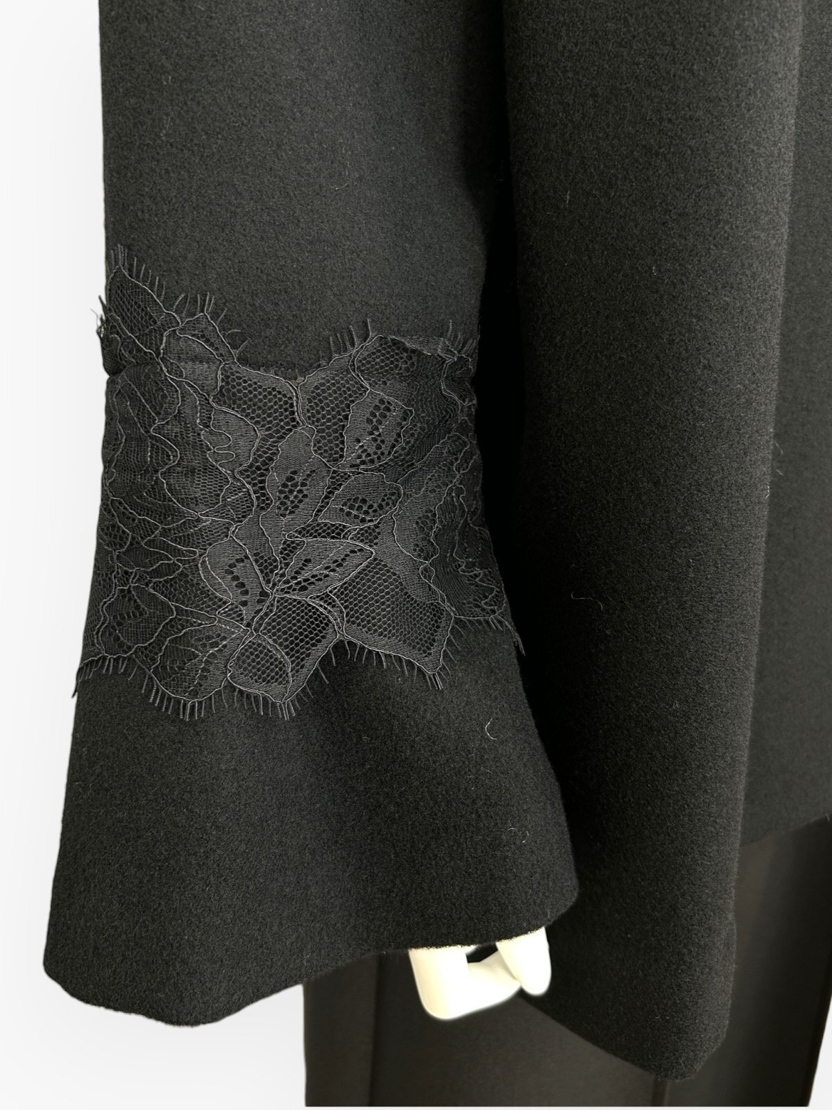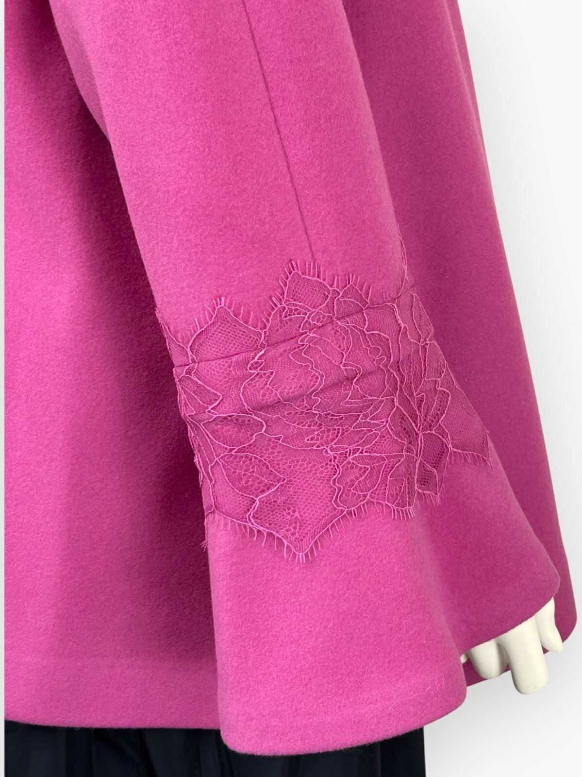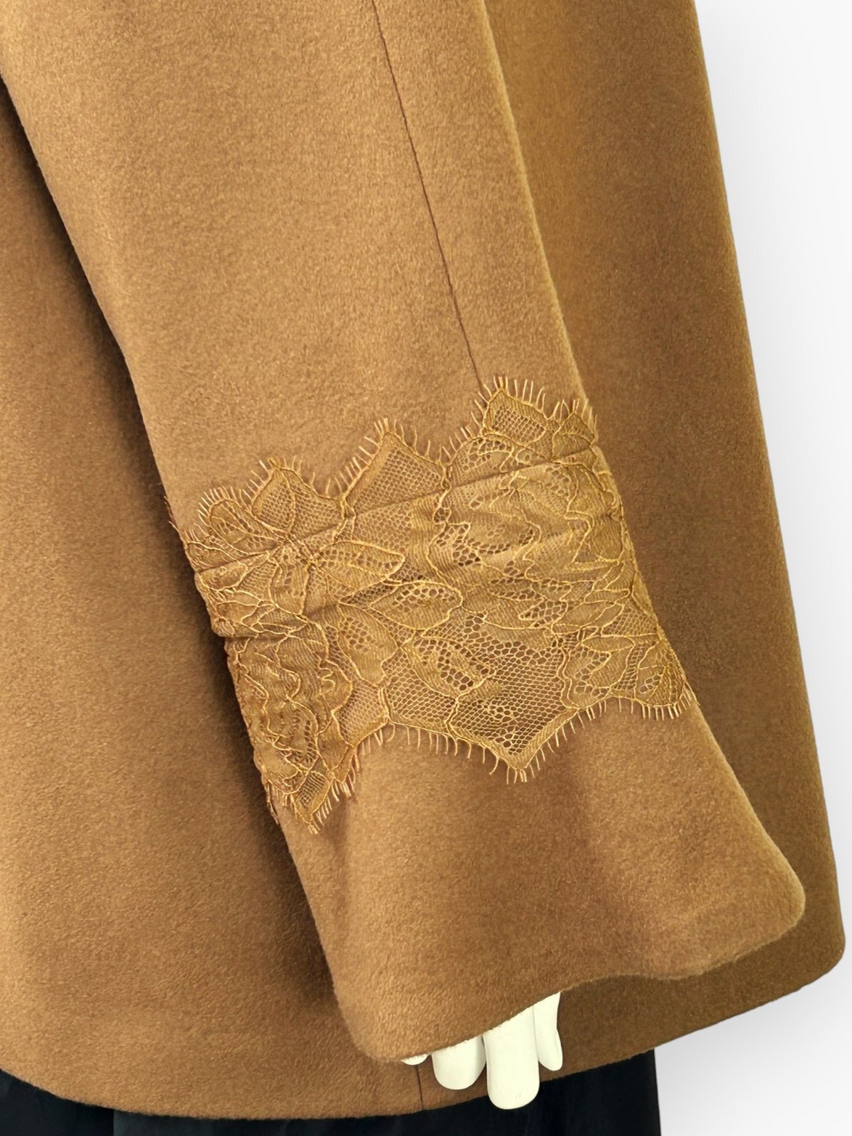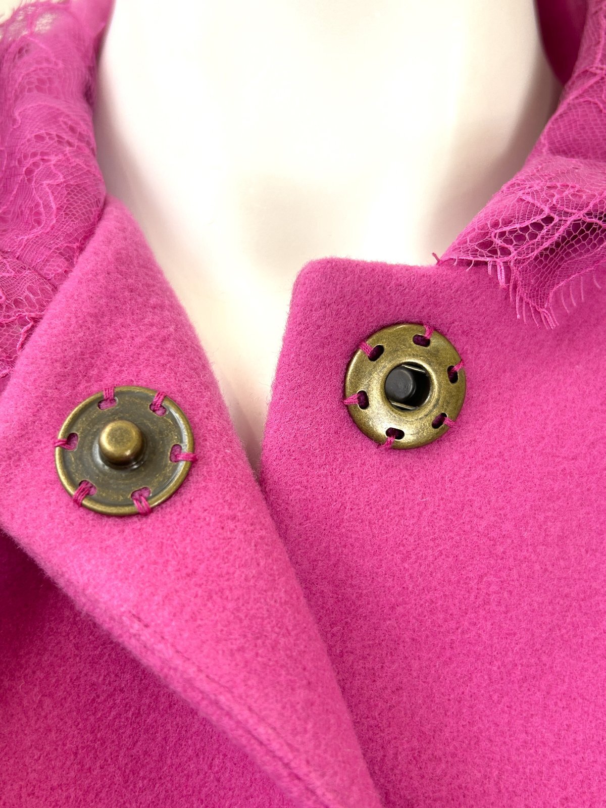 ボタンはあえて見せずにすっきりと仕上げることでレースを引き立たせました。