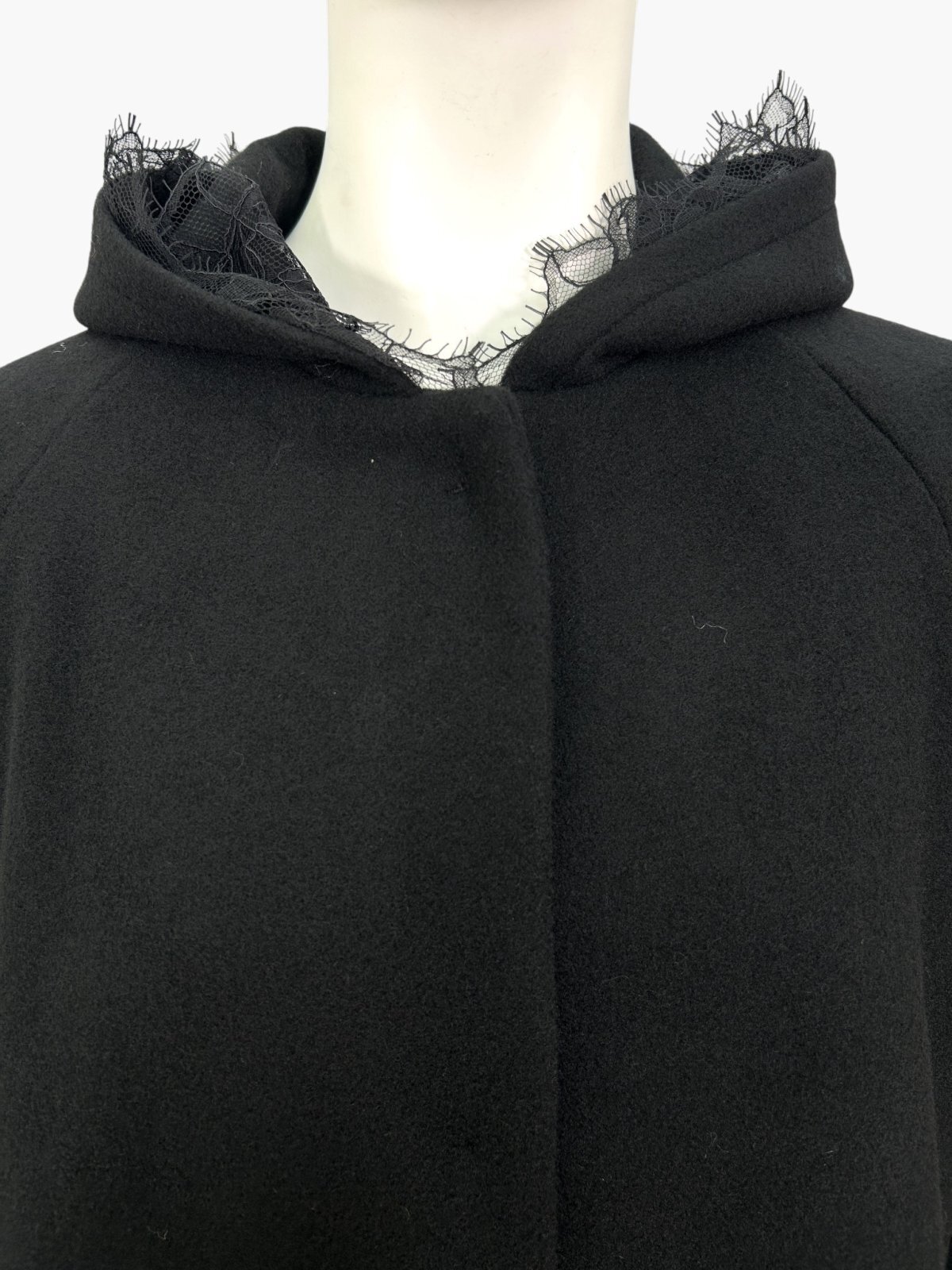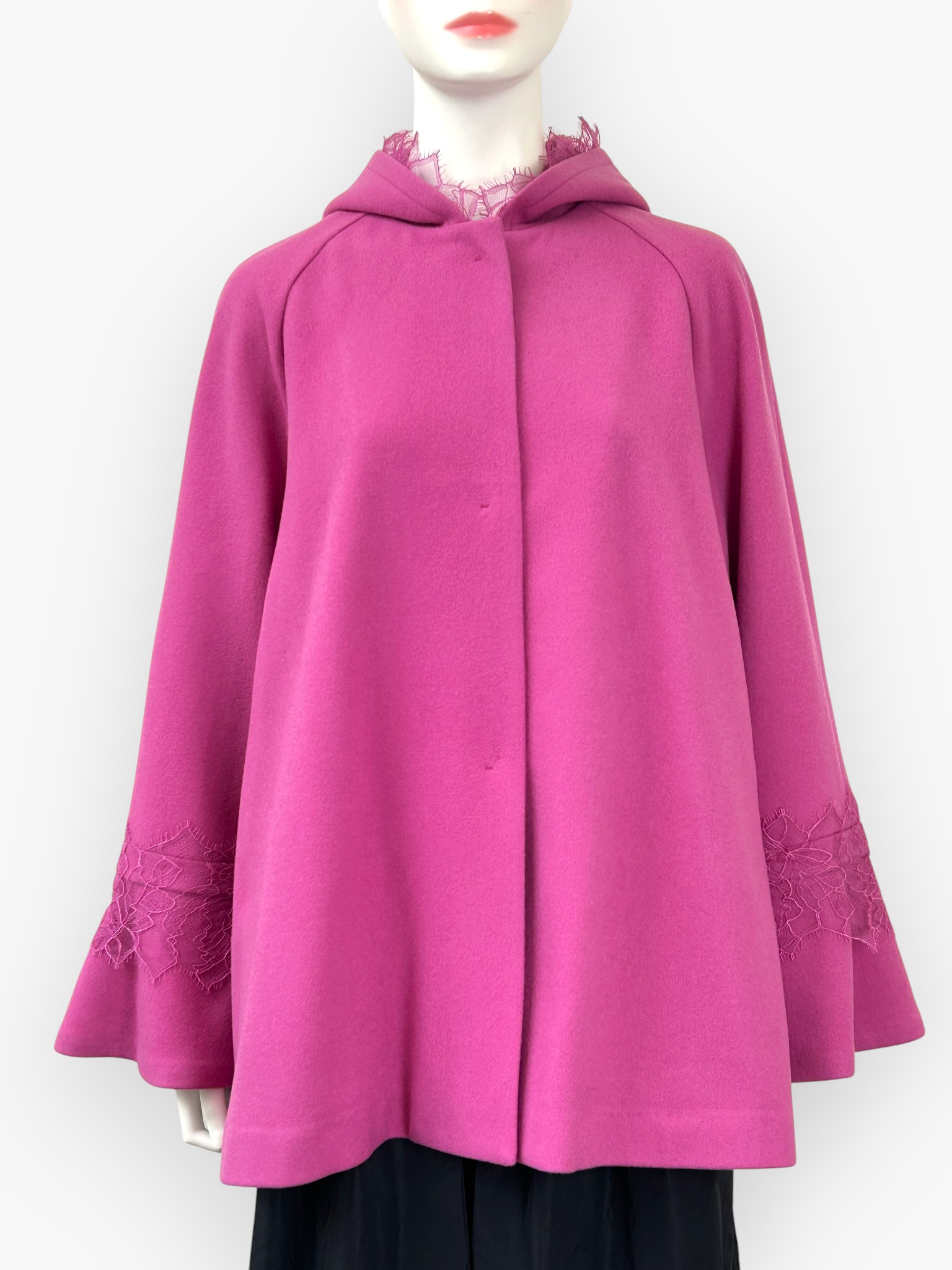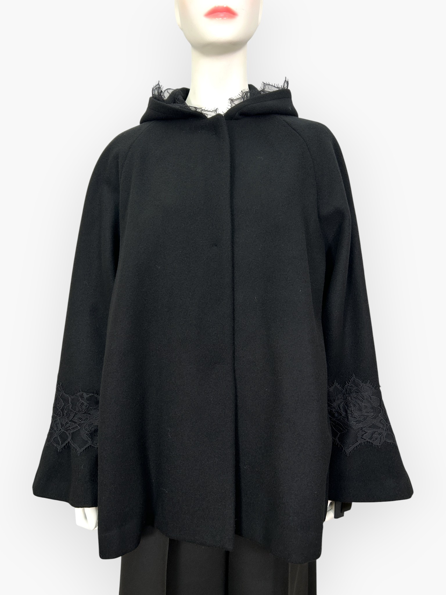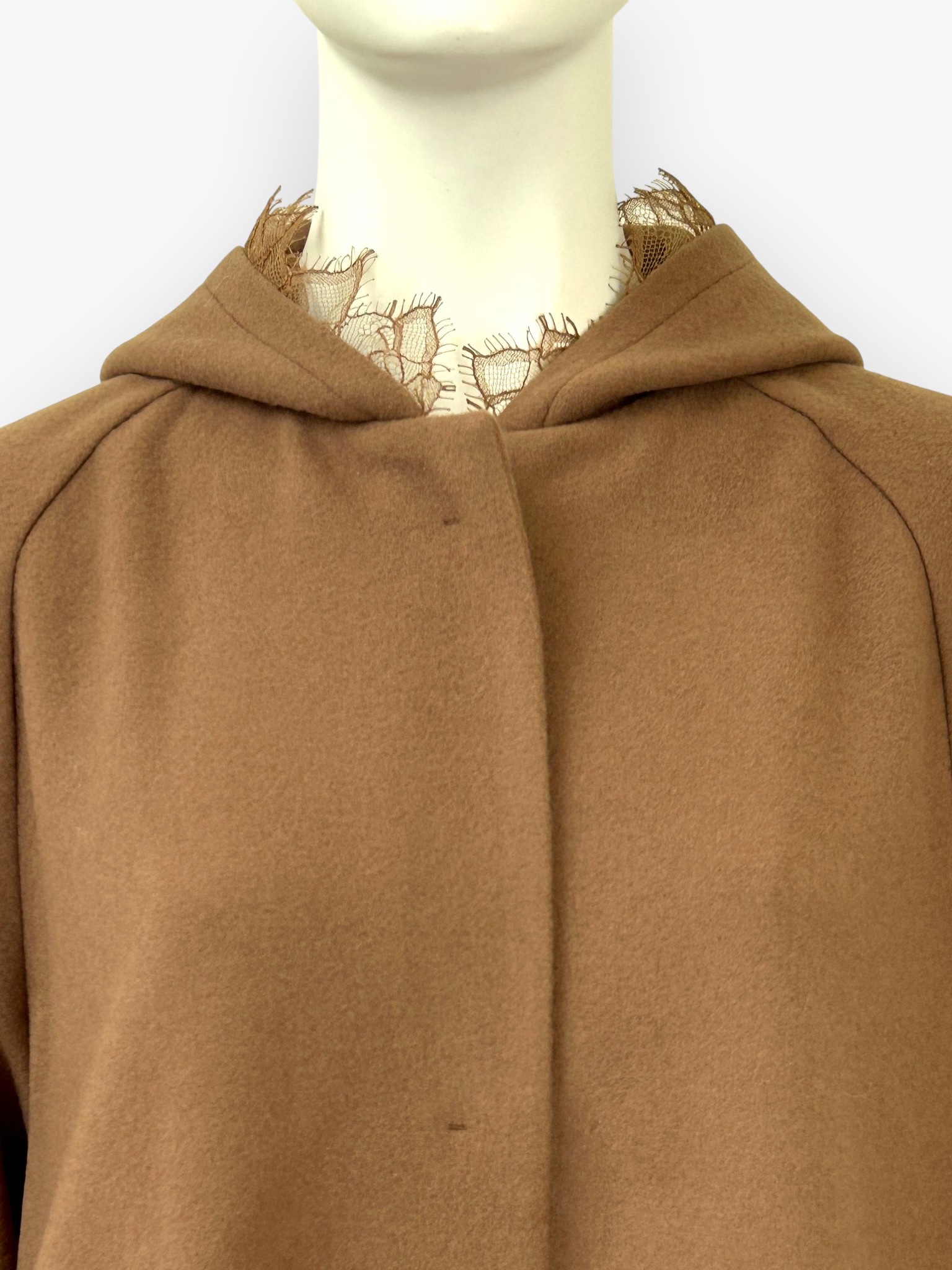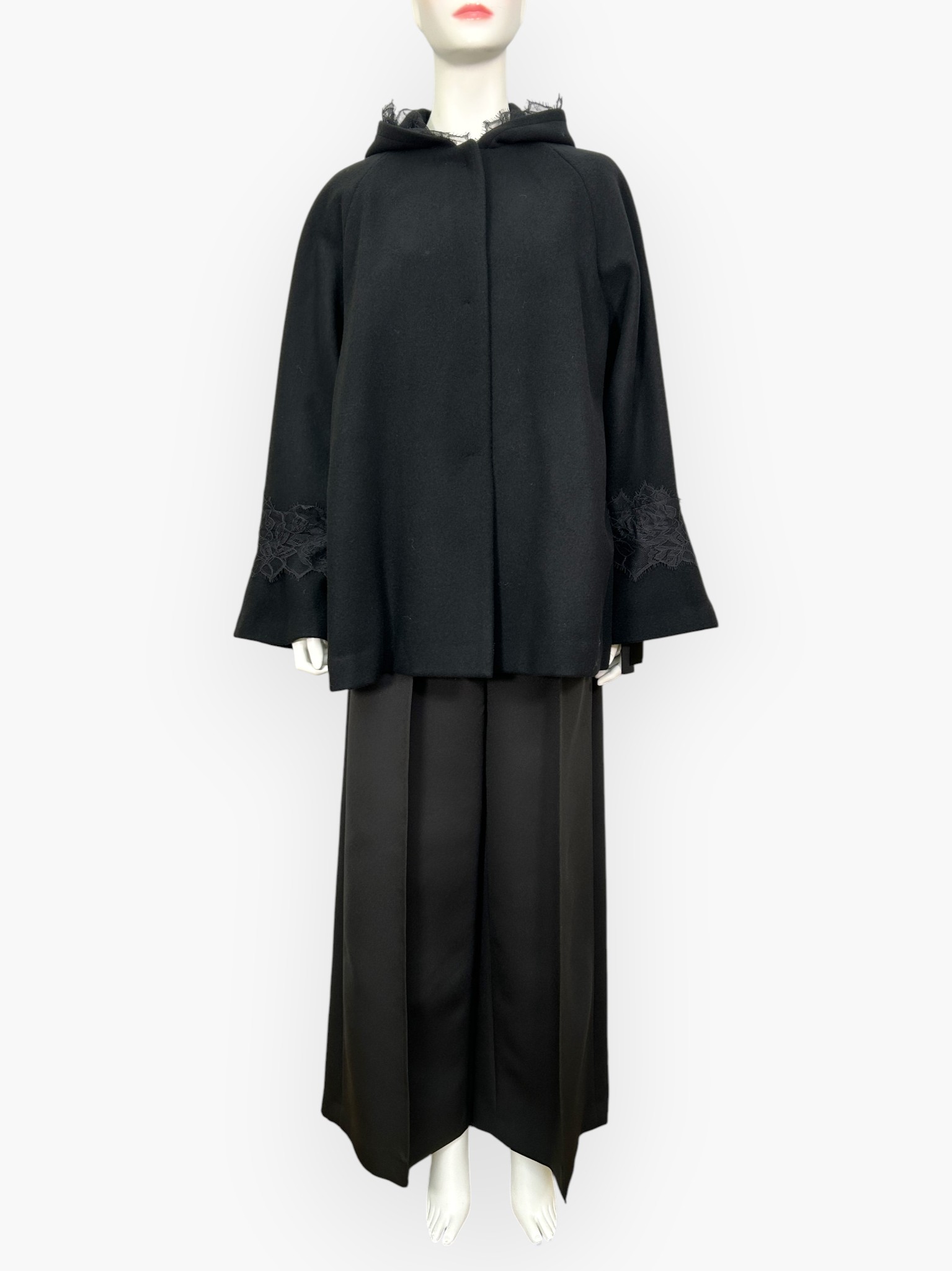 ラムウール100%の柔らかなメルトン生地をふんだんに使用したフード付きコート。