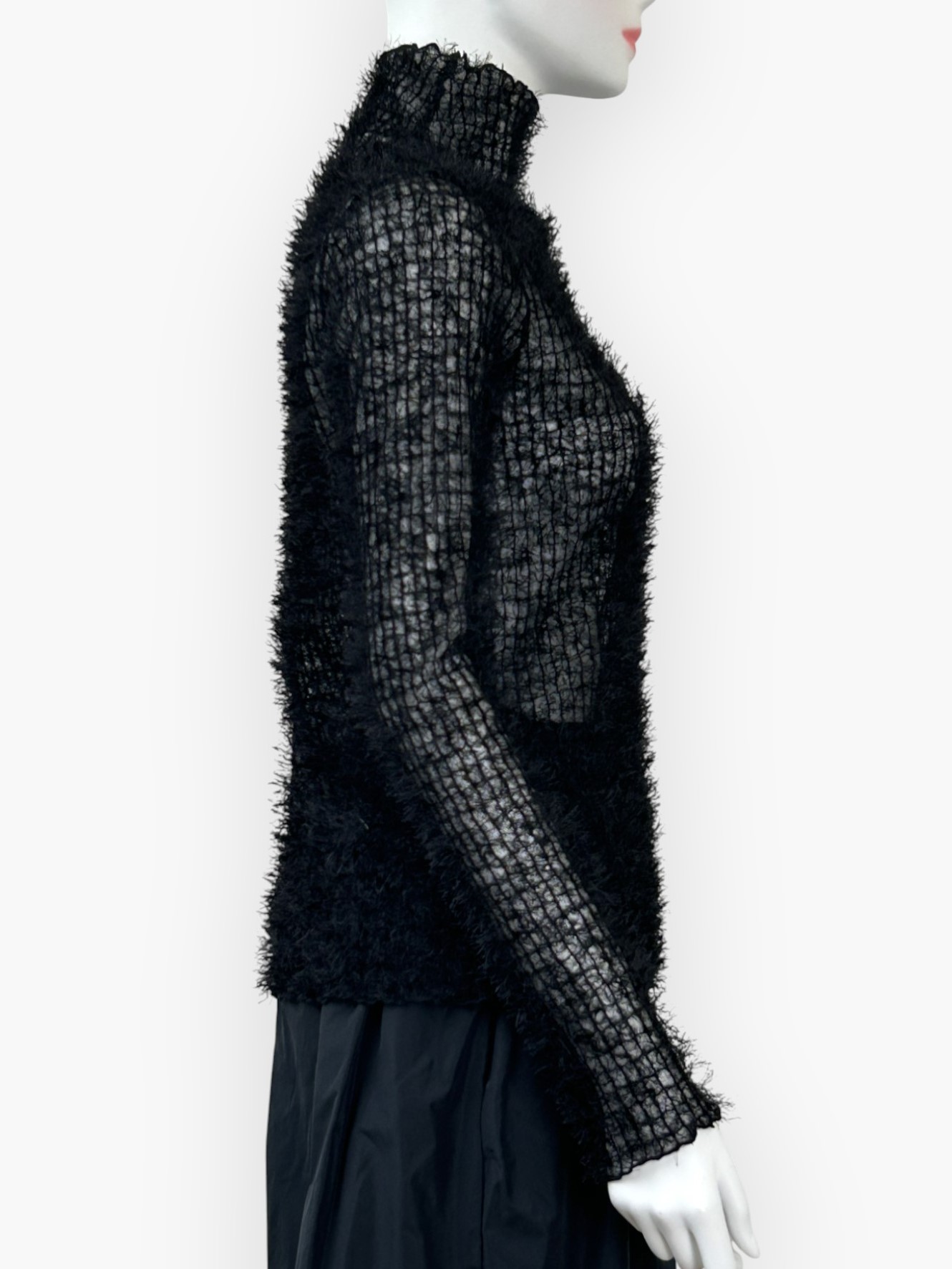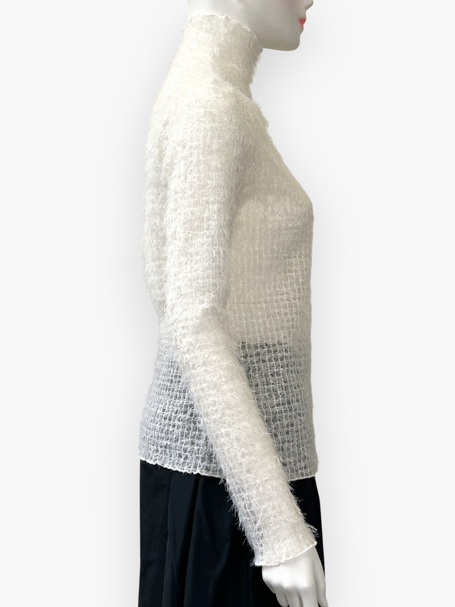 シンプルながら一枚で上品に着映えるハイネックカットソー。