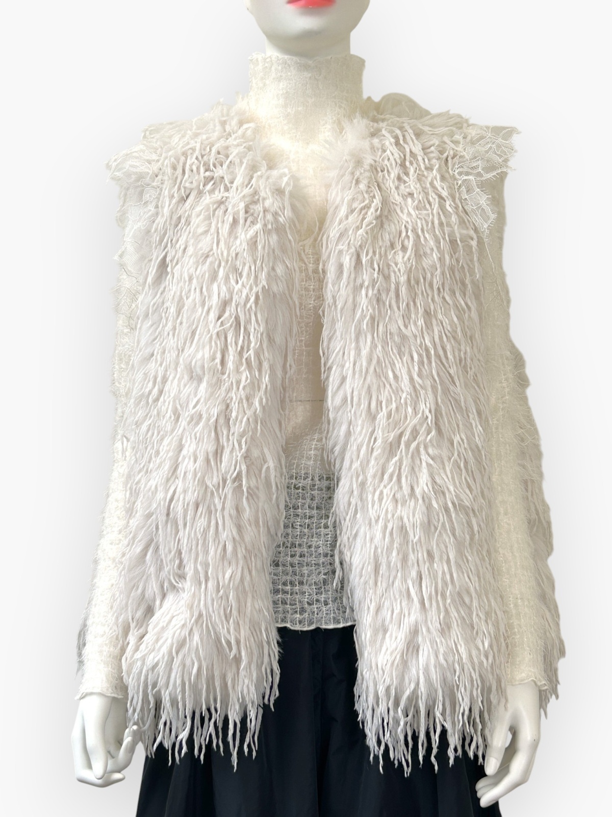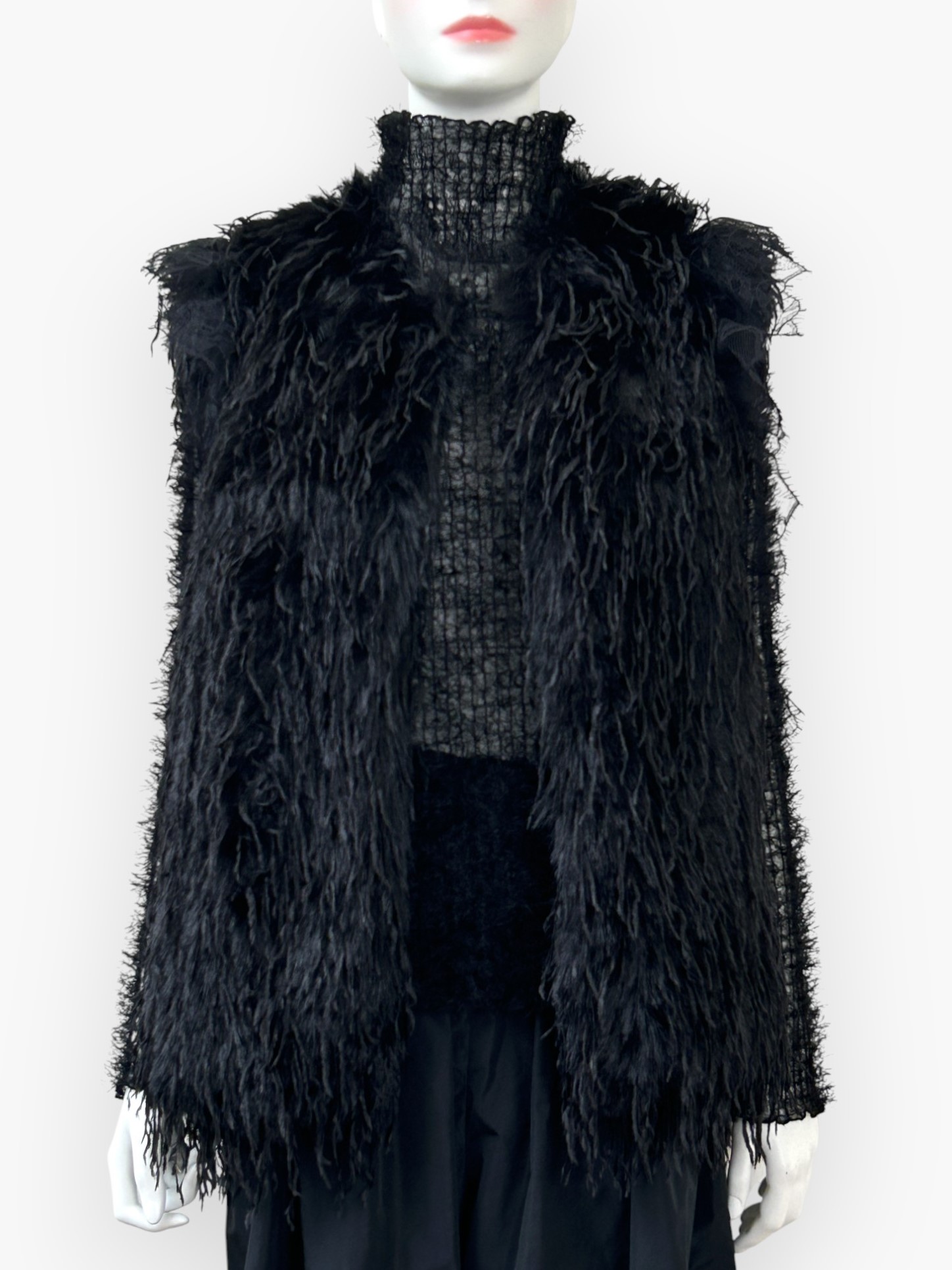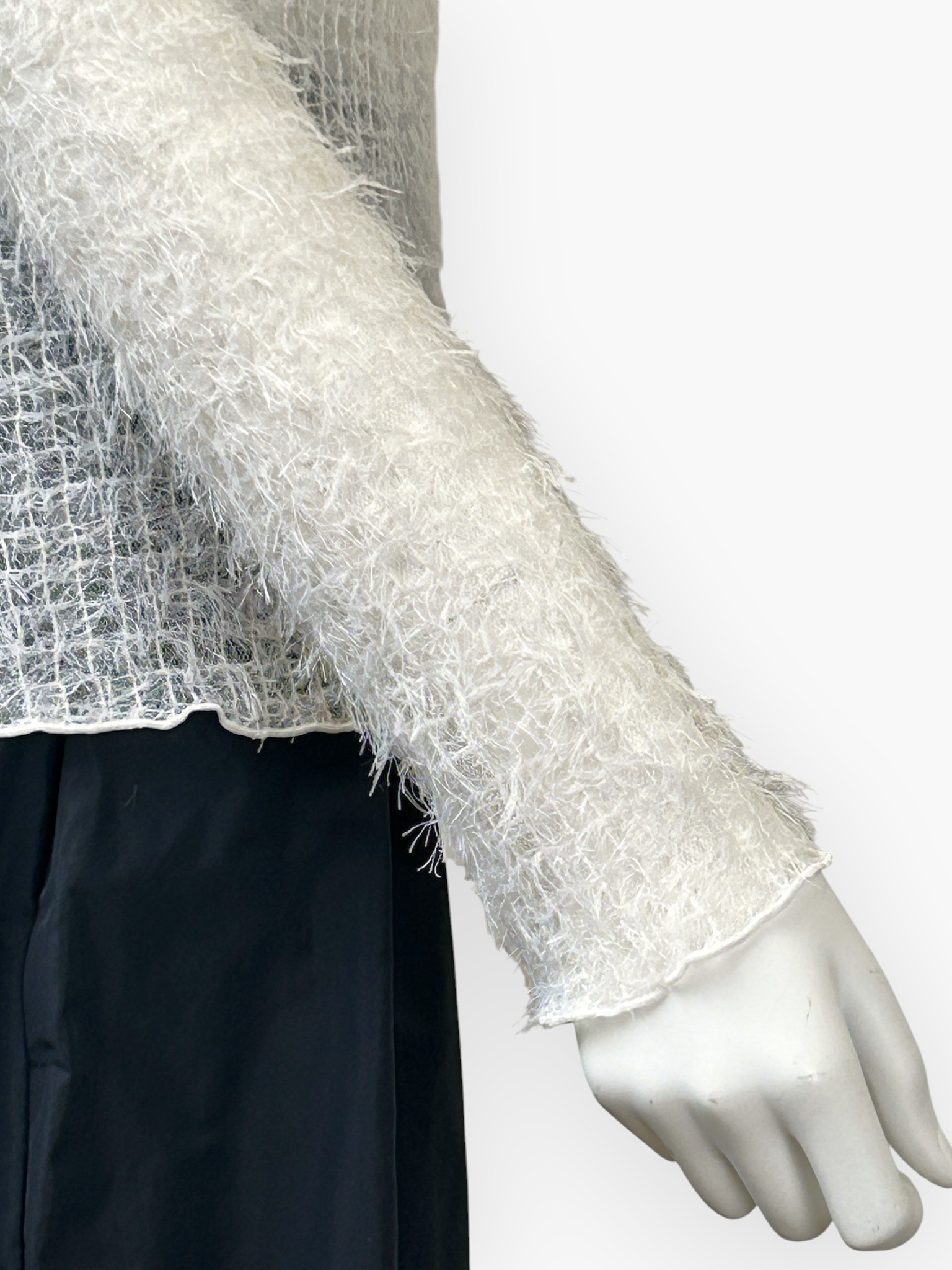 柔らかいチュールに、フェザーを刺繍した装飾性の高い素材。