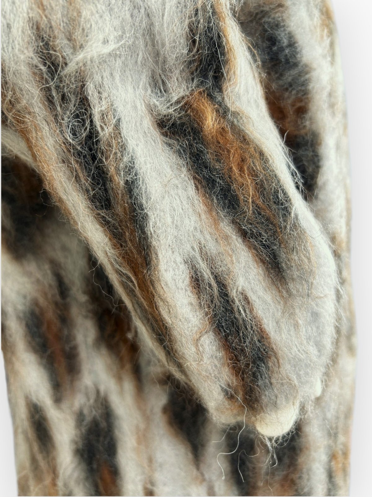 オリジナルの柄をシャギーにすることで、派手すぎない大人のレオパードに仕上げました。
