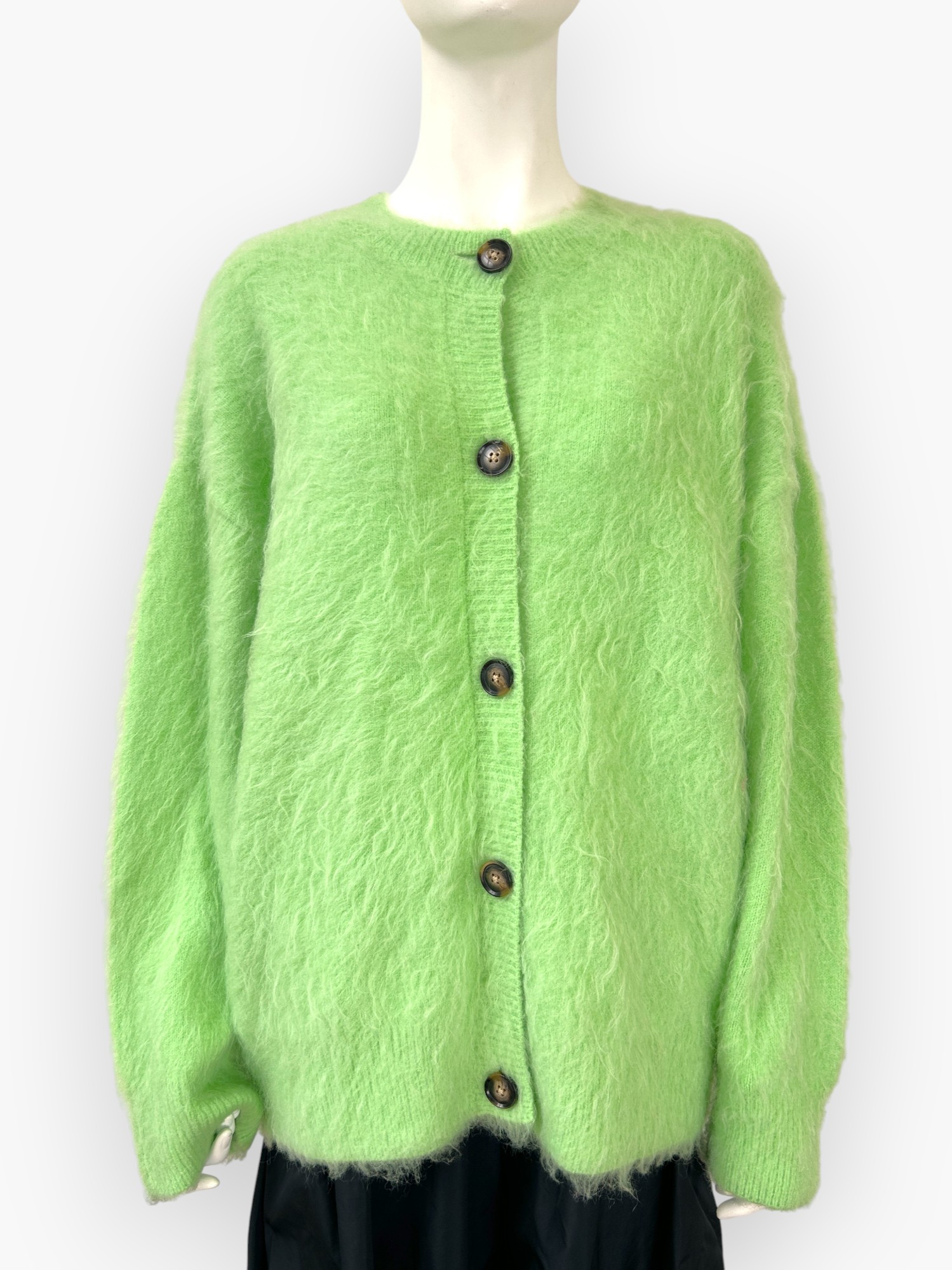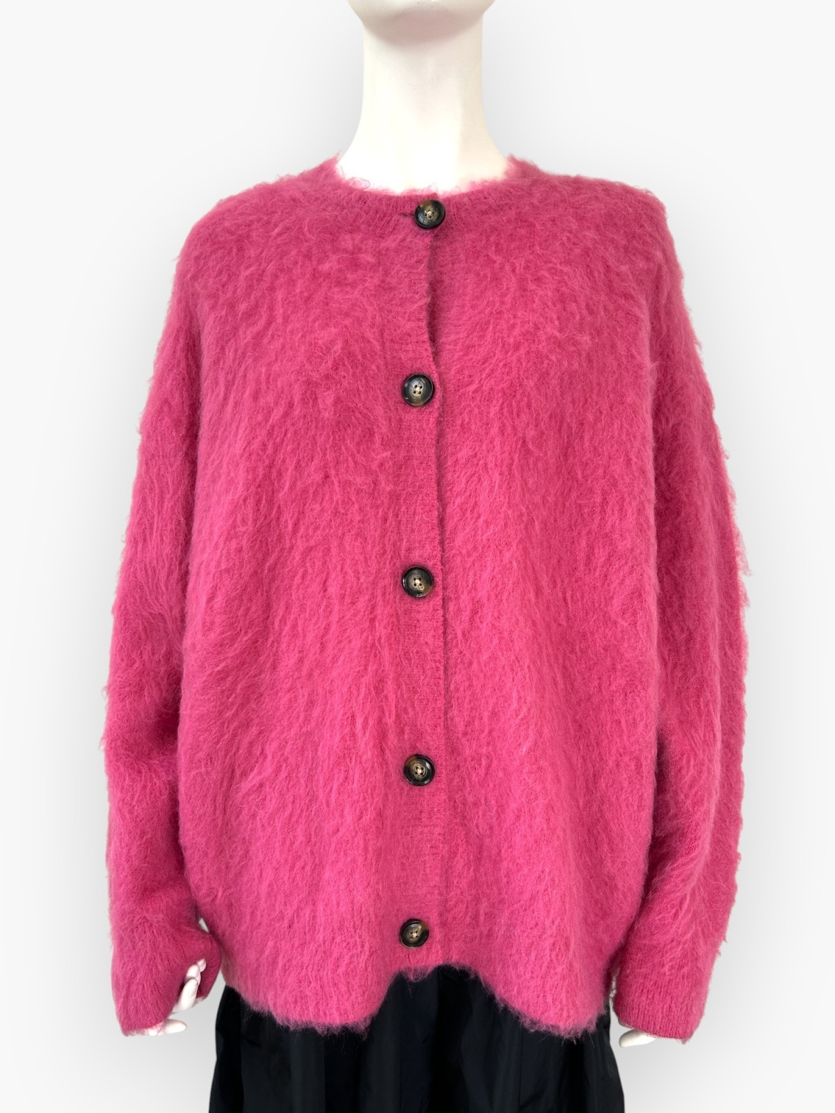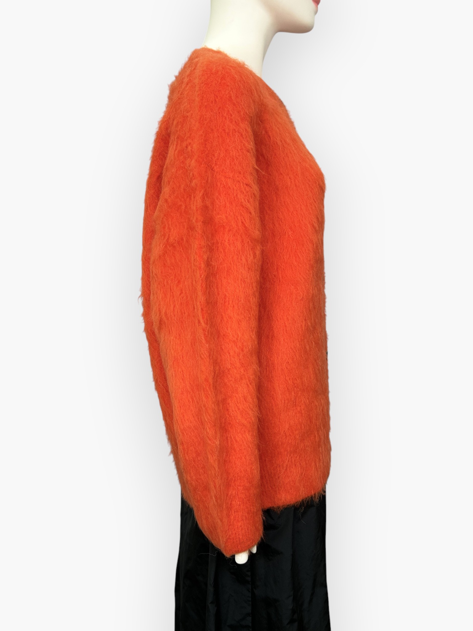 軽めのアウター感覚でさっと羽織れる、ビビットでカラフルなシャギーニット。