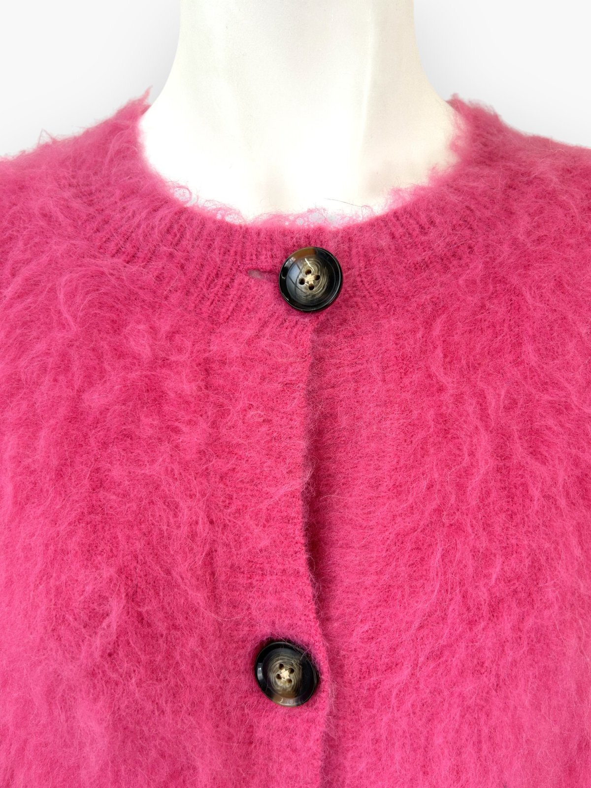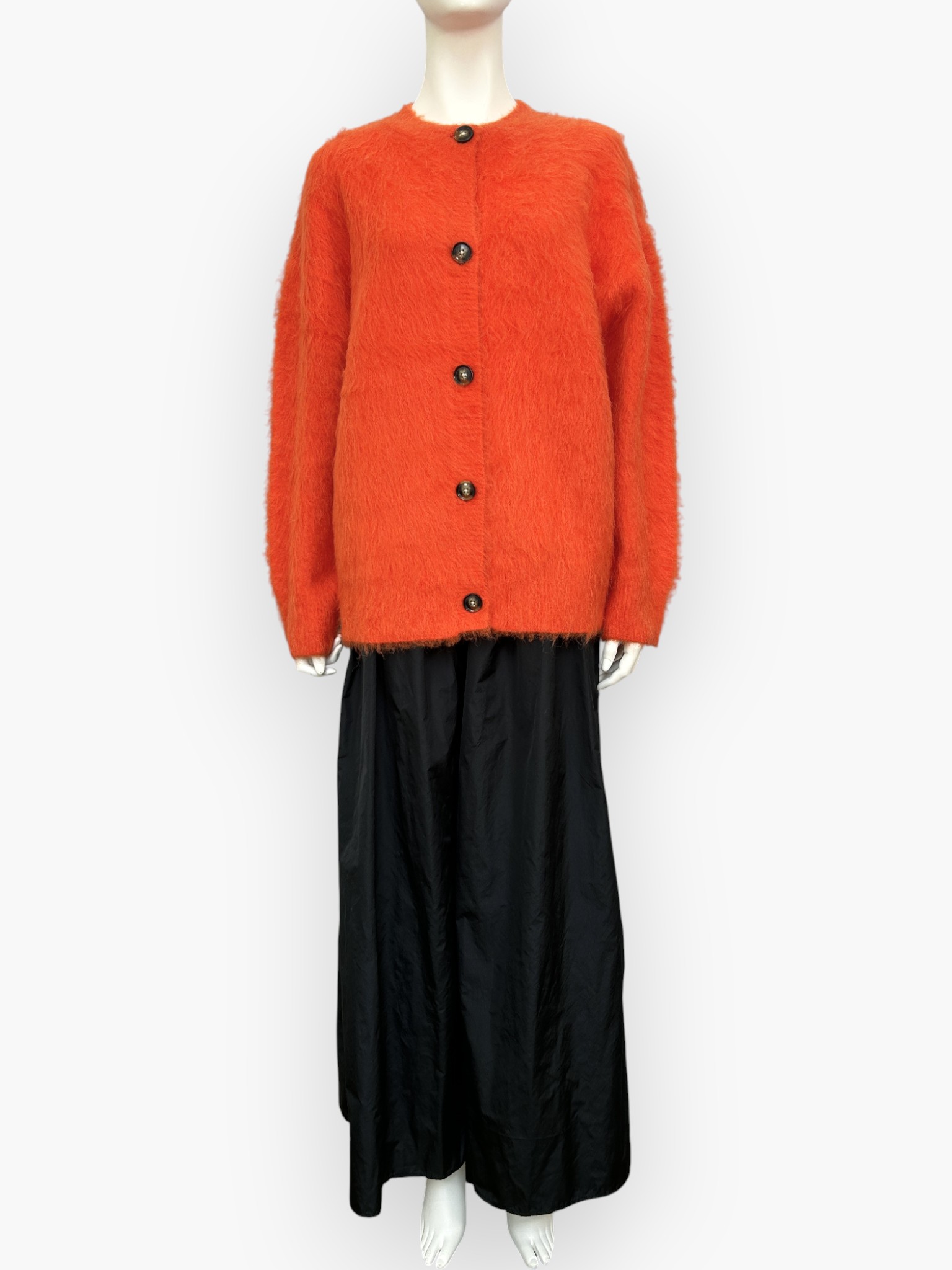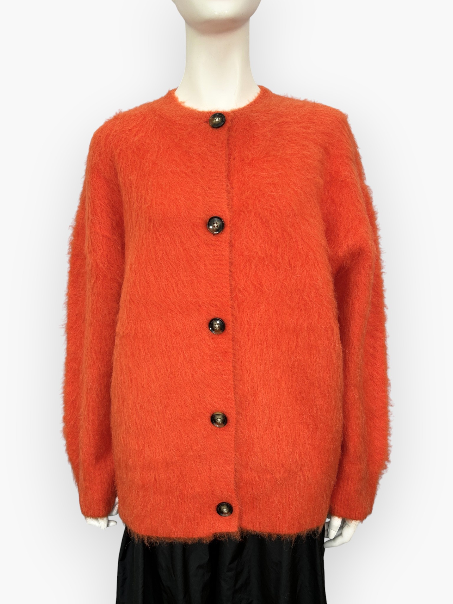 軽めのアウター感覚でさっと羽織れる、ビビットでカラフルなシャギーニット。