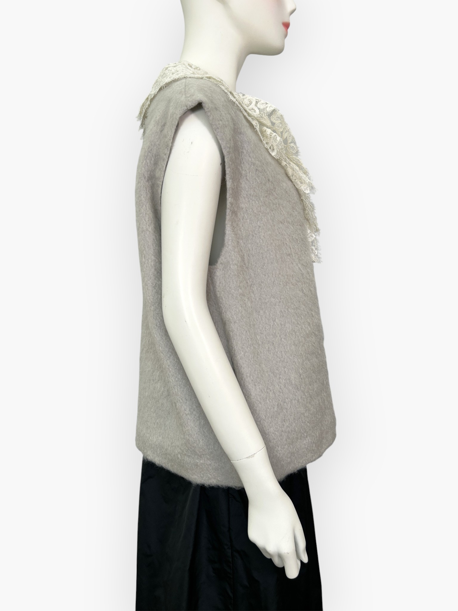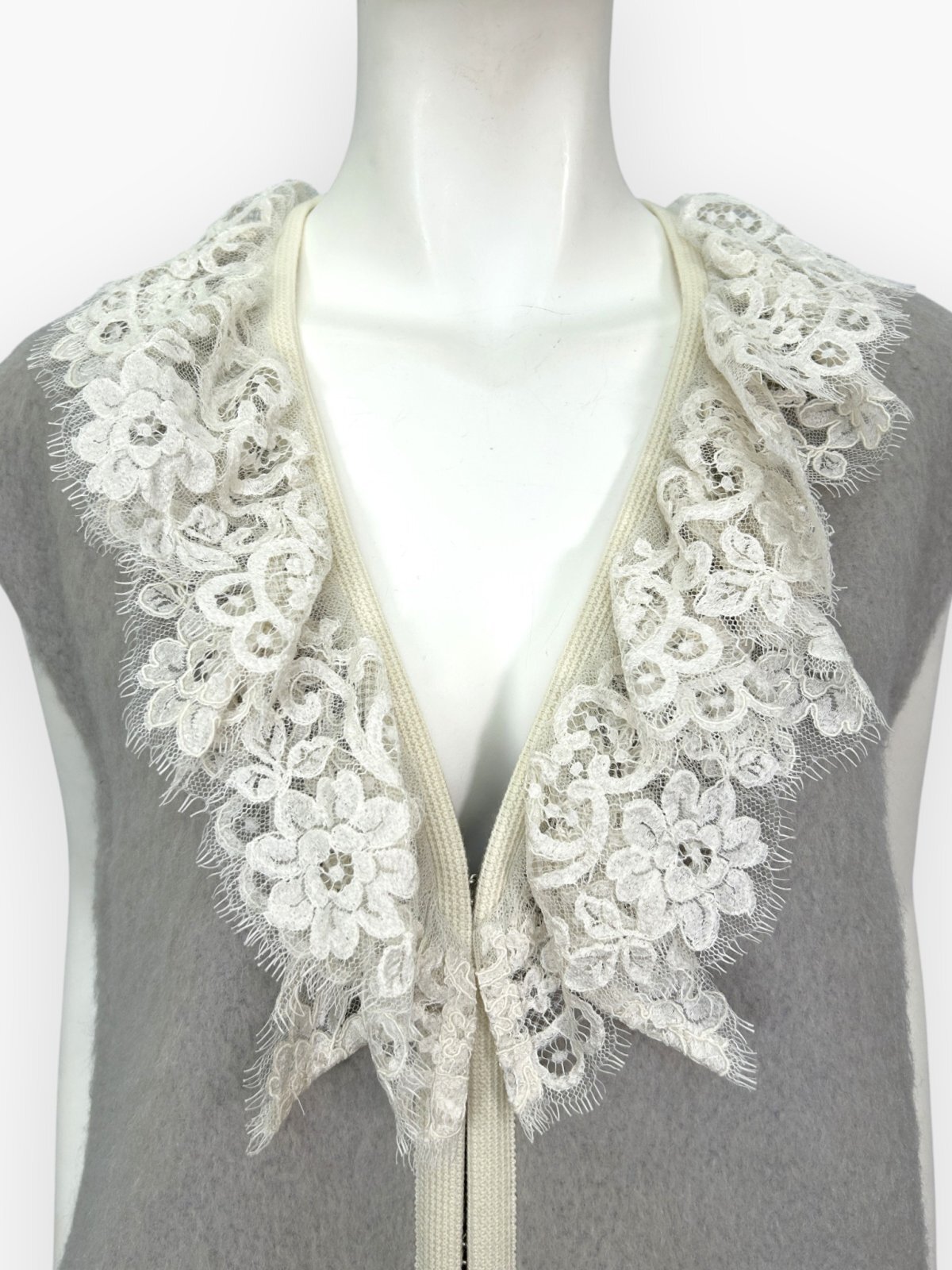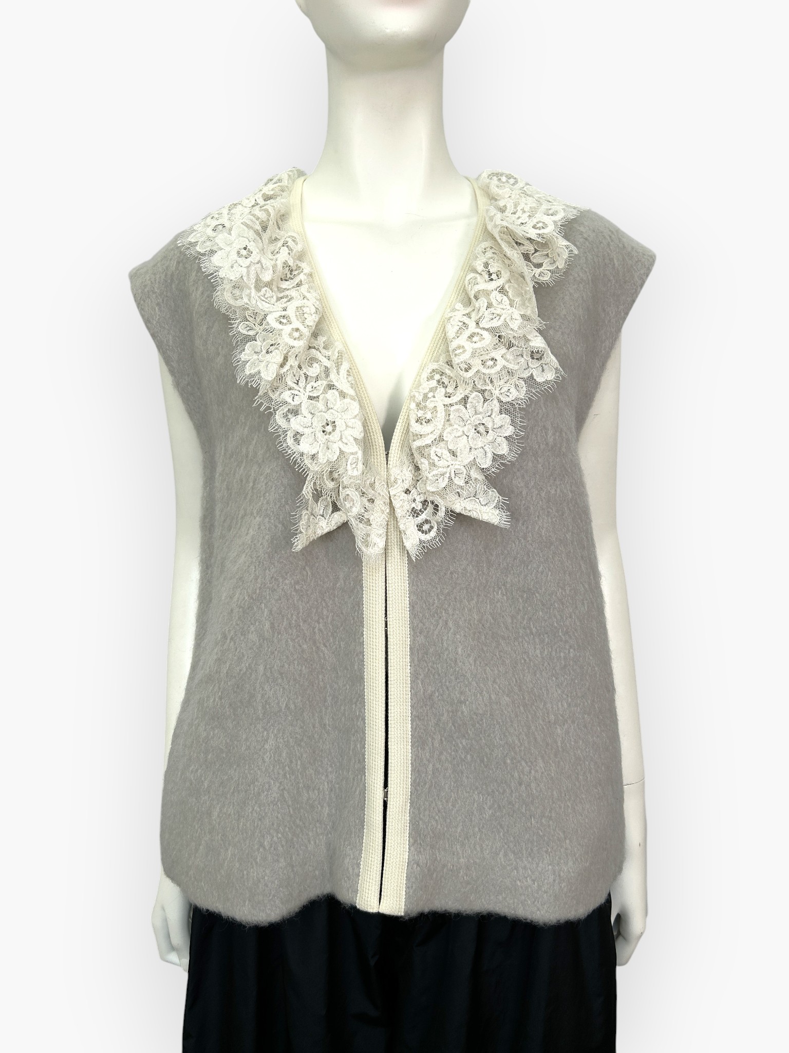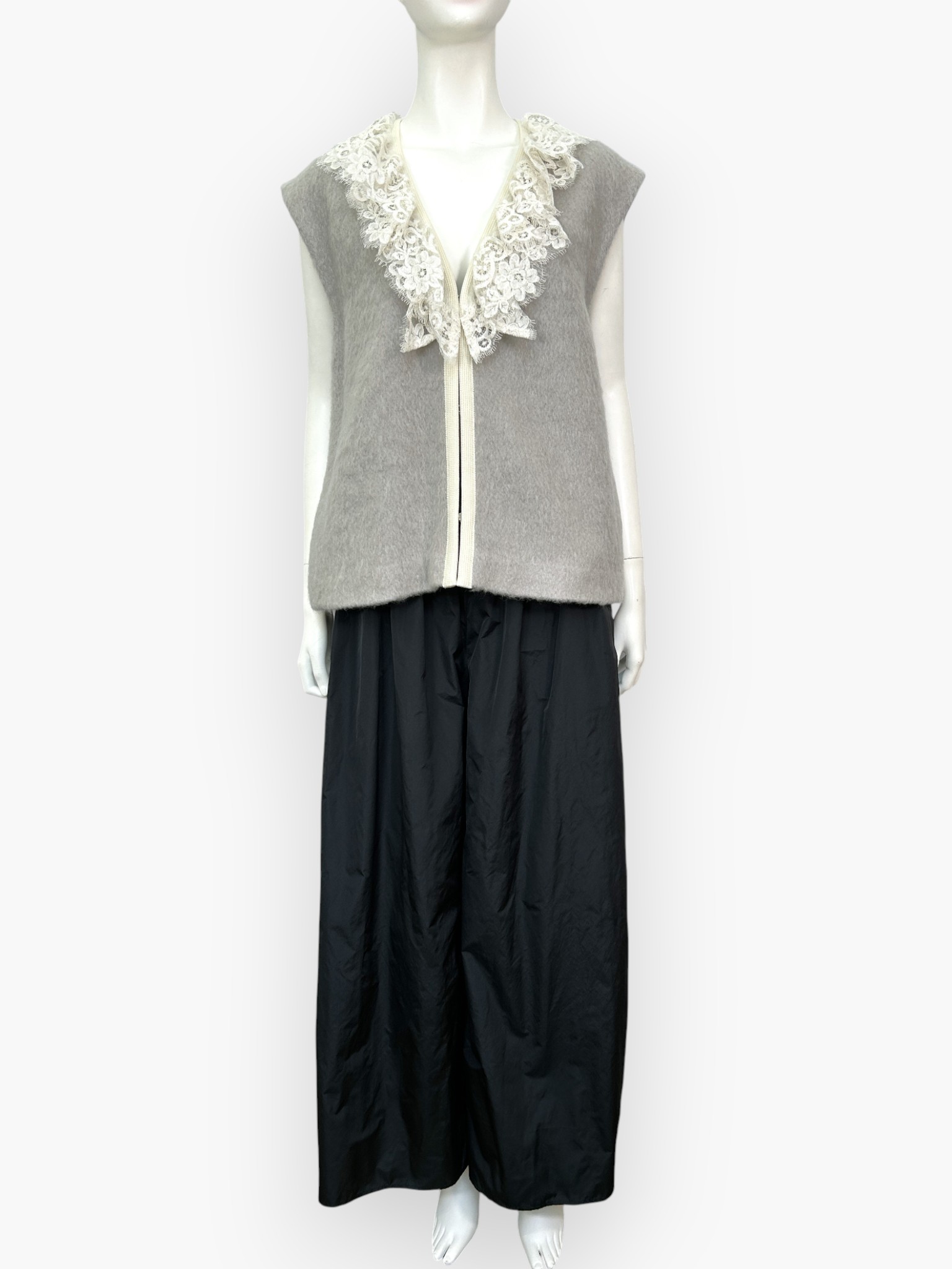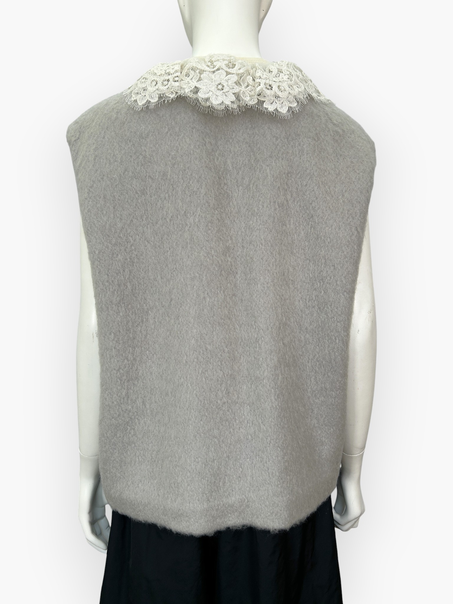 シャギーとレースの組み合わせが大人かわいいジレ。