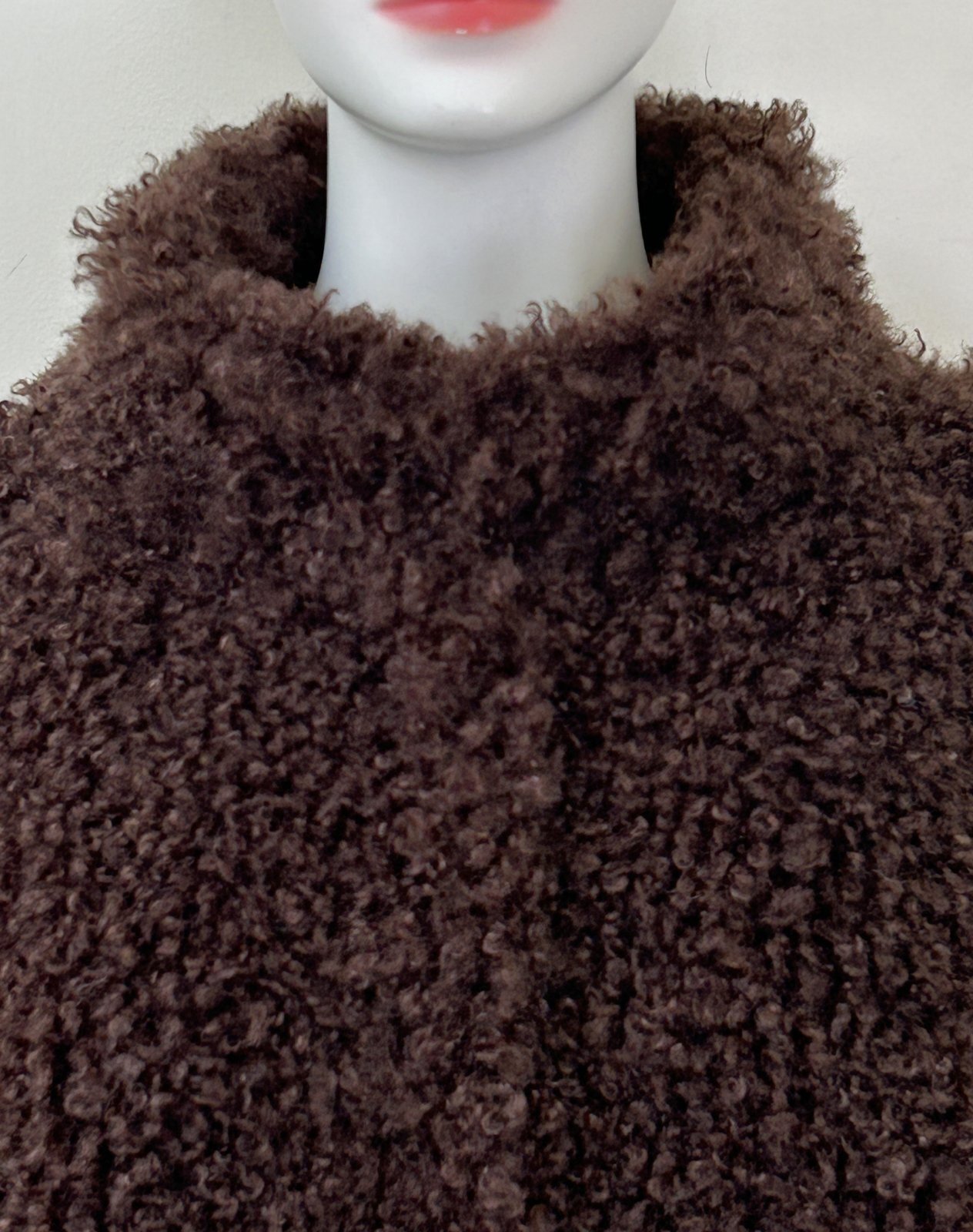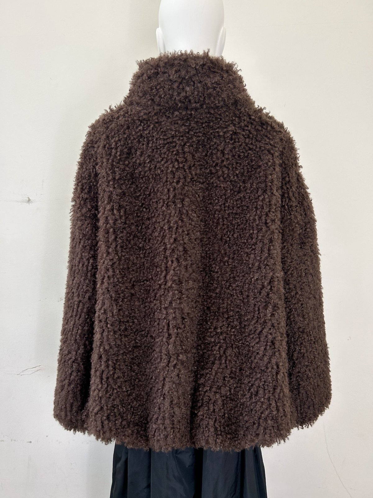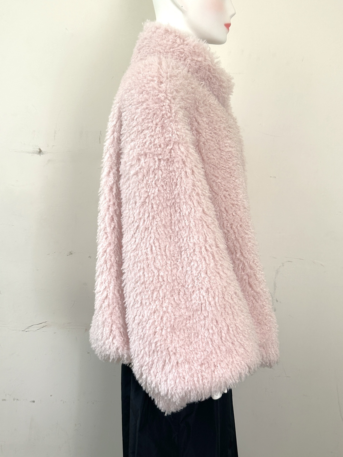 思わず触りたくなるようなふわふわのエコファーはスタイリングの主役になる一着。