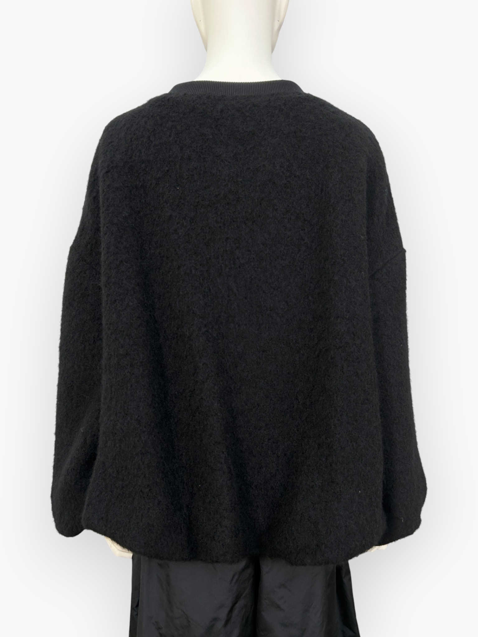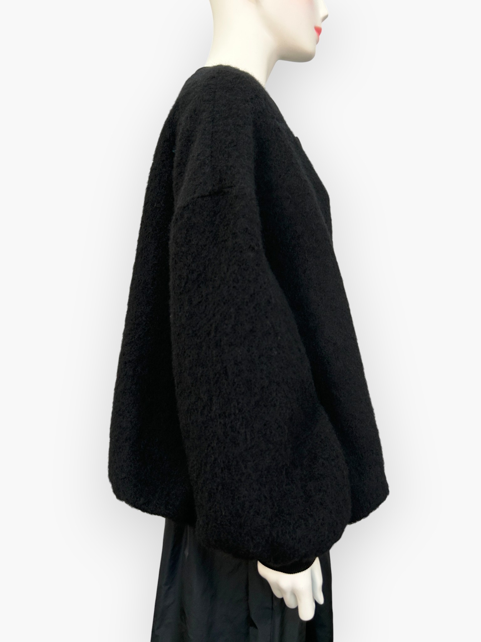 ウールシャギーをカジュアルなアイテムに落とし込むことで、普段の装いにさりげない上品さをプラスしてくれる一着です。