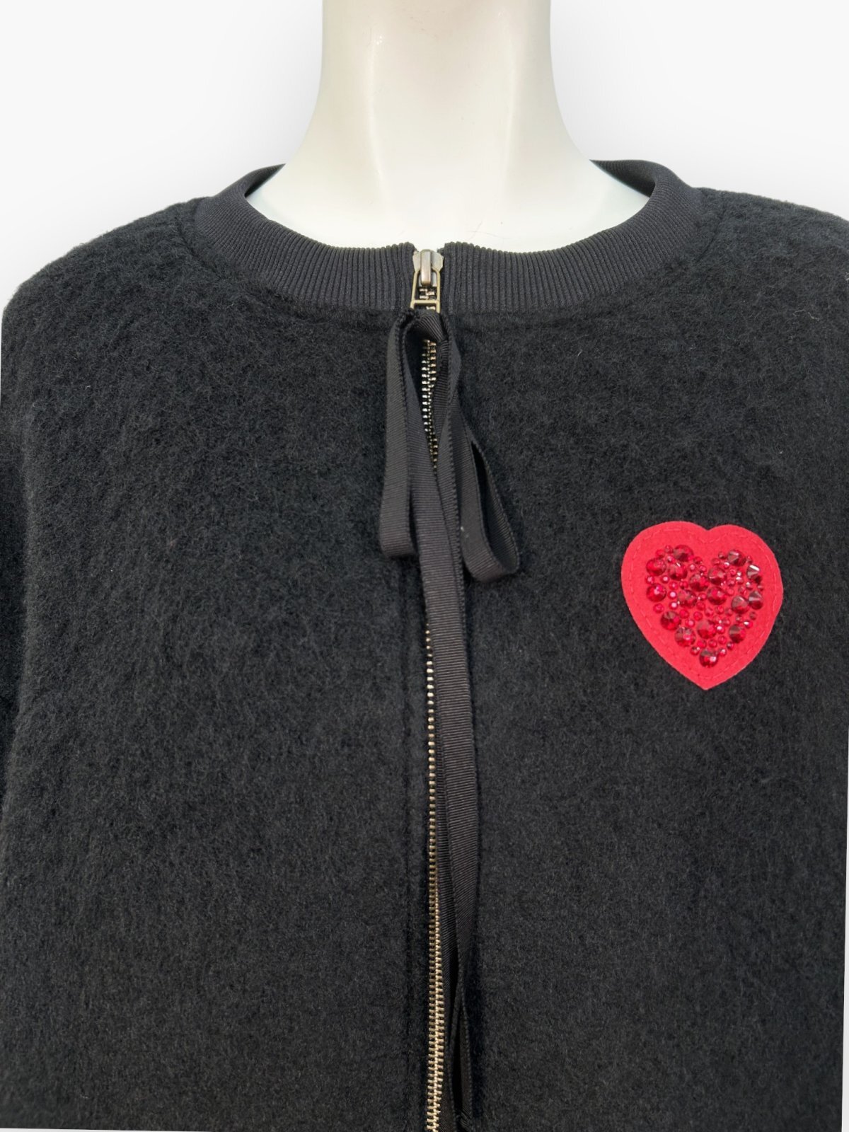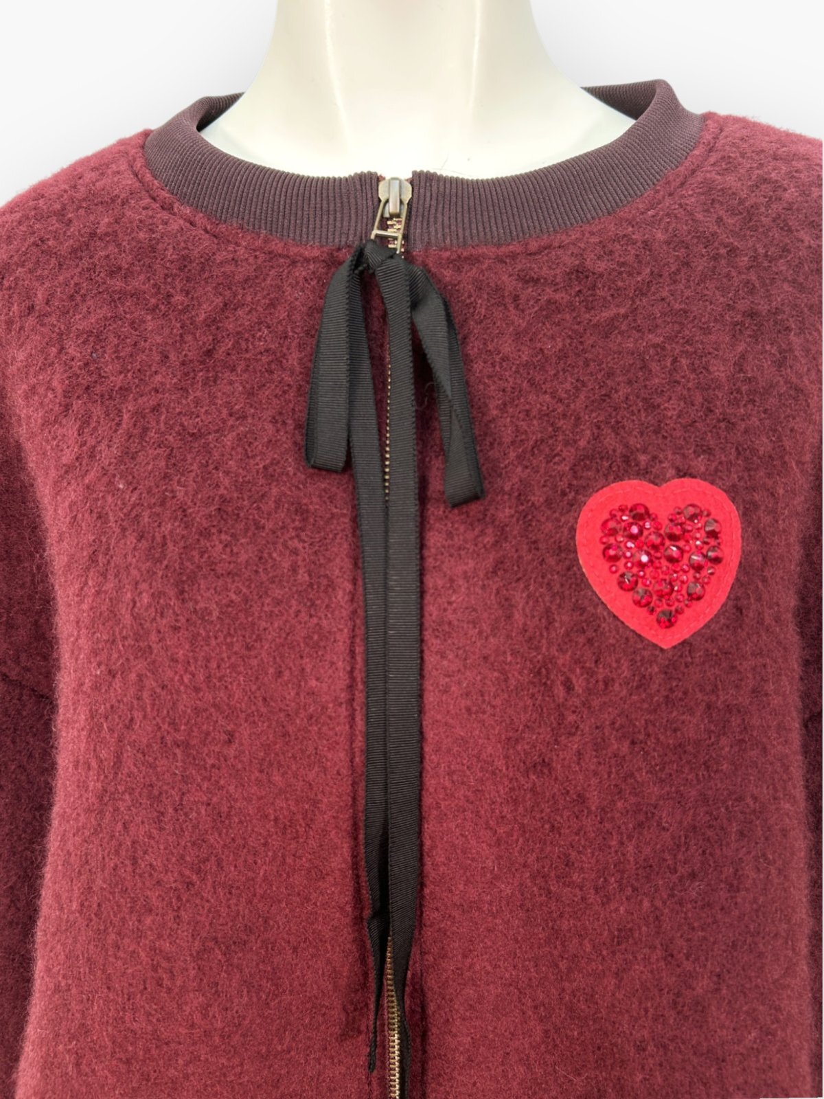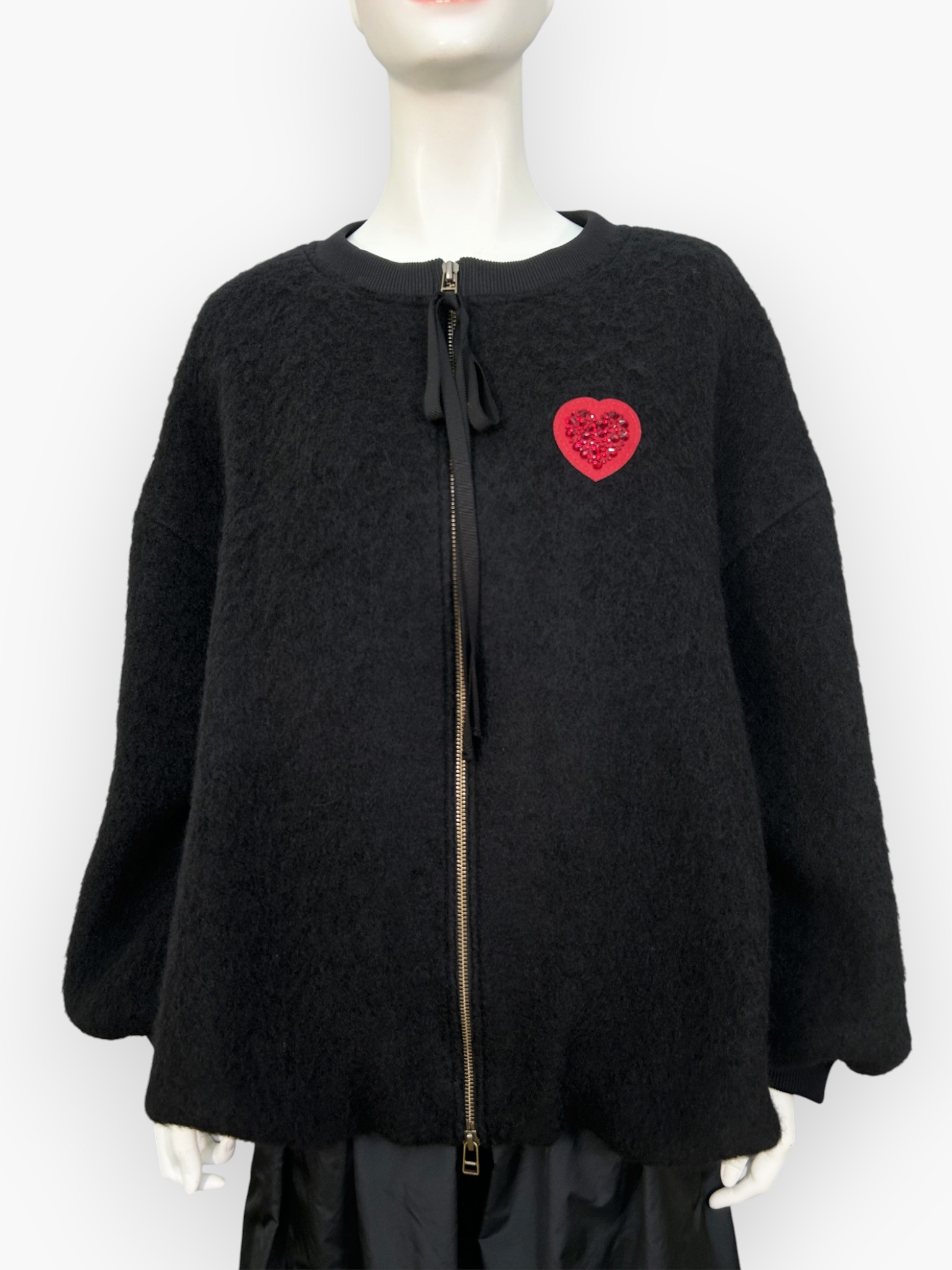 落ち着いたカラーにワンポイントのハートの組み合わせが大人の遊び心を演出してくれるシャギーブルゾン。