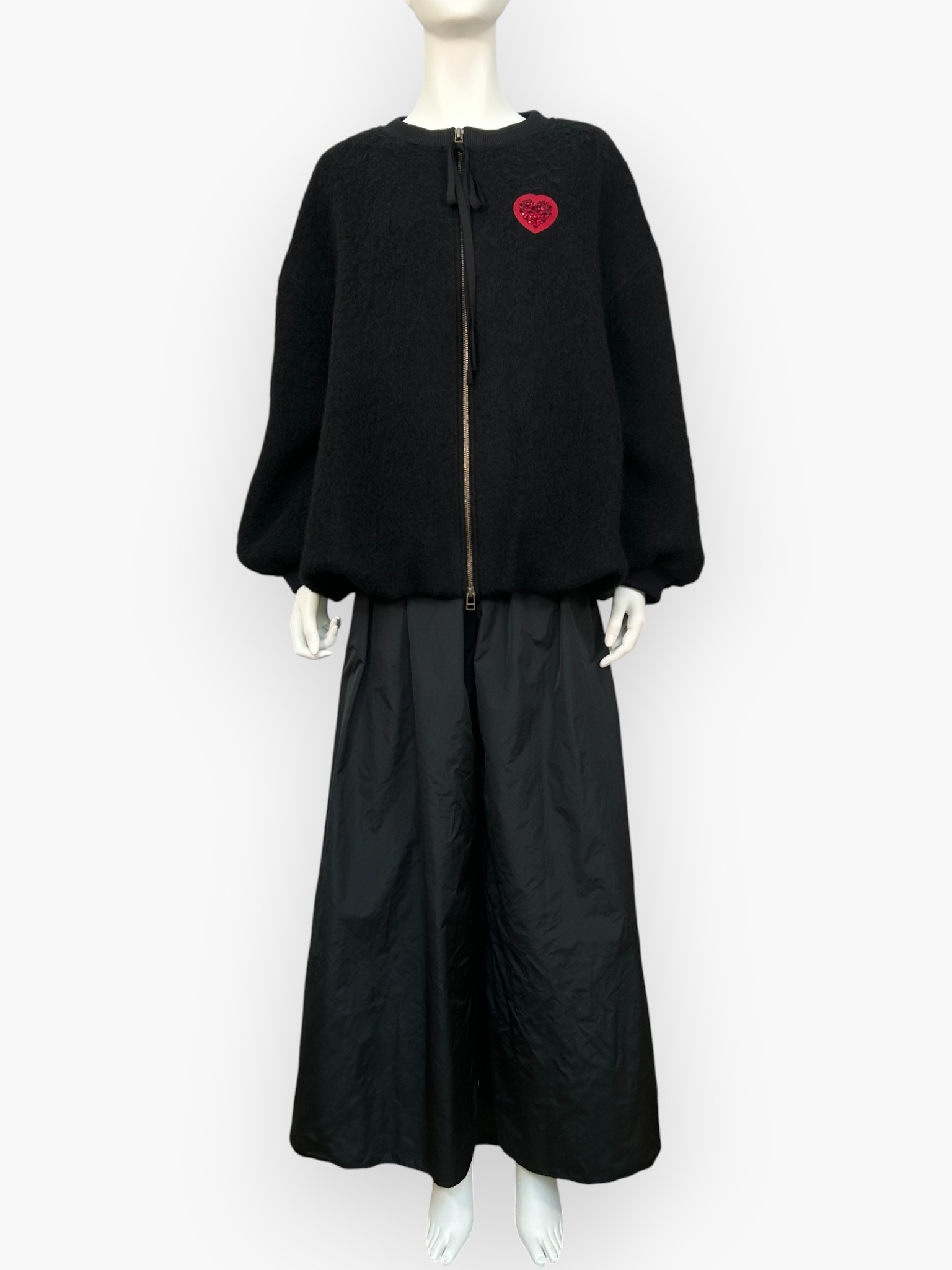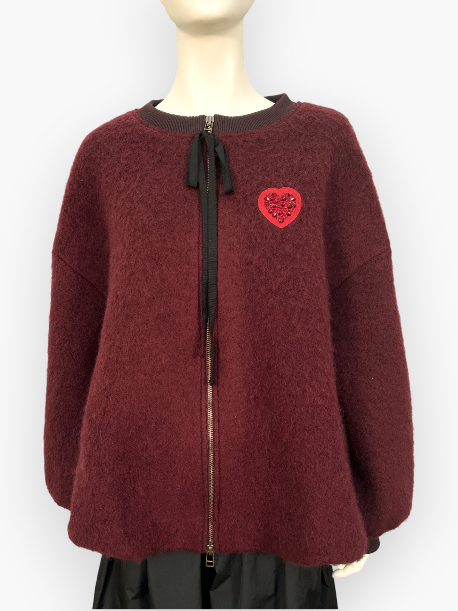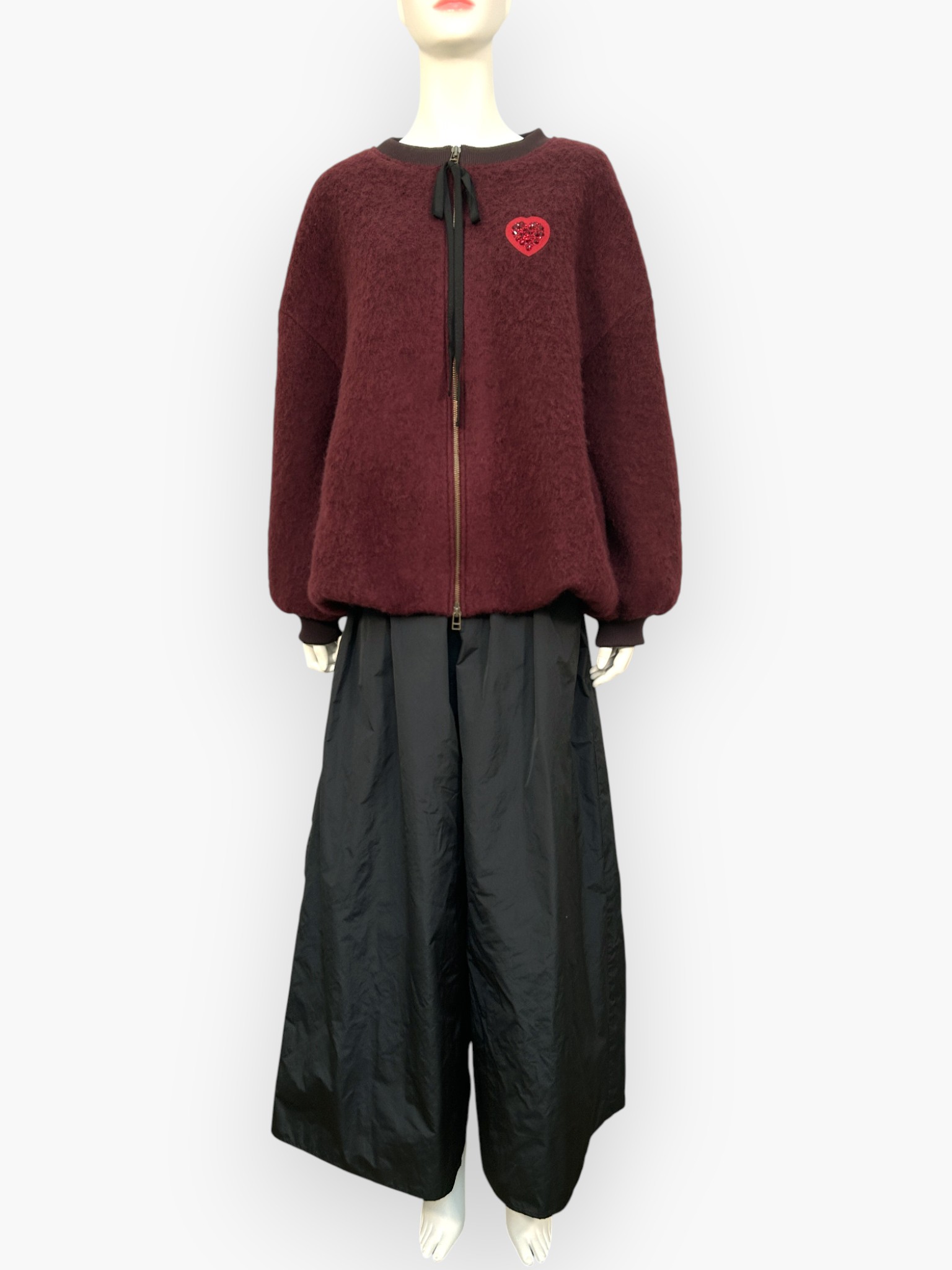 落ち着いたカラーにワンポイントのハートの組み合わせが大人の遊び心を演出してくれるシャギーブルゾン。