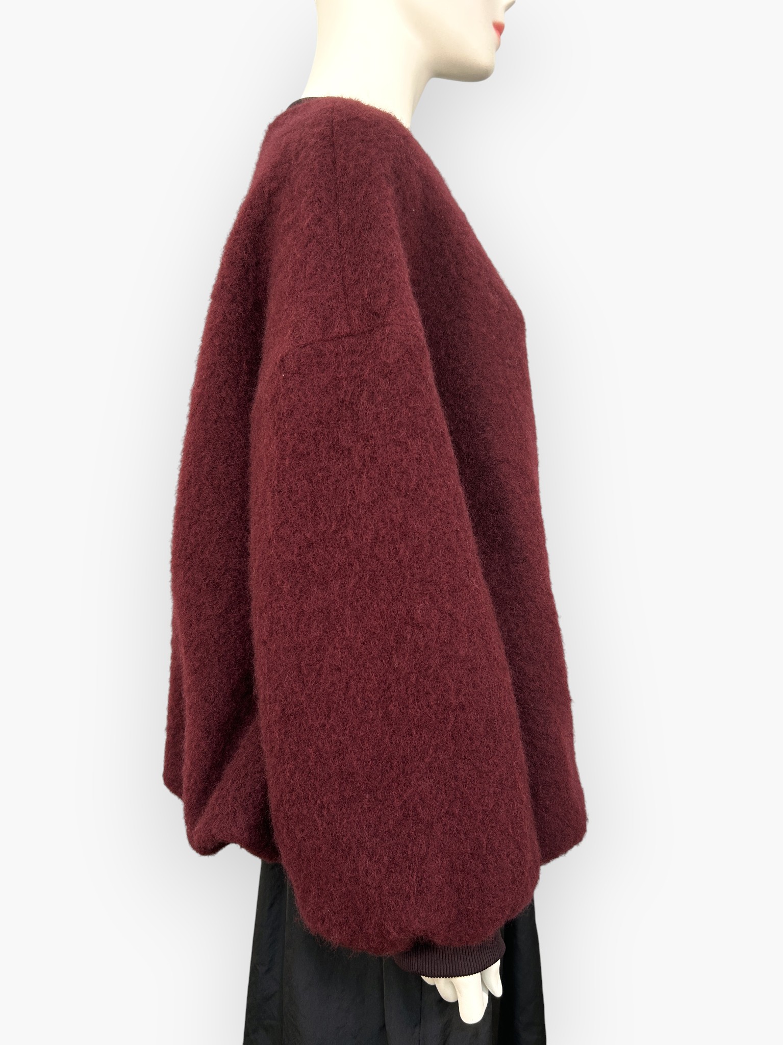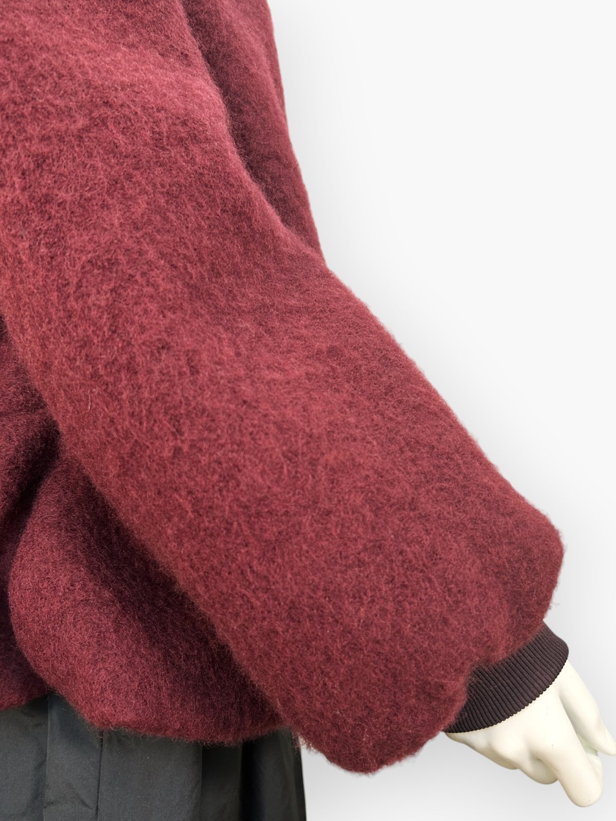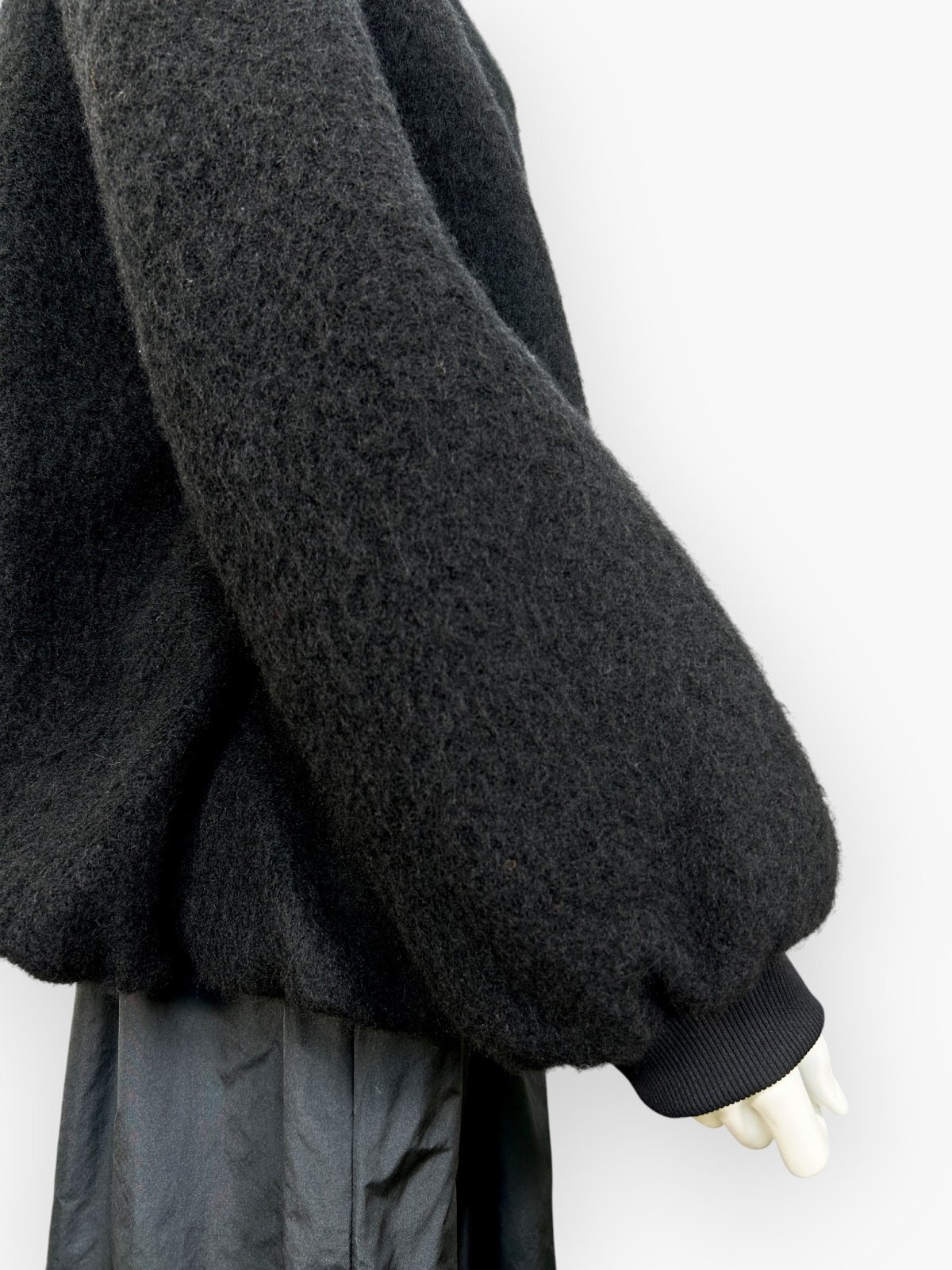 ふんわりと編み上げたパイルジャージーに起毛加工を施したウールシャギー調の素材。