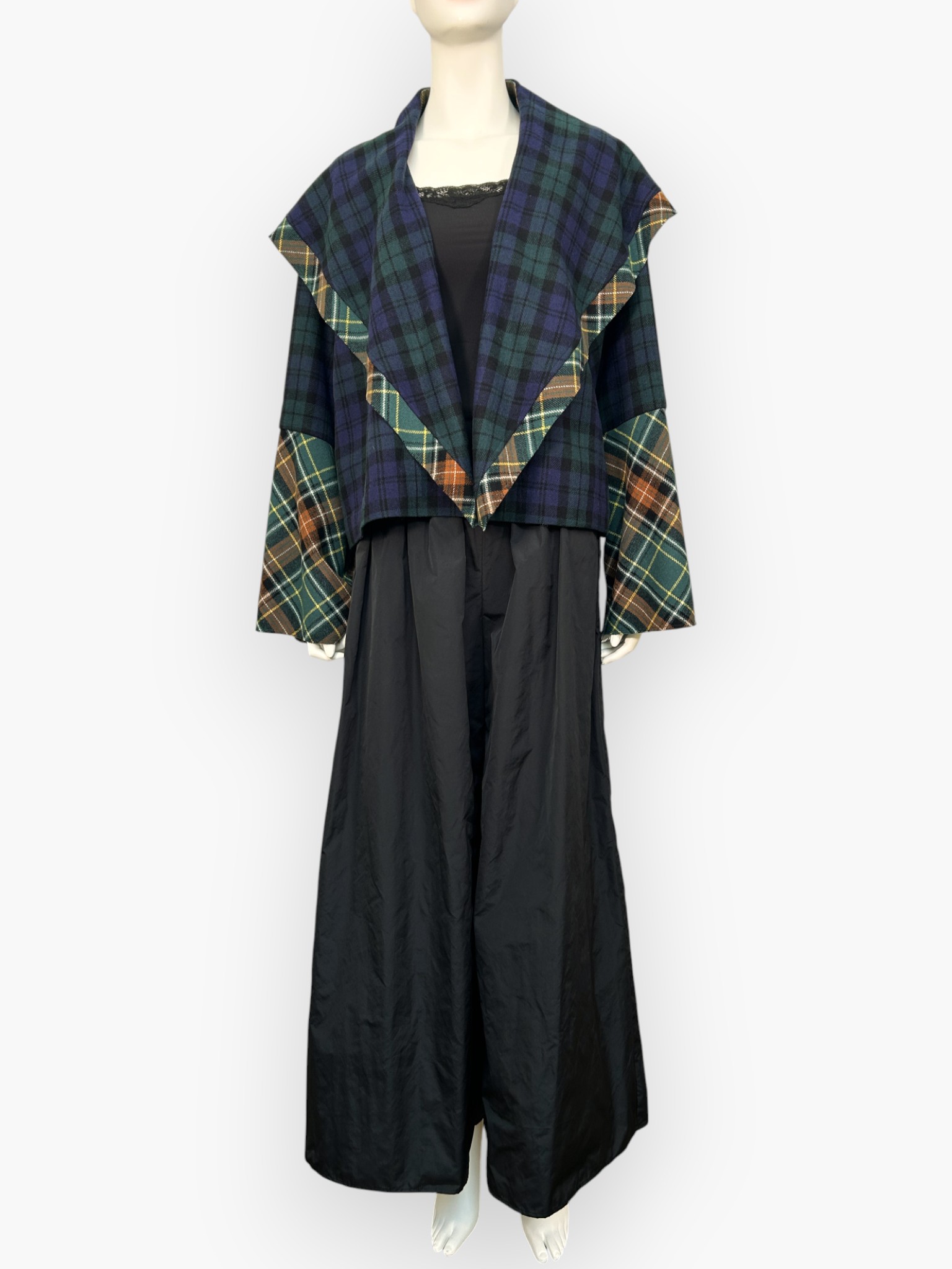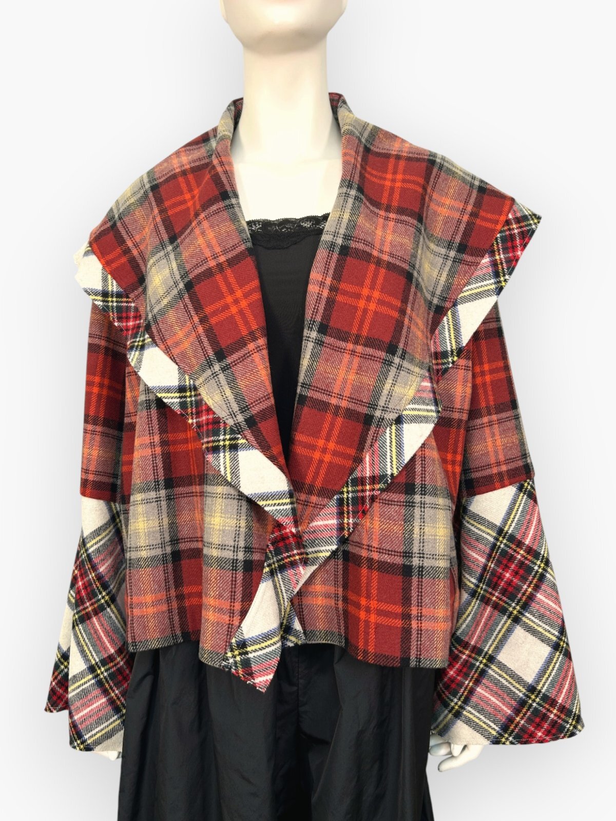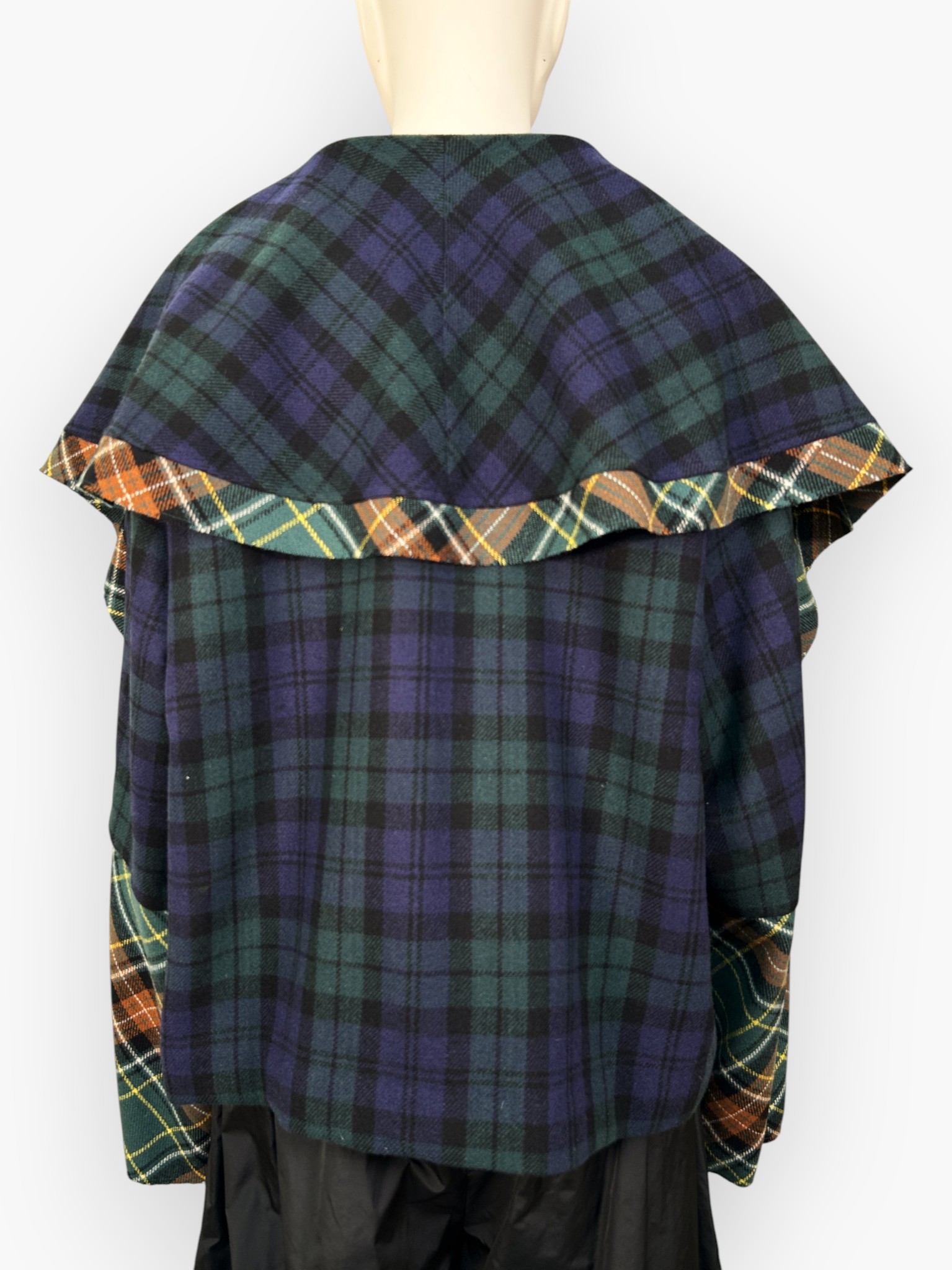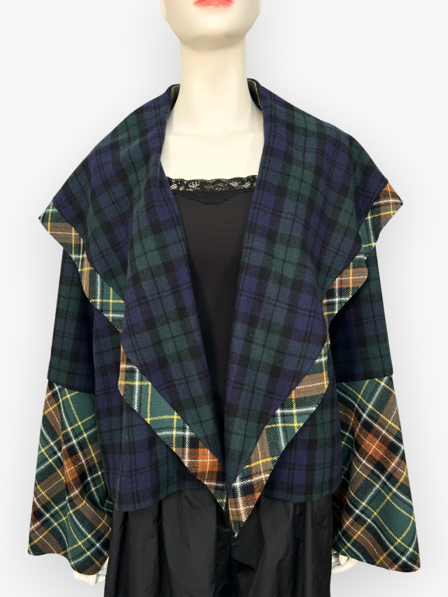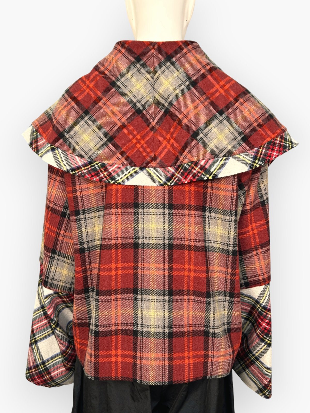 色によって柄の異なる複雑なチェック柄を配色で使用したジャケット。