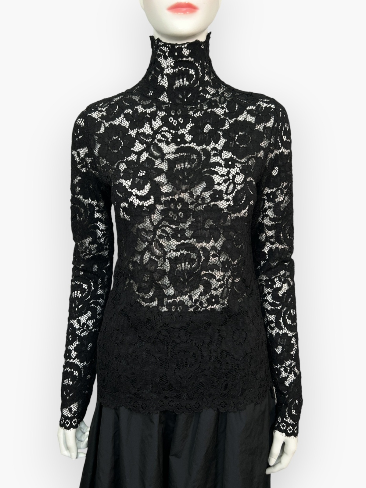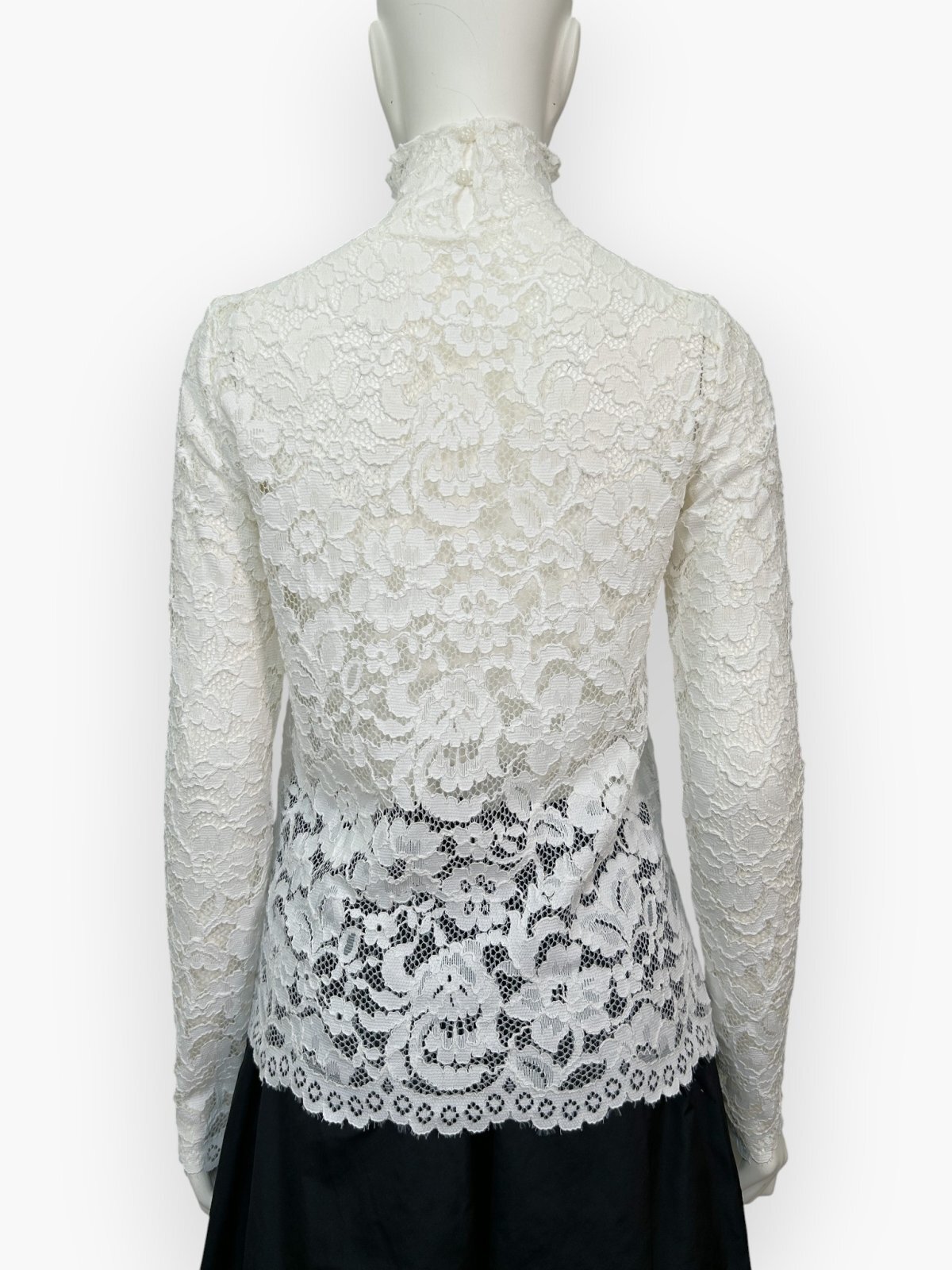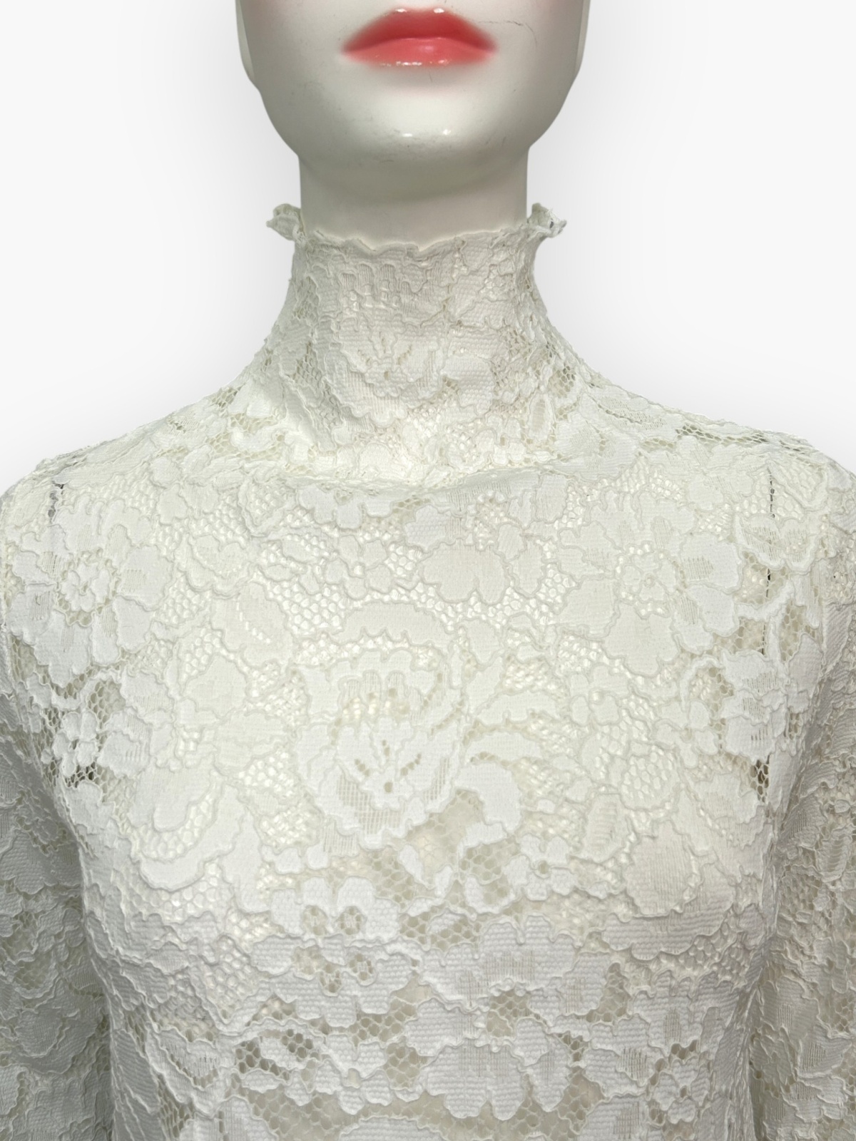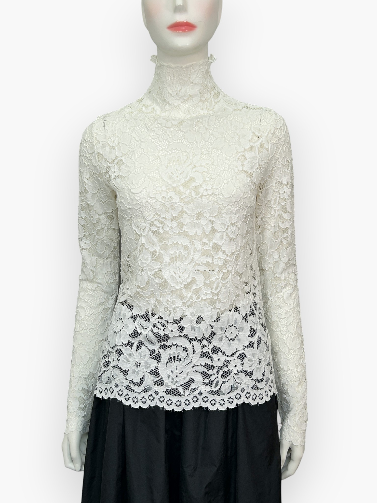たっぷりのコード刺繍が華やかな花柄レースのブラウス。