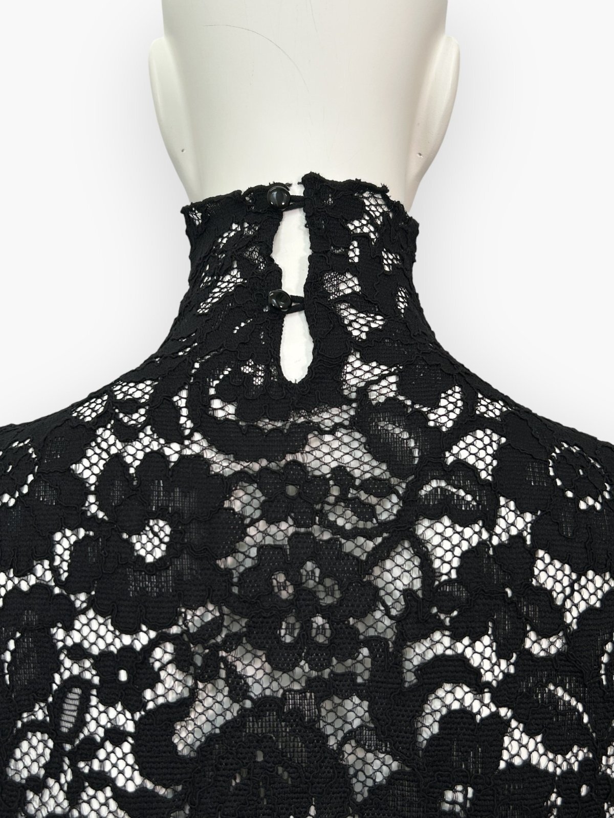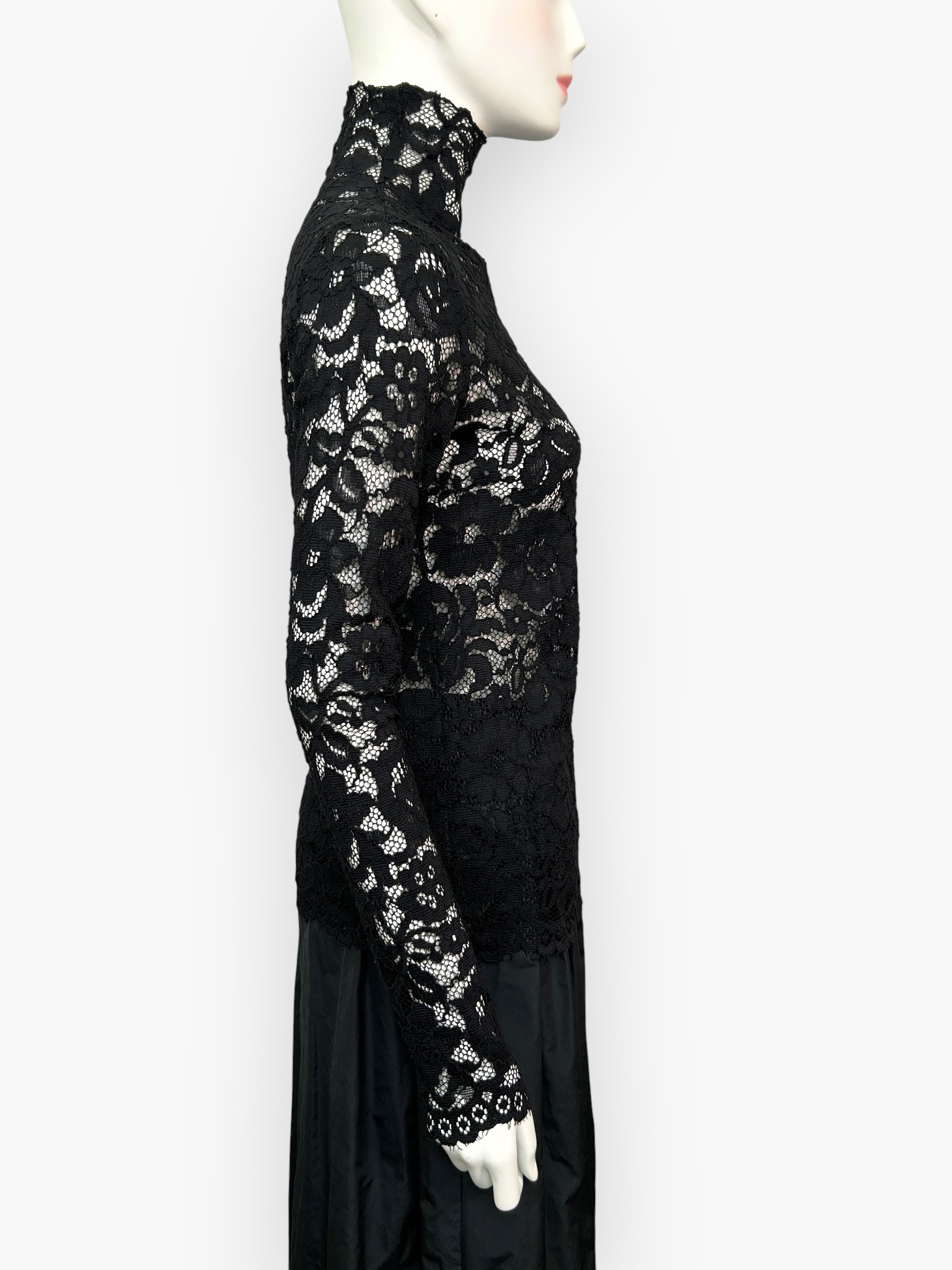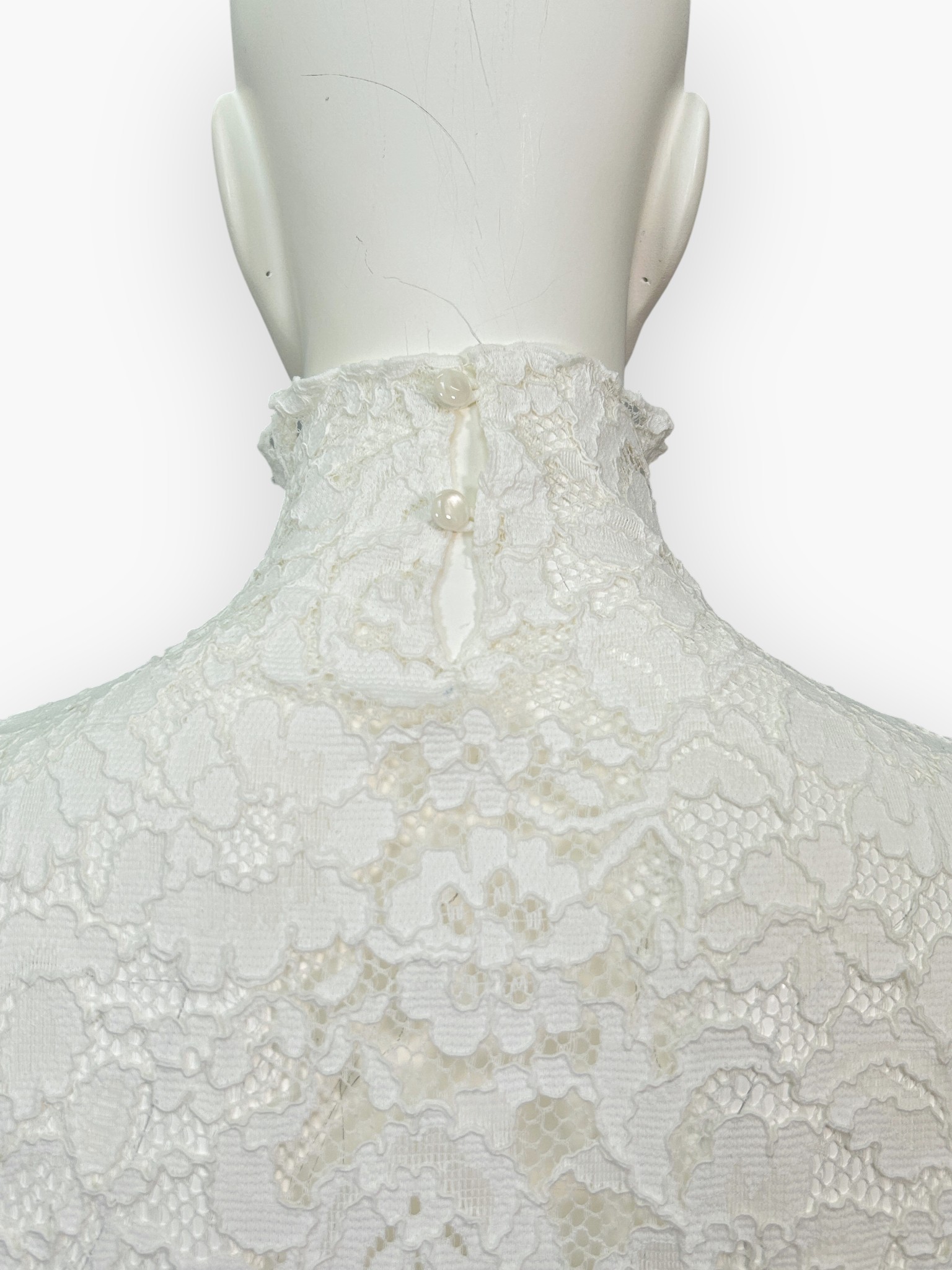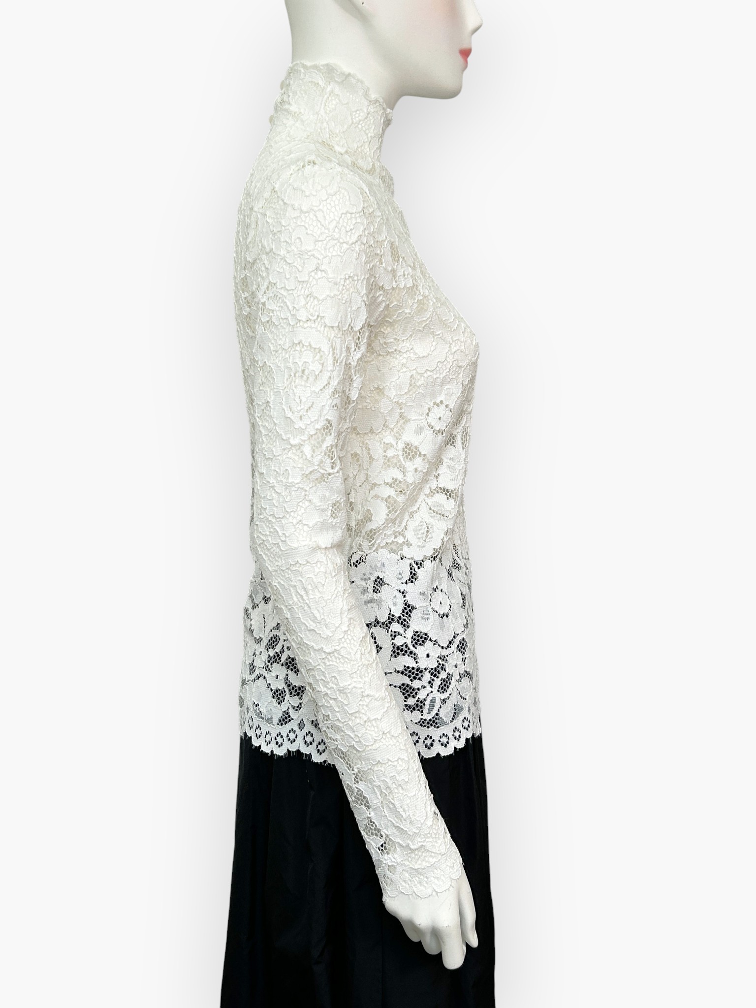 たっぷりのコード刺繍が華やかな花柄レースのブラウス。