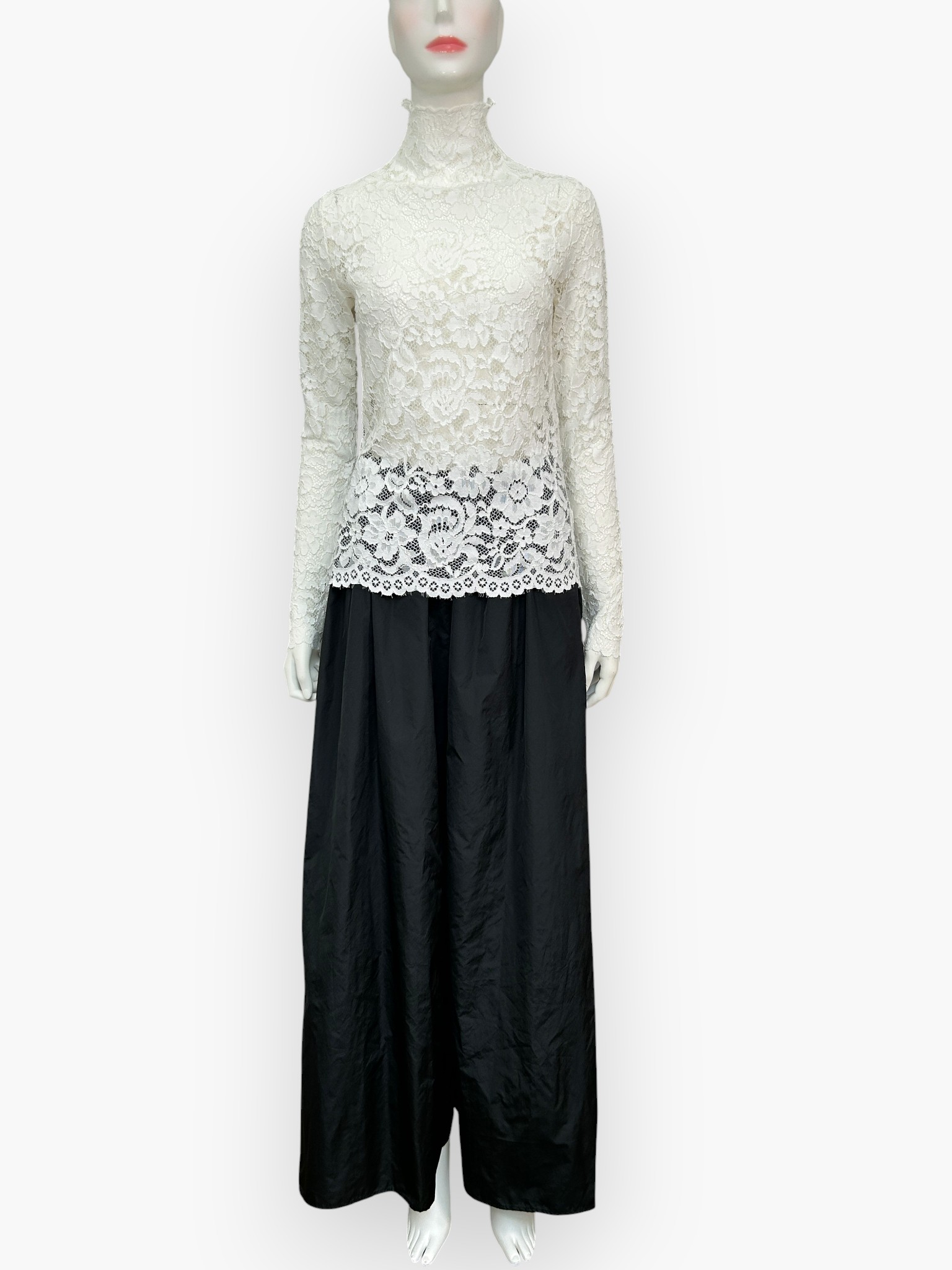 袖口や裾は動きのあるスカラップを活かし、どこから見てもエレガントで美しい仕上がりに。