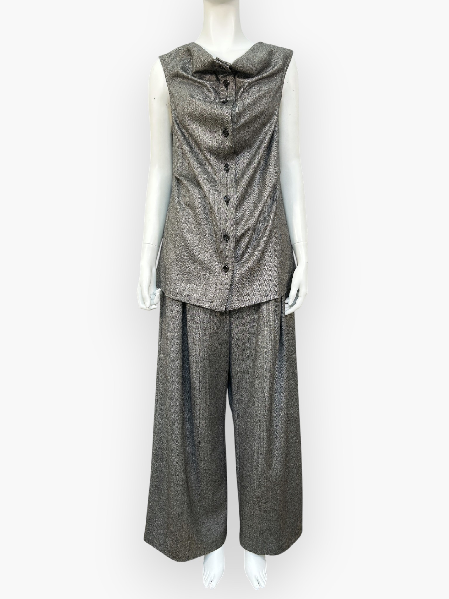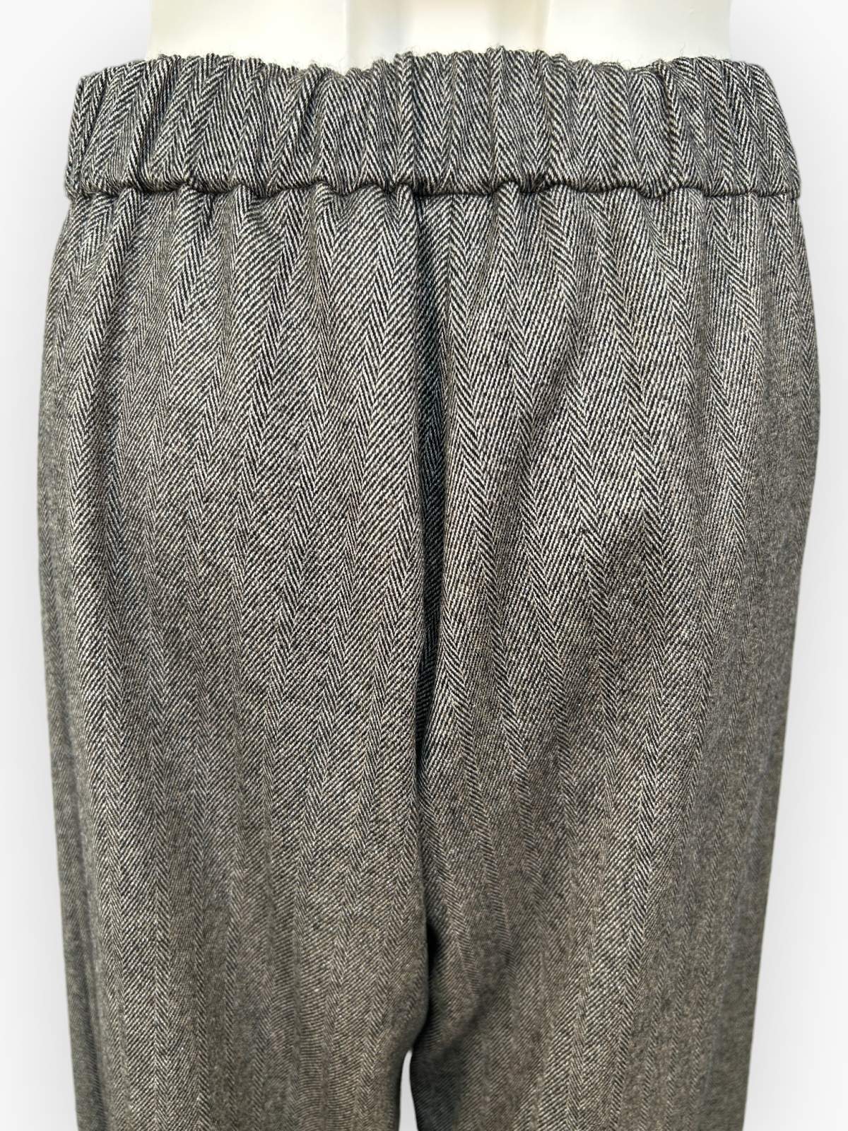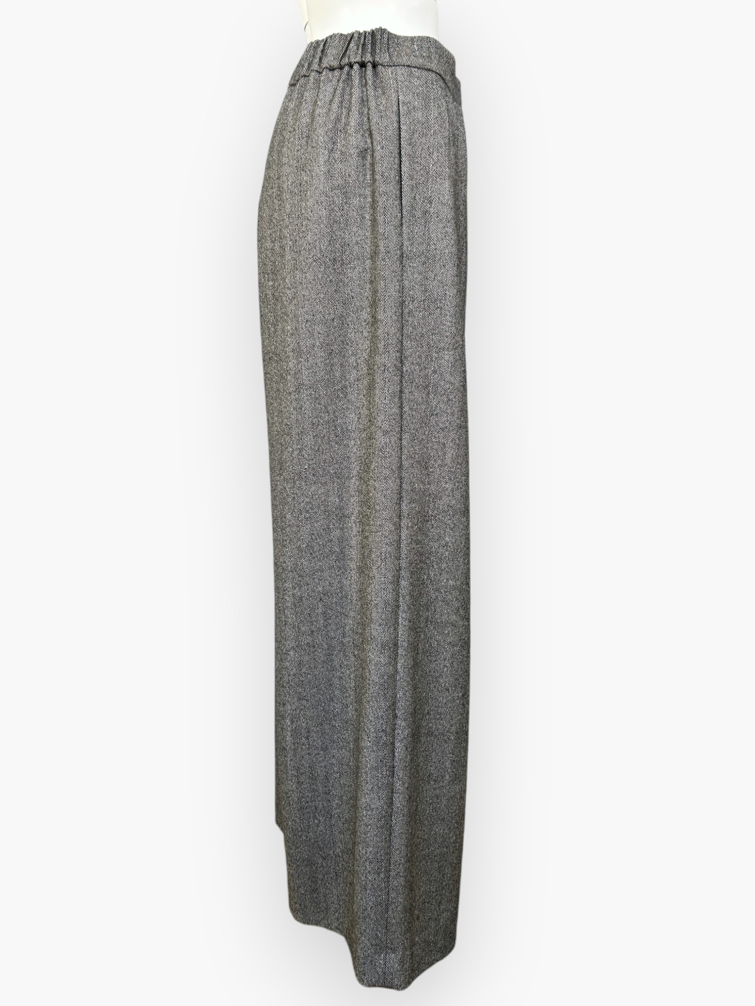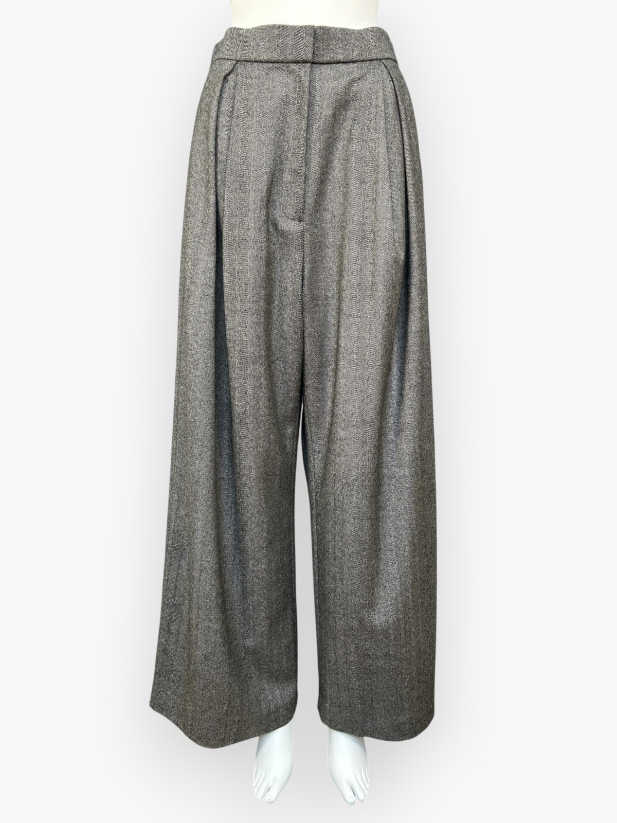 上質なへリンボン生地で仕立てたワイドパンツ。