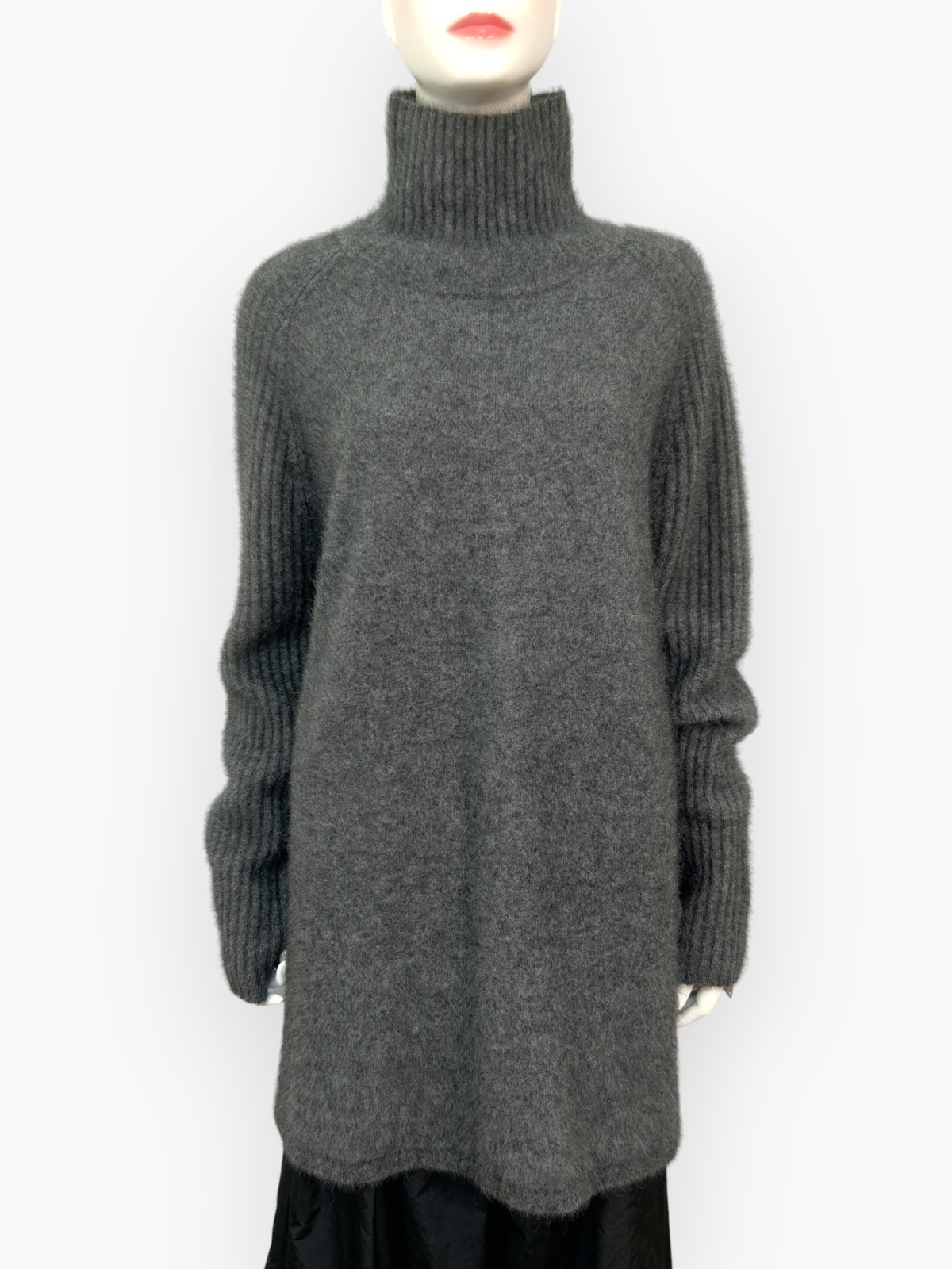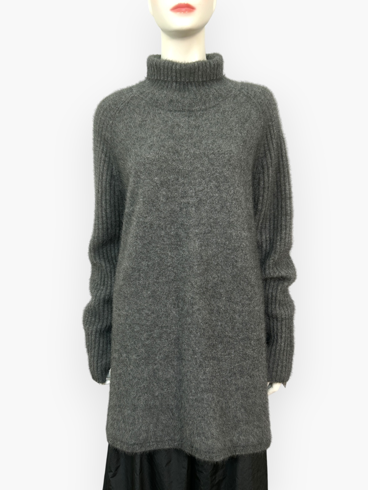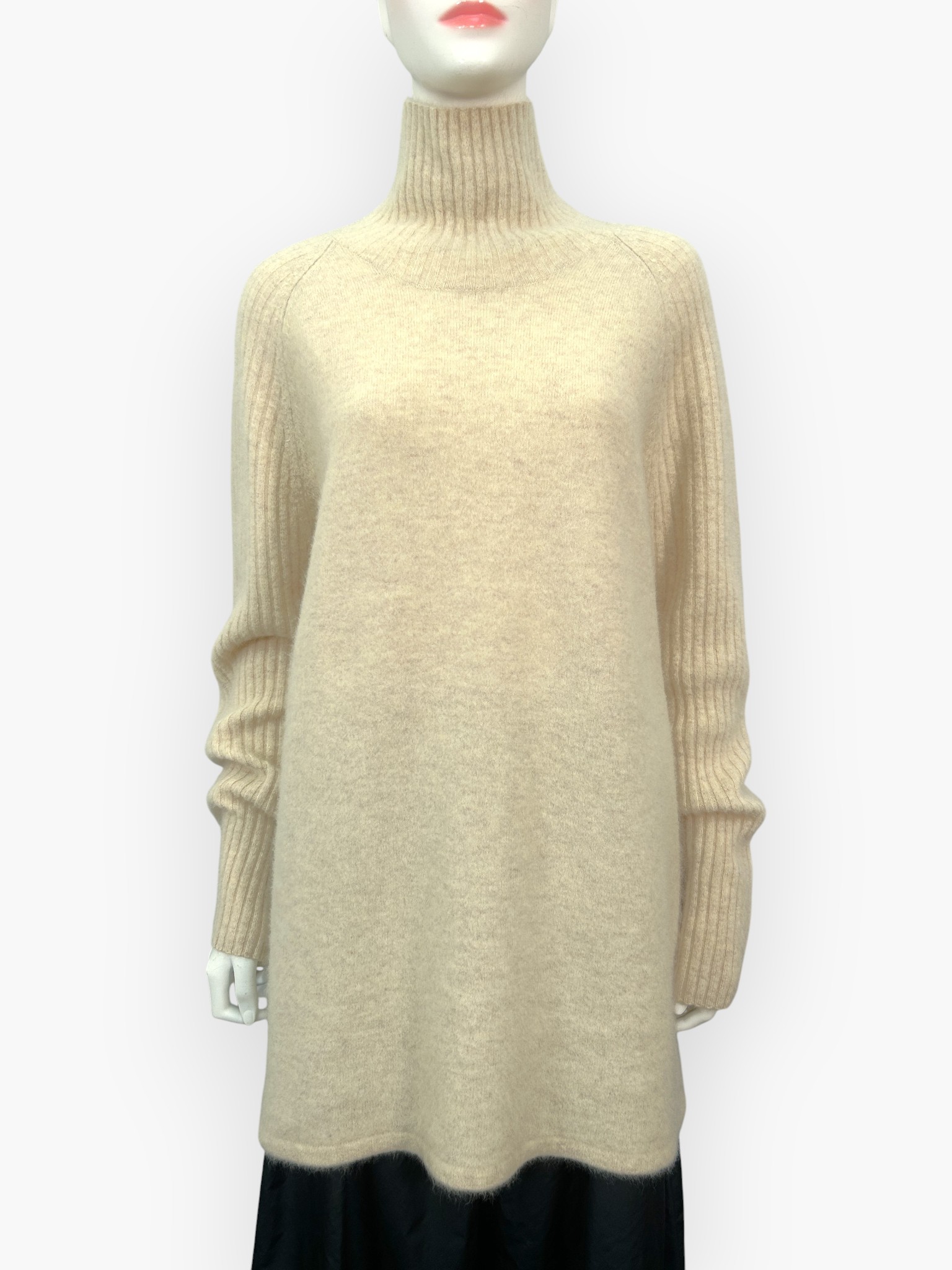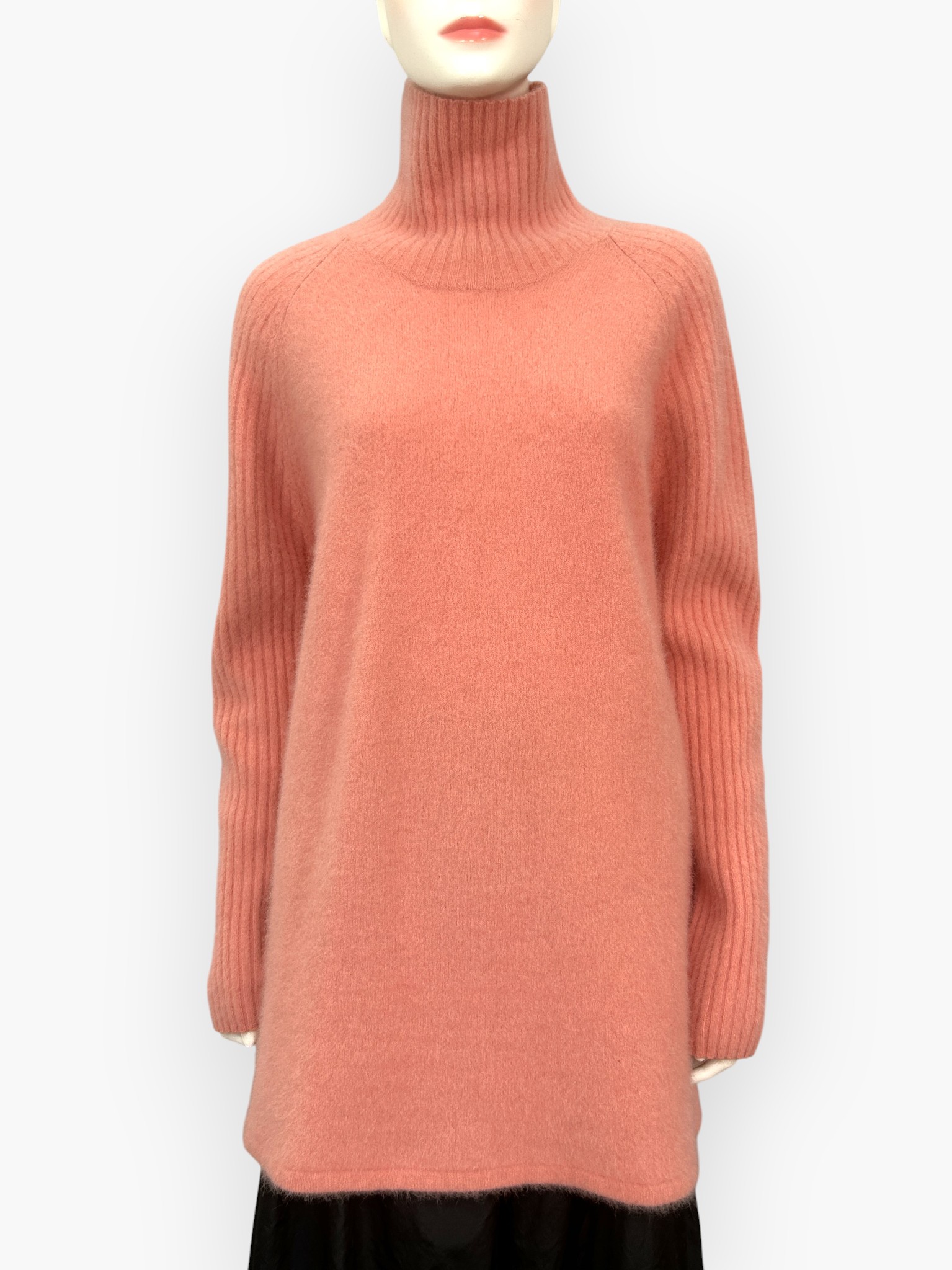 ラクーンを55%使用したふんわりと軽く、明るく澄んだ色のチュニックニット。