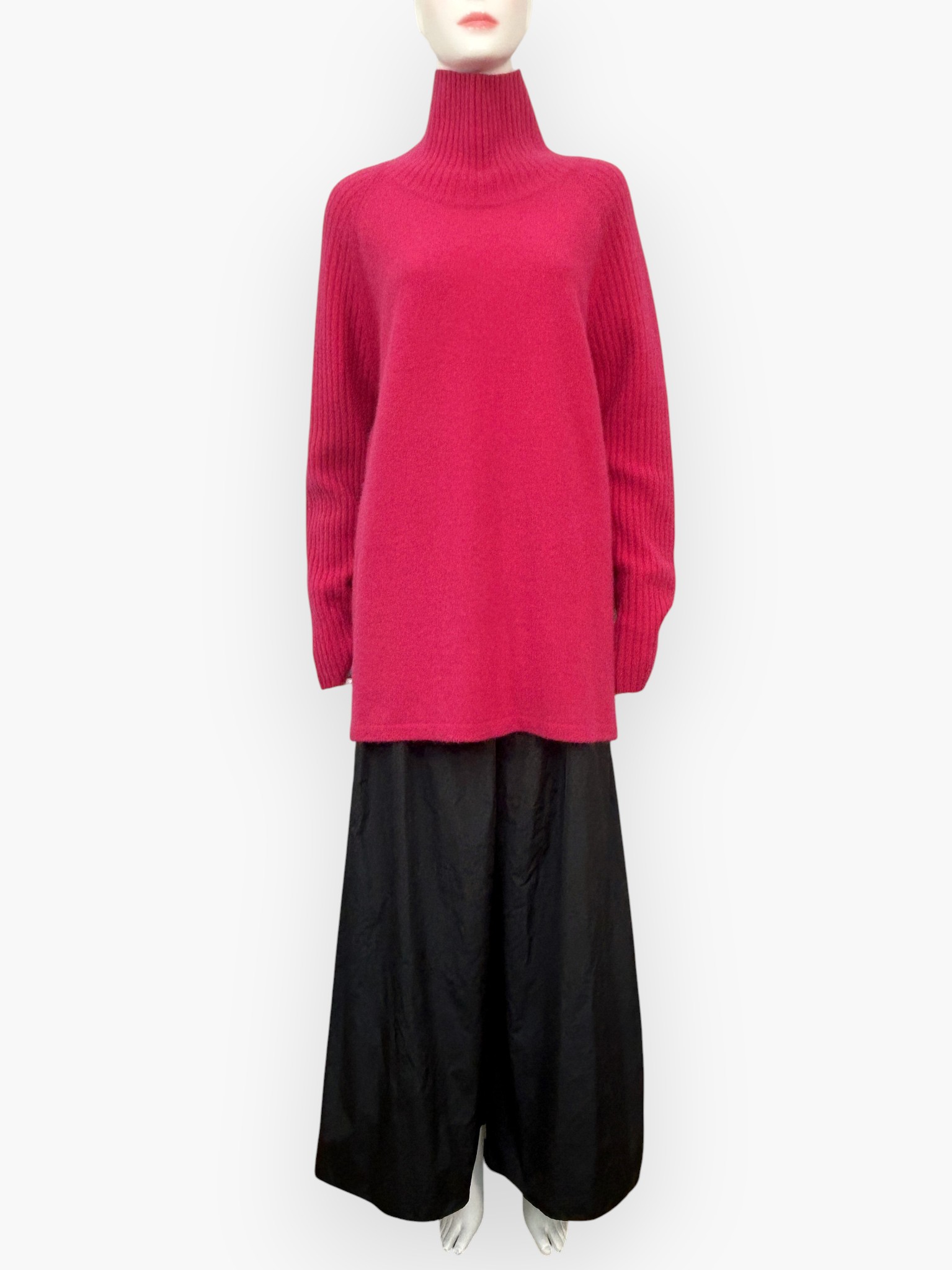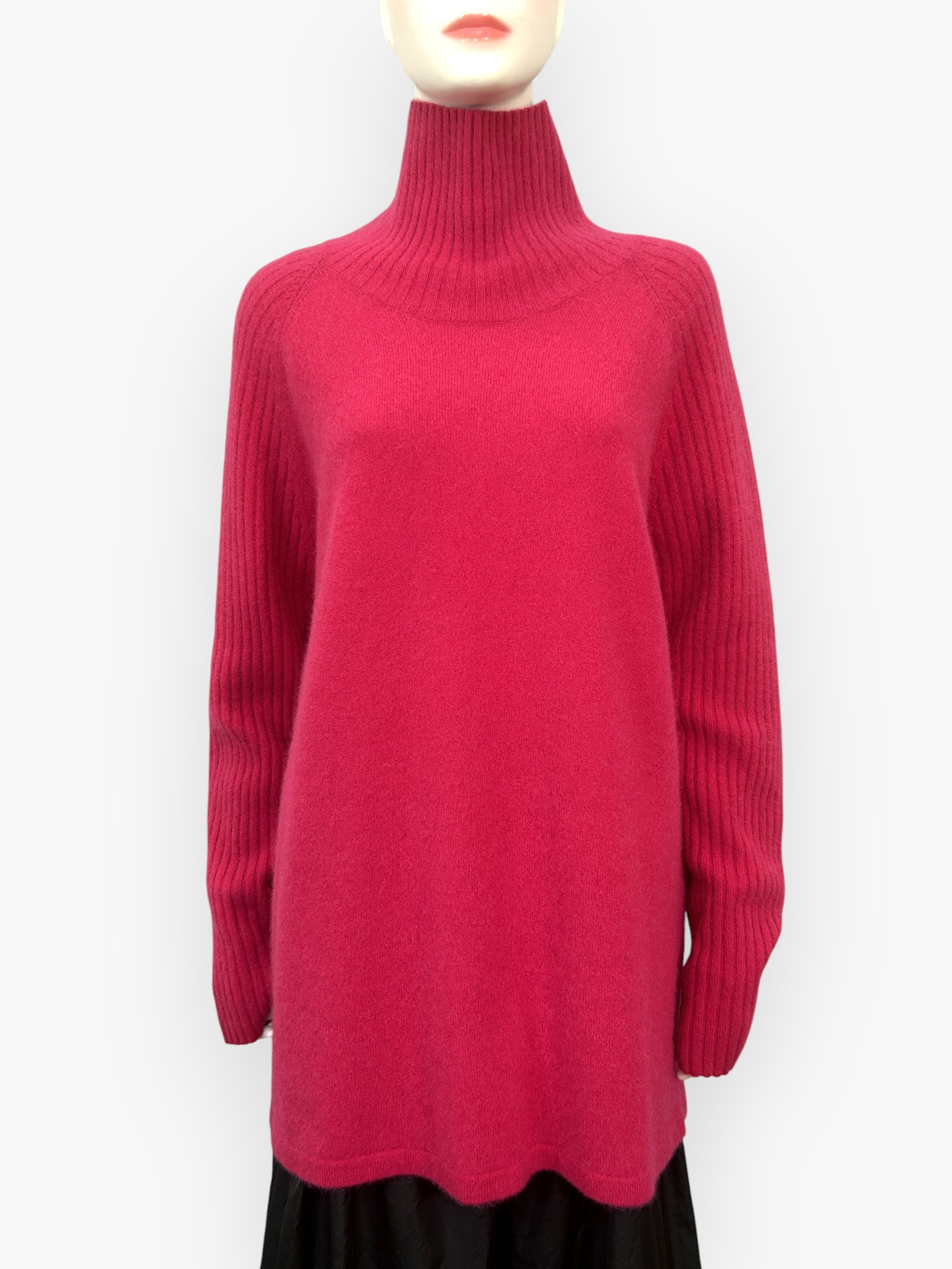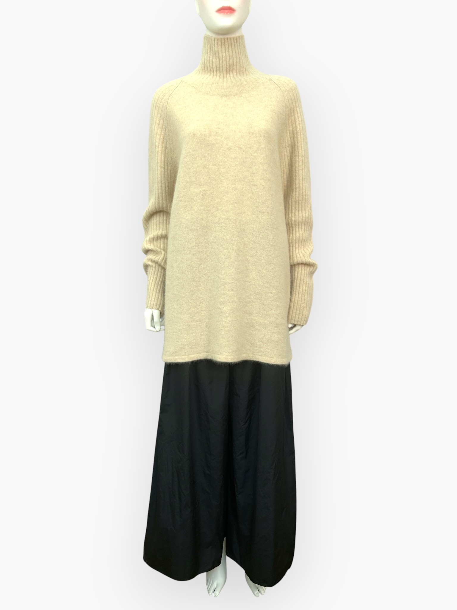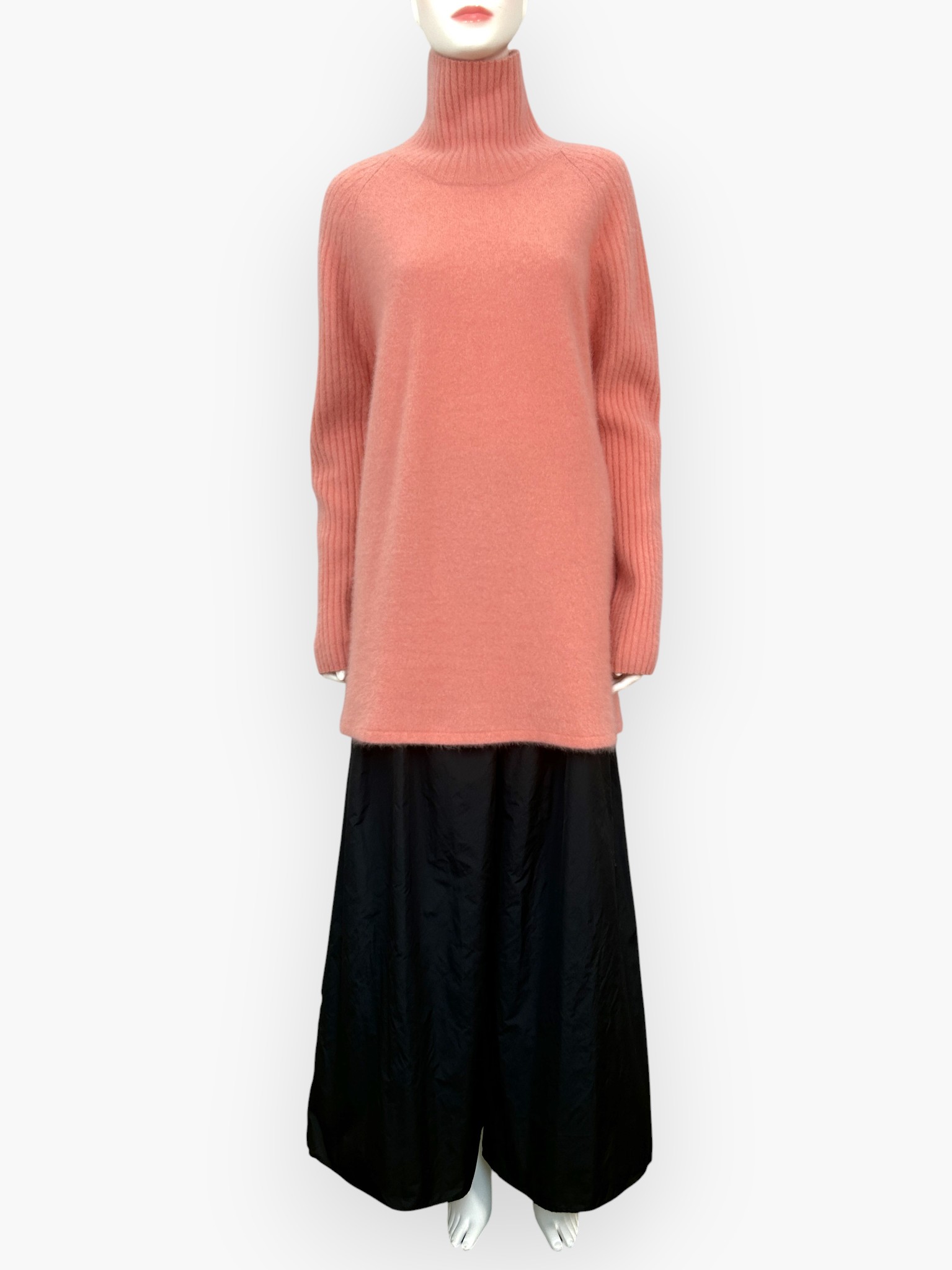 ラクーンを55%使用したふんわりと軽く、明るく澄んだ色のチュニックニット。