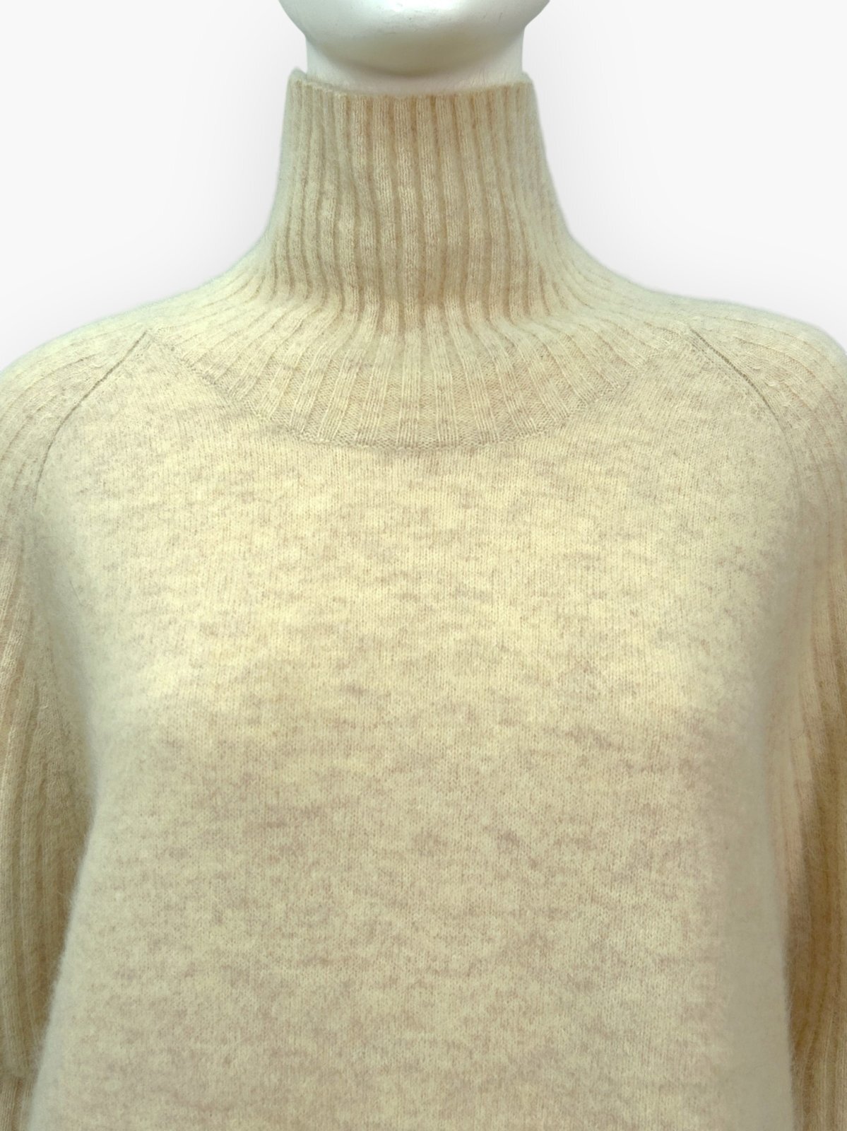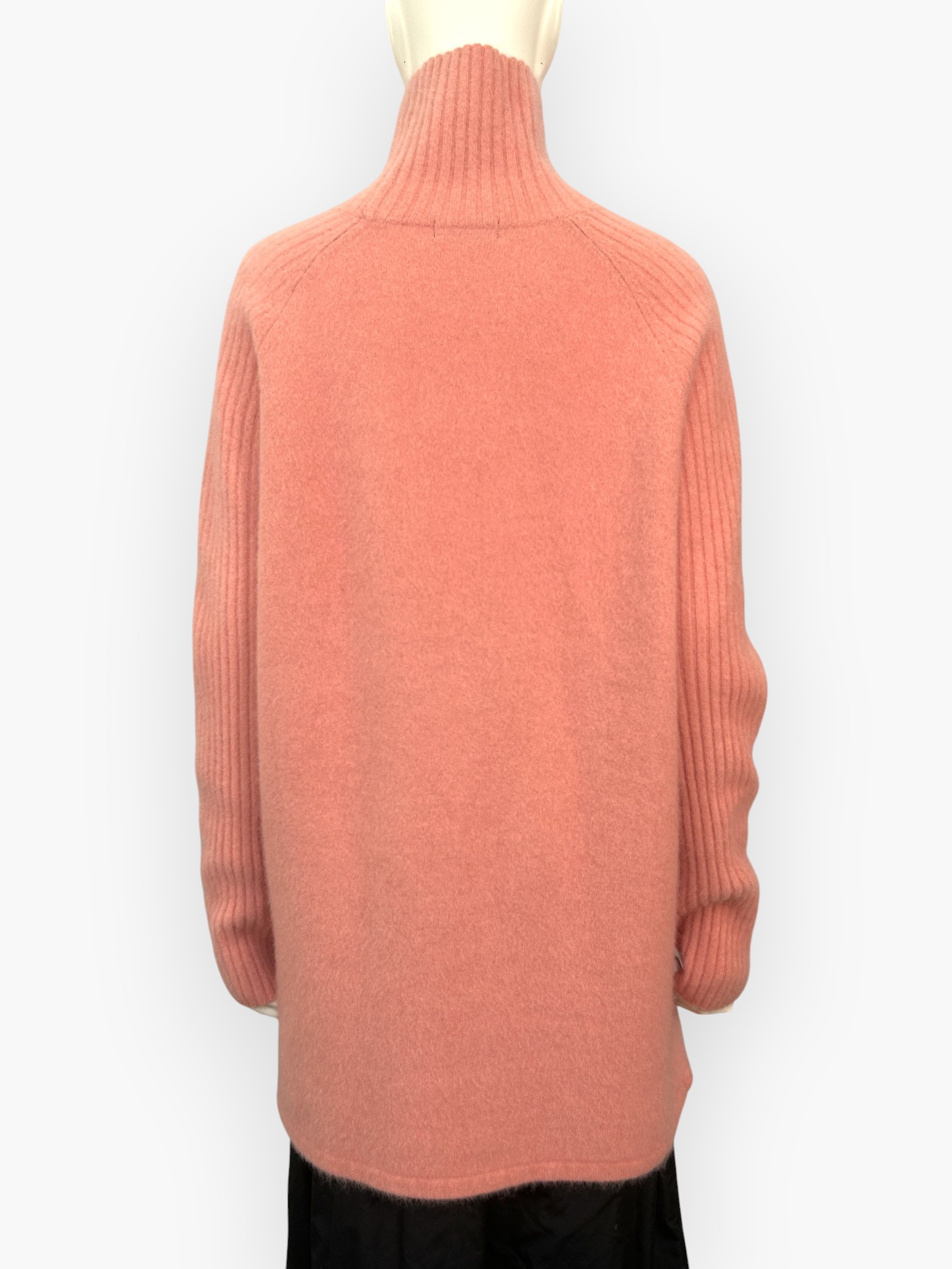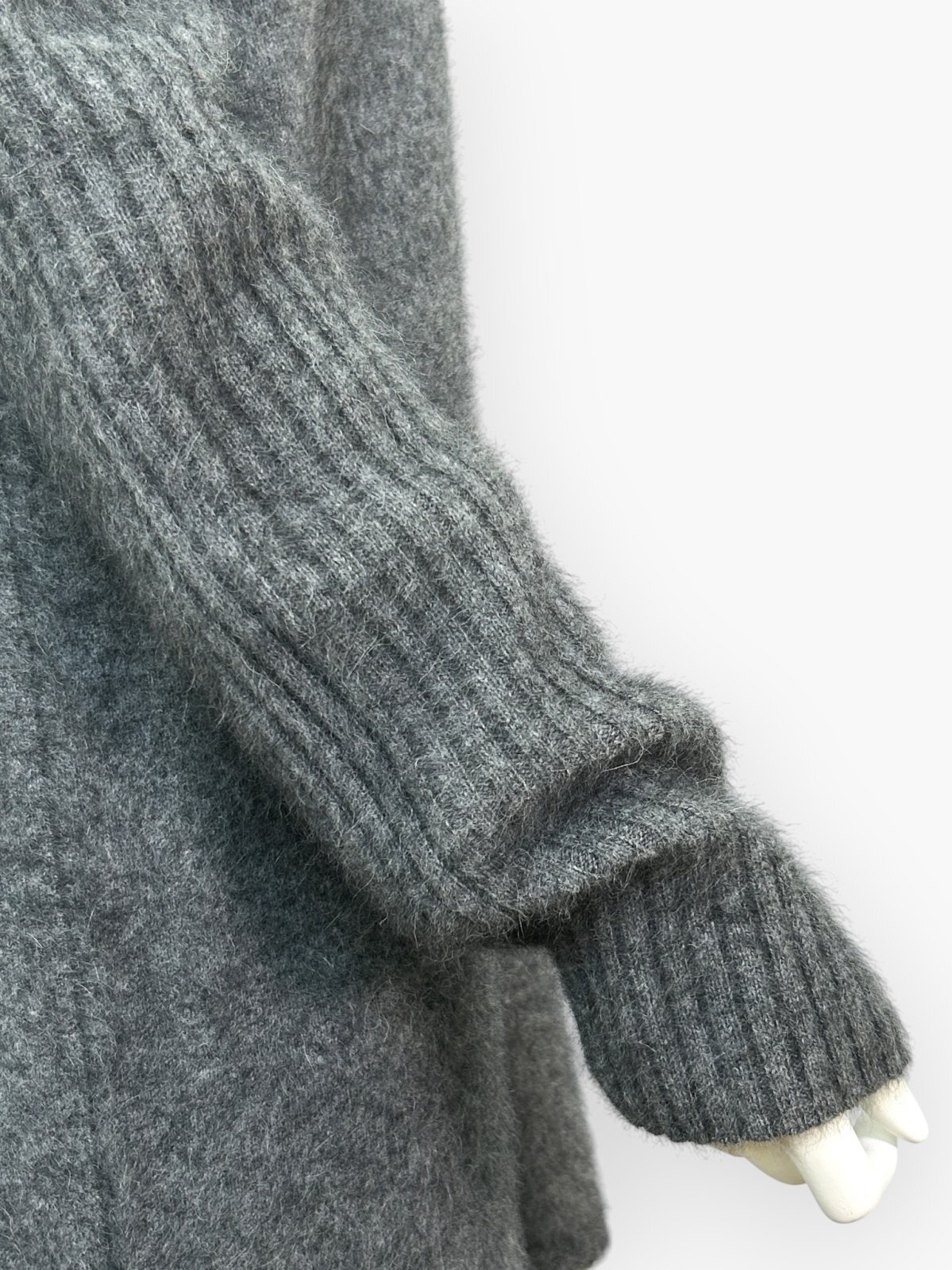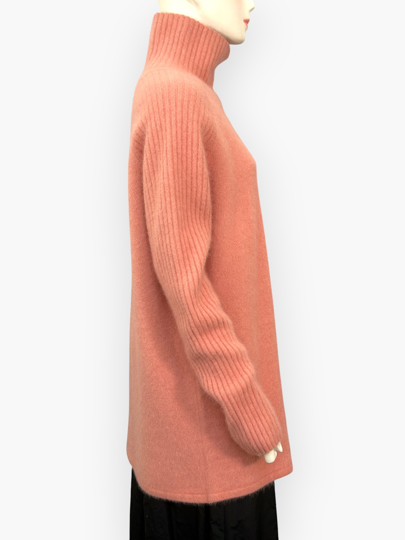 ラクーンを55%使用したふんわりと軽く、明るく澄んだ色のチュニックニット。
