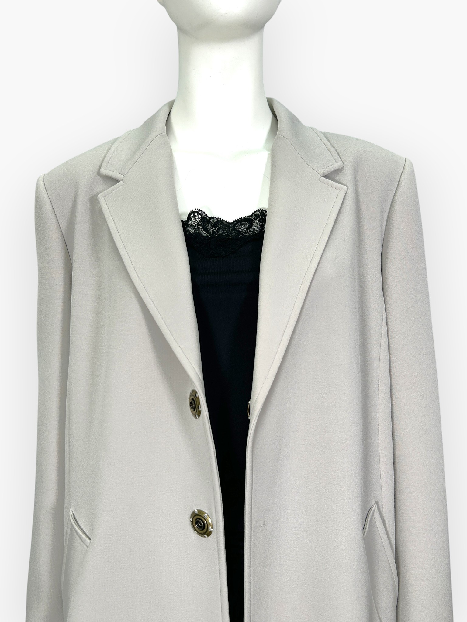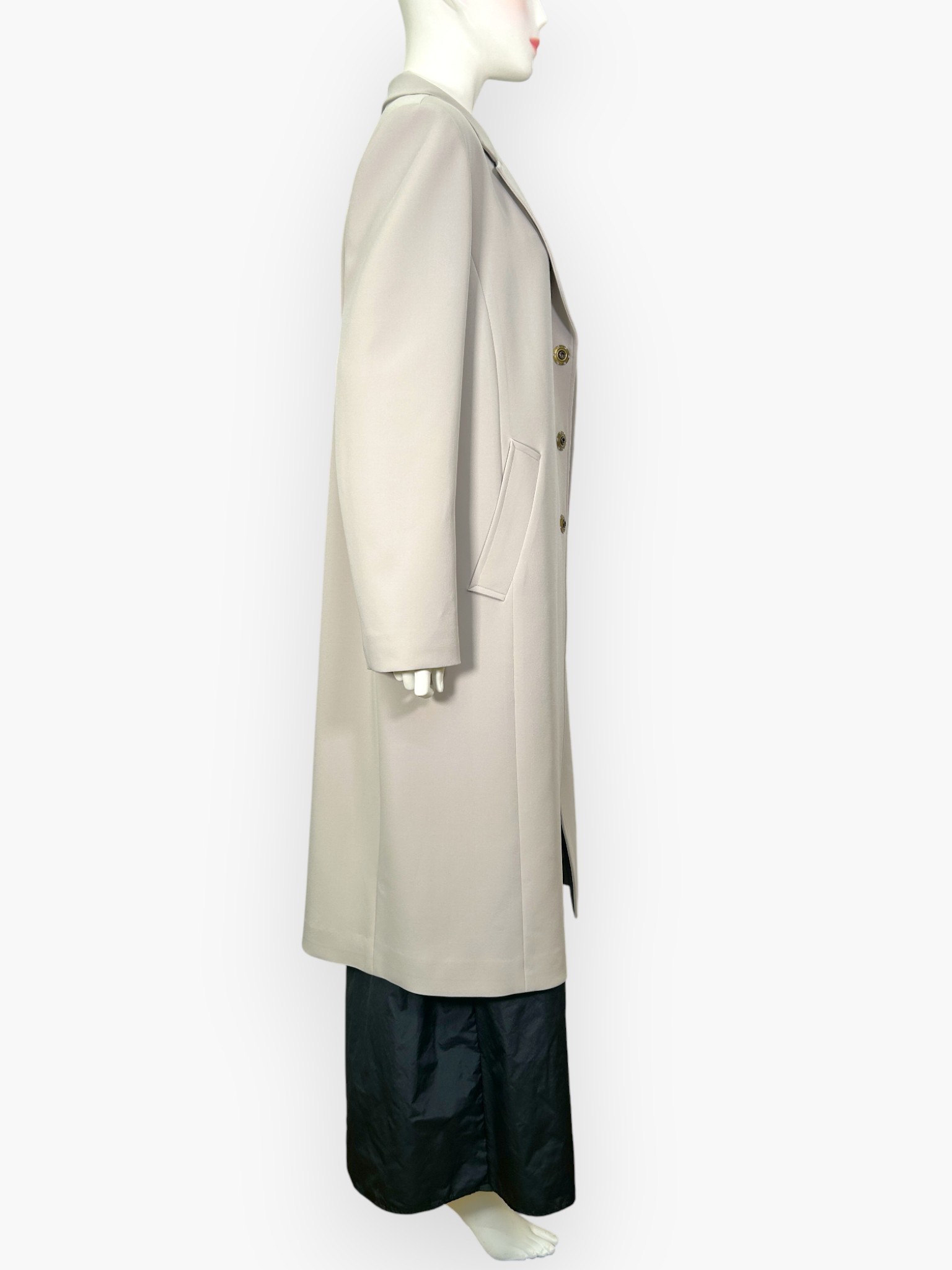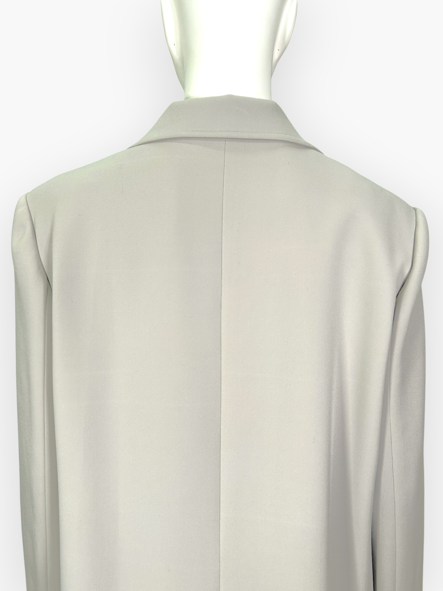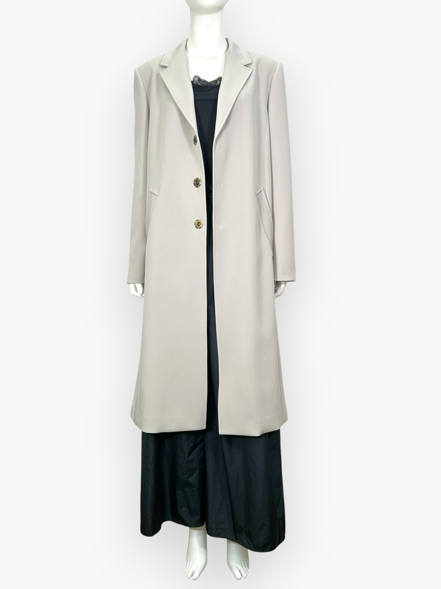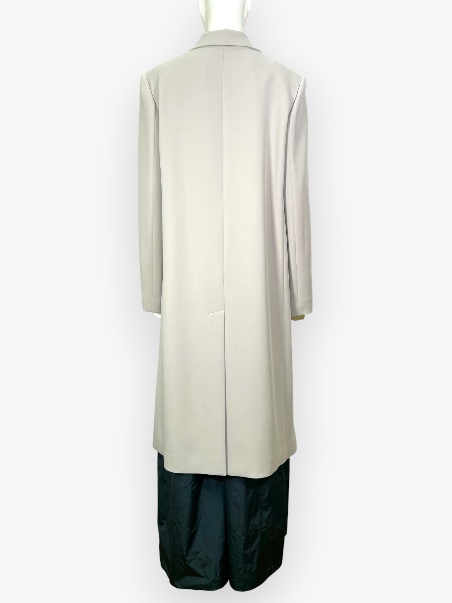 オケージョンよりもカジュアルに、普段着よりもきちんと見れるきれいなポリエステル素材を使用したロングジャケット。