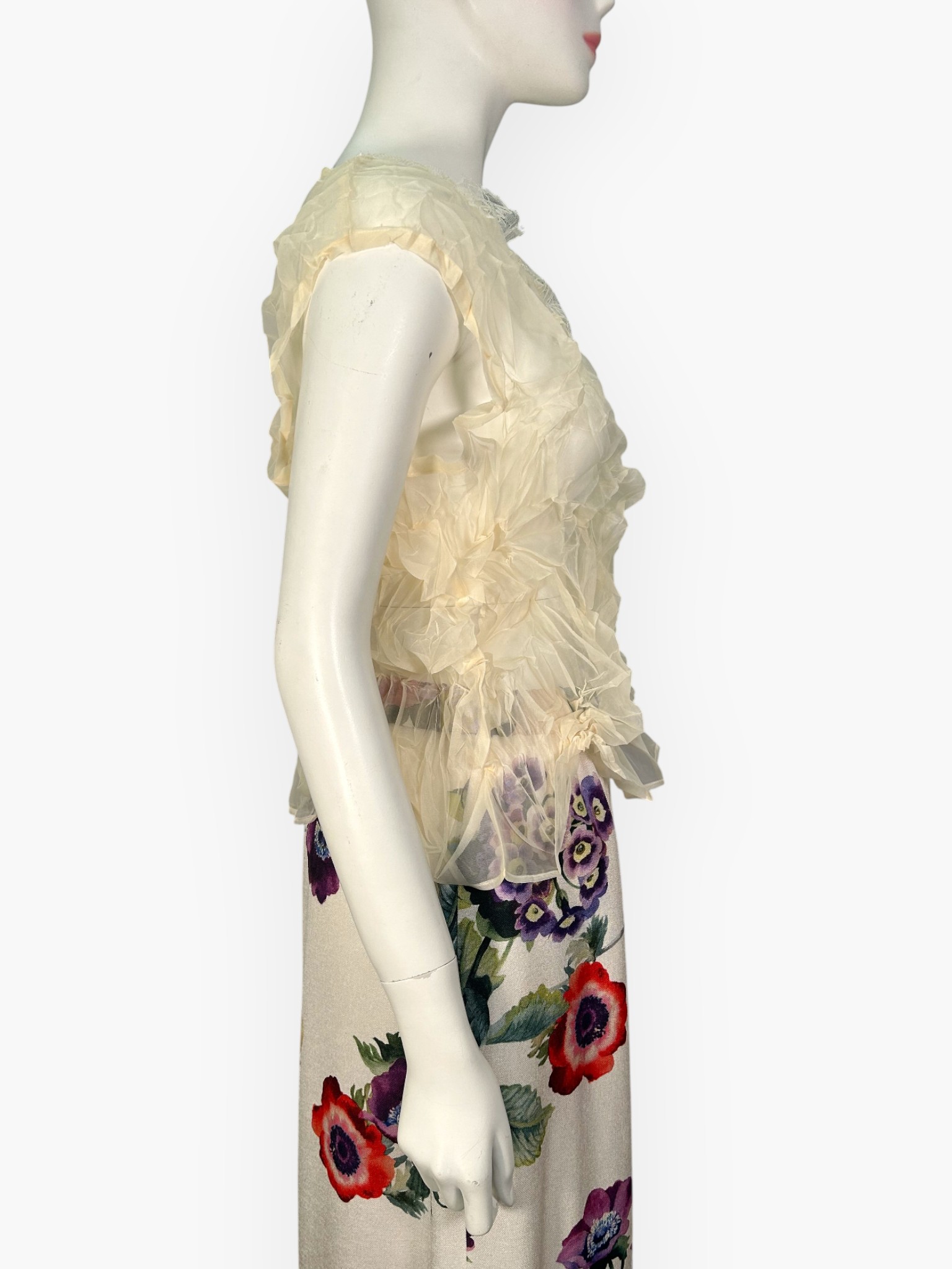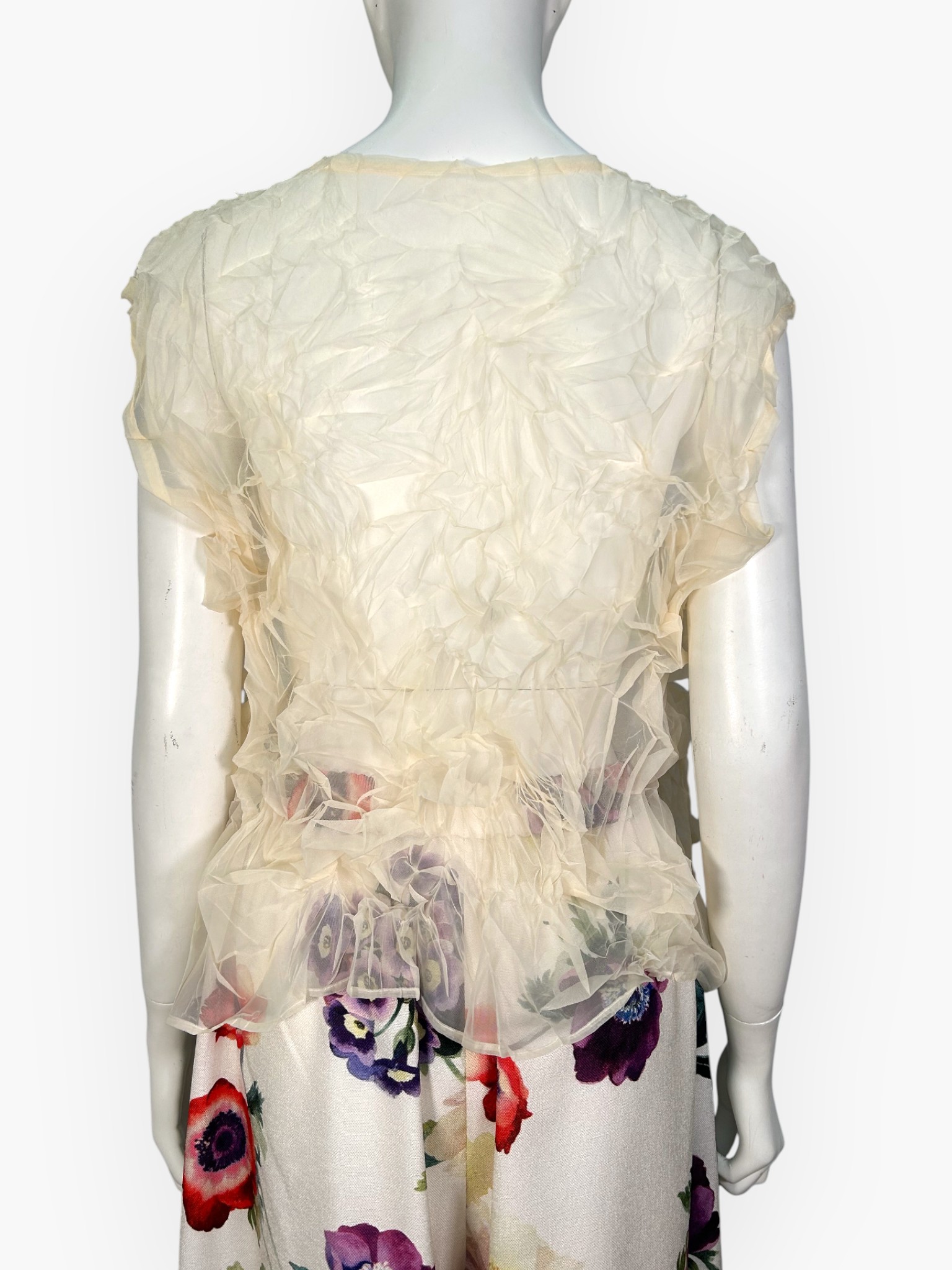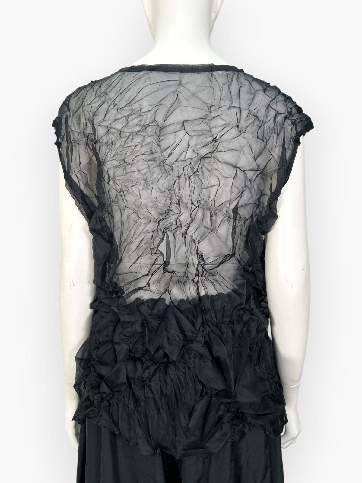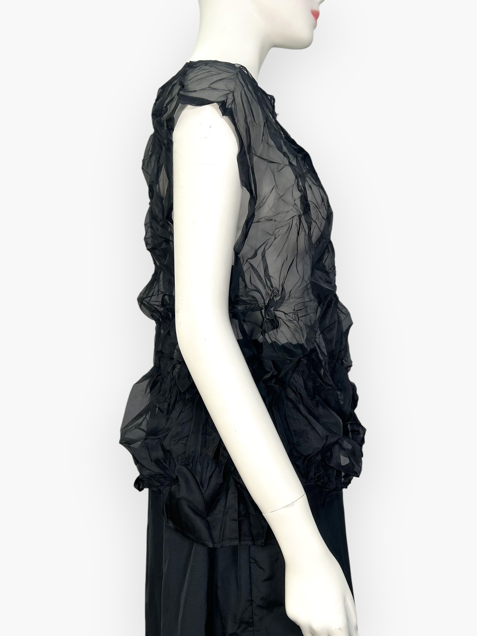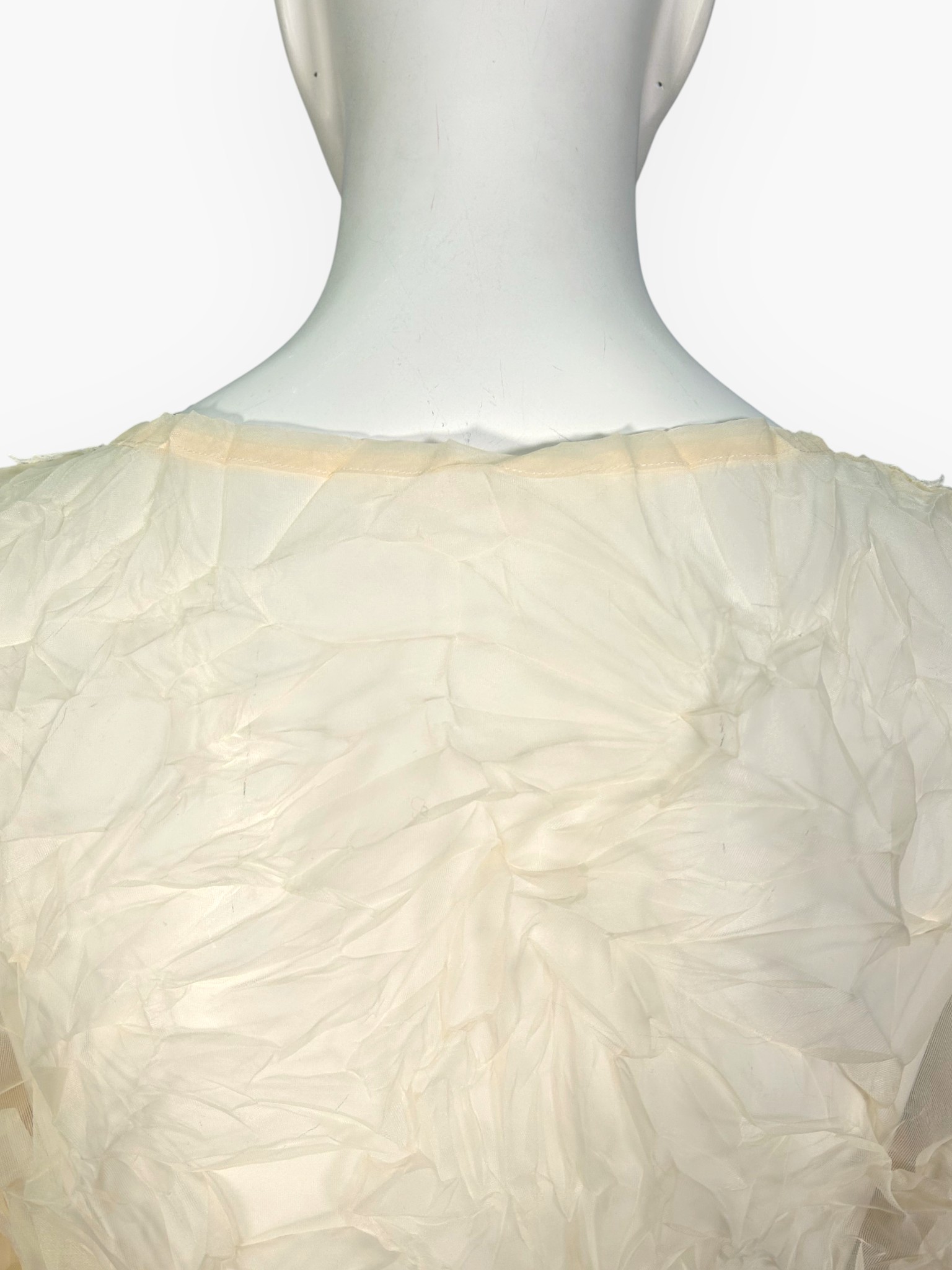 身頃全体に手縫いで細かく寄せたギャザーをそのままプリーツ加工。