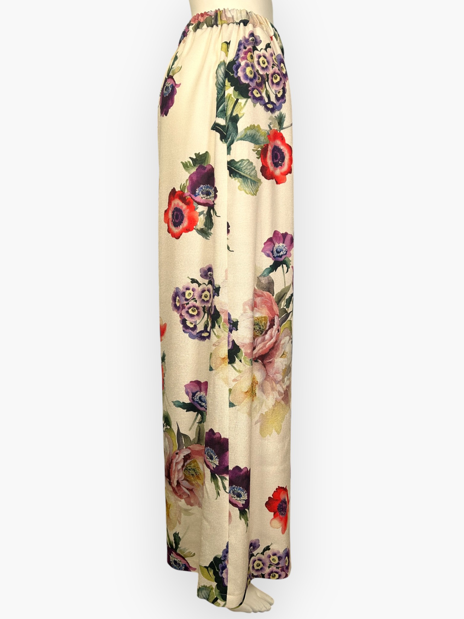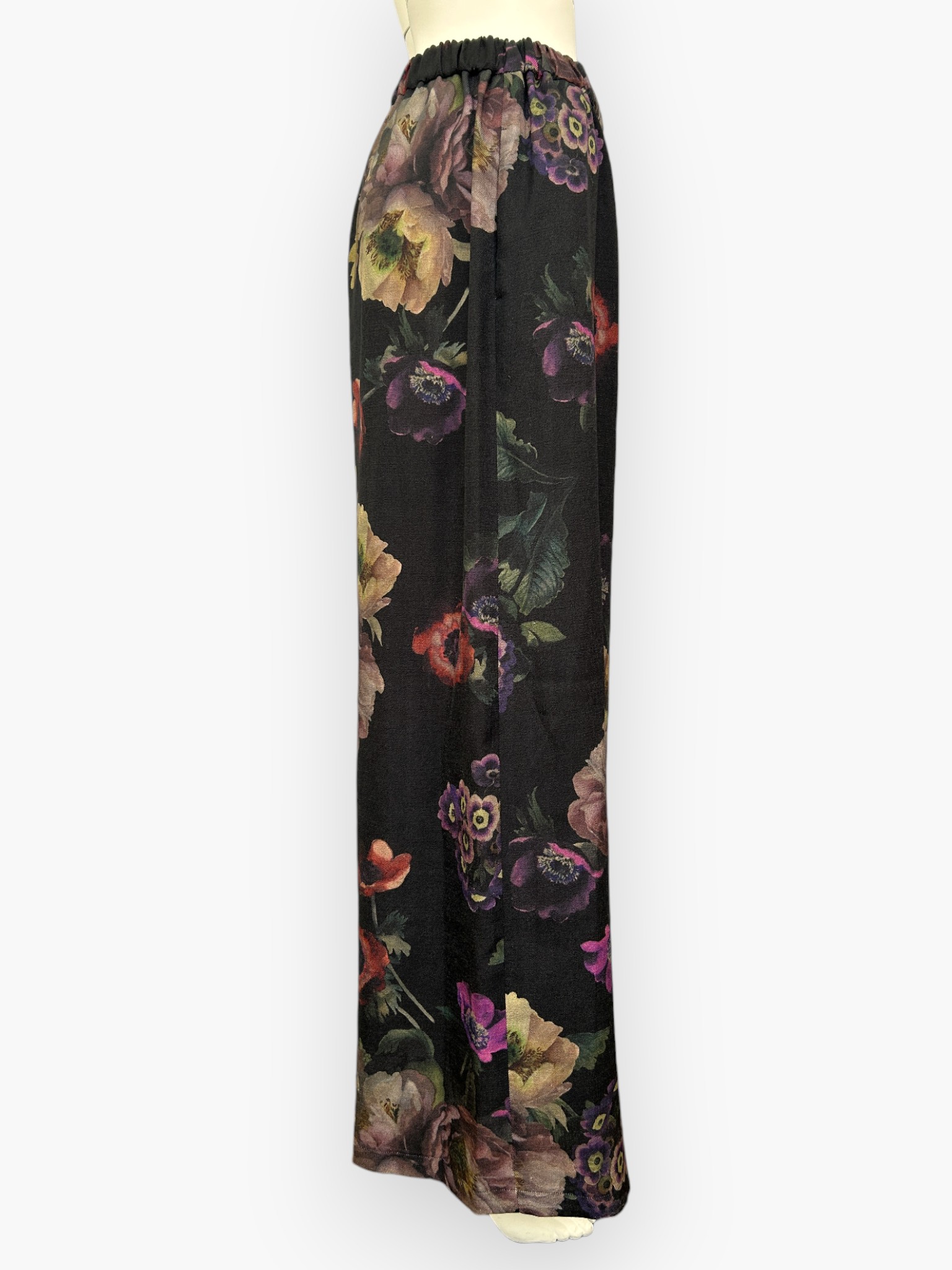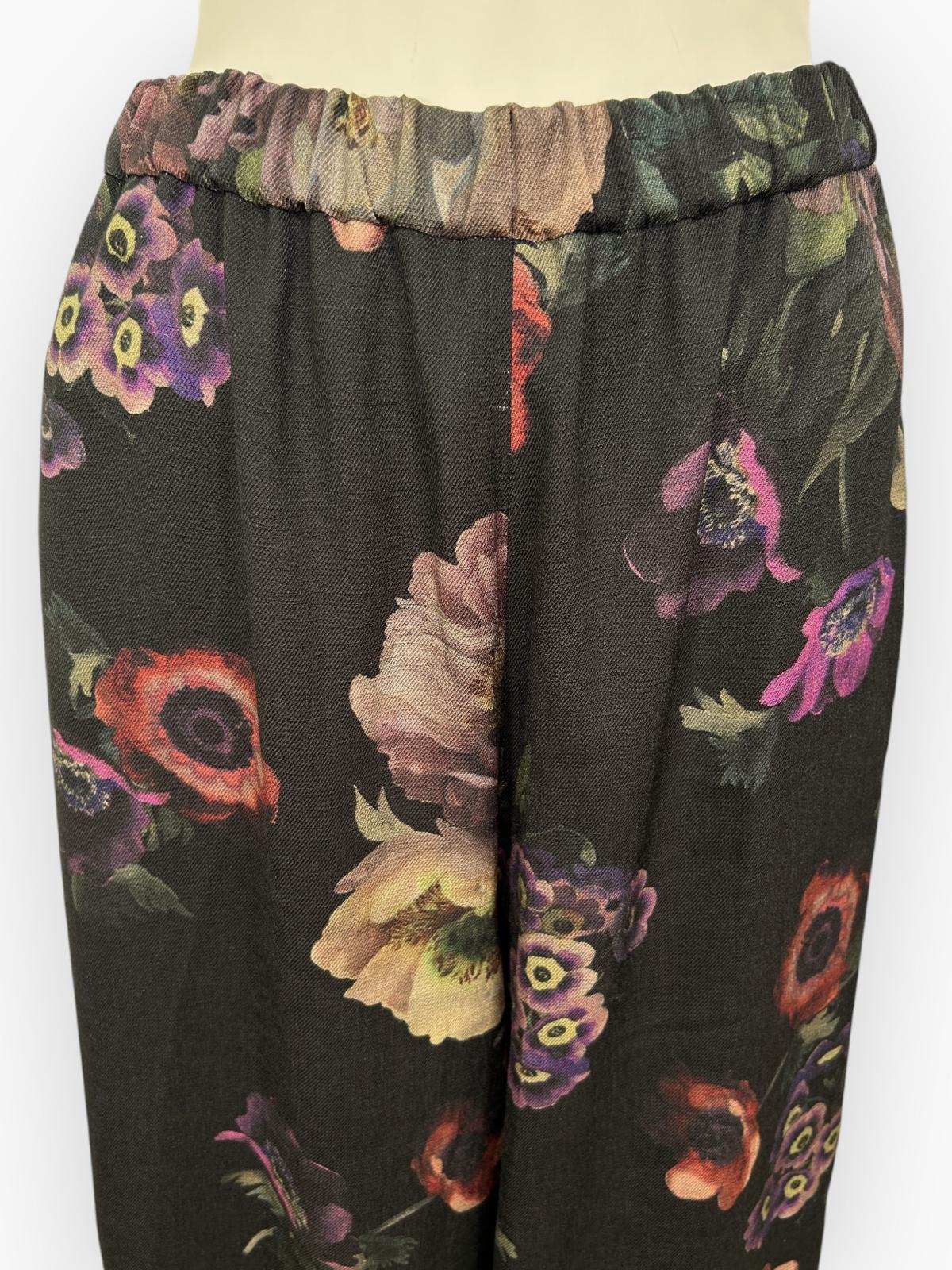 奥行きのある花にこだわり、華やかで大人な印象を与えてくれるワイドパンツ。