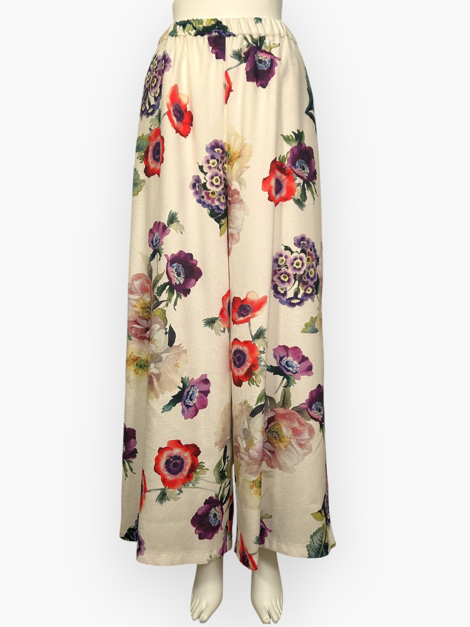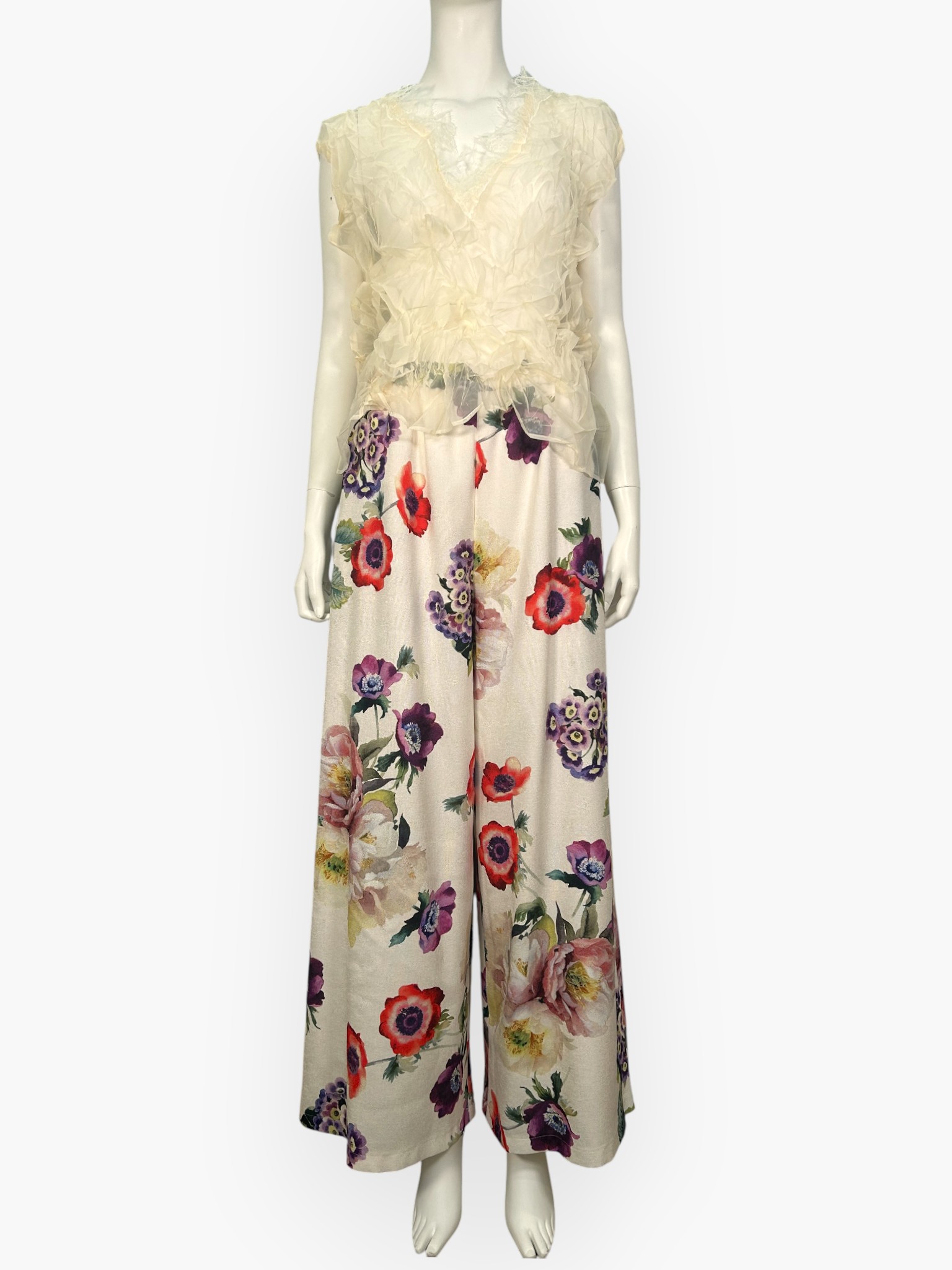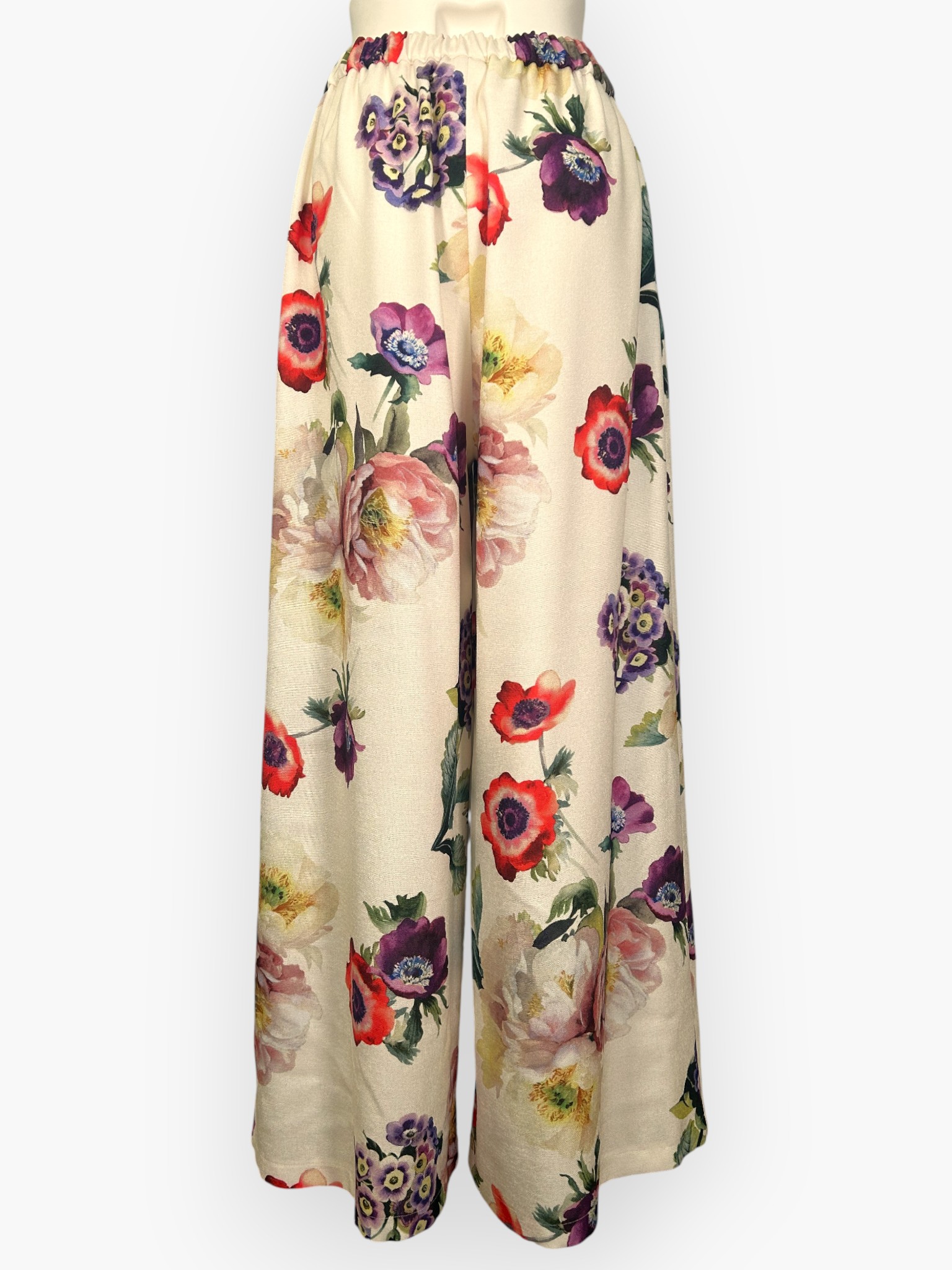 奥行きのある花にこだわり、華やかで大人な印象を与えてくれるワイドパンツ。
