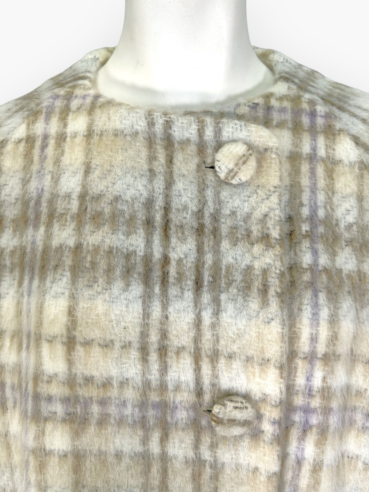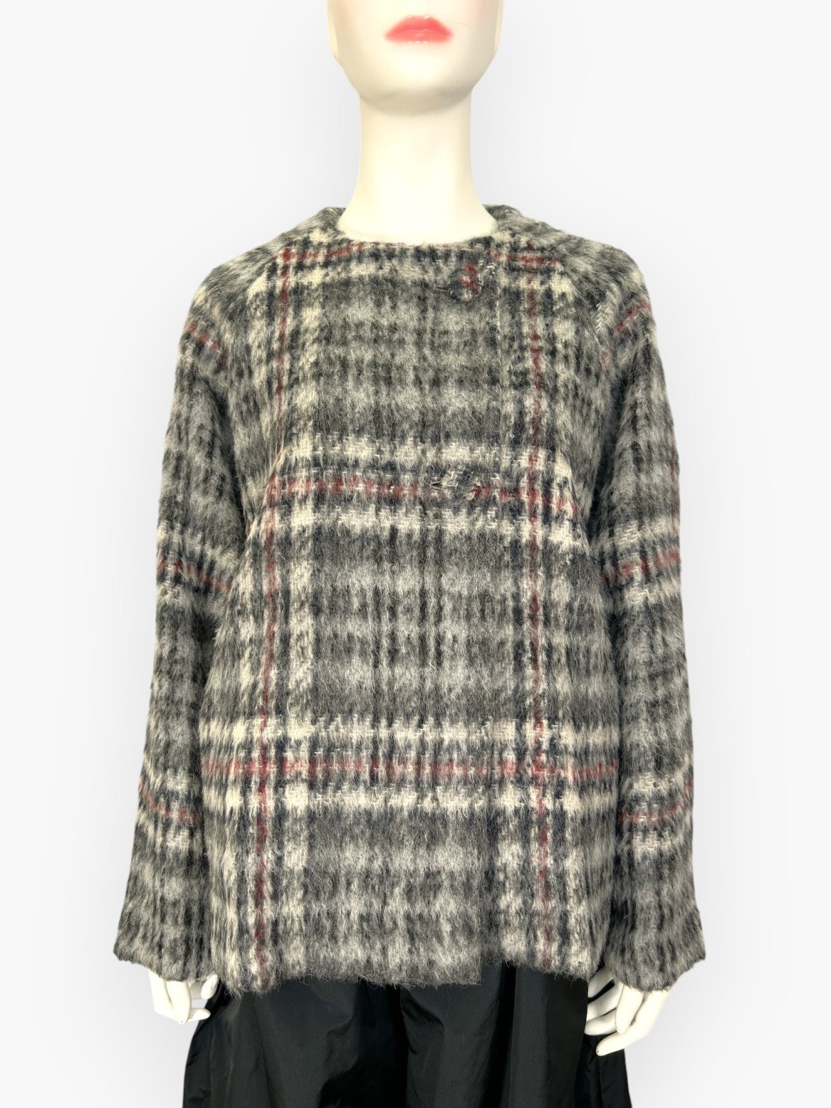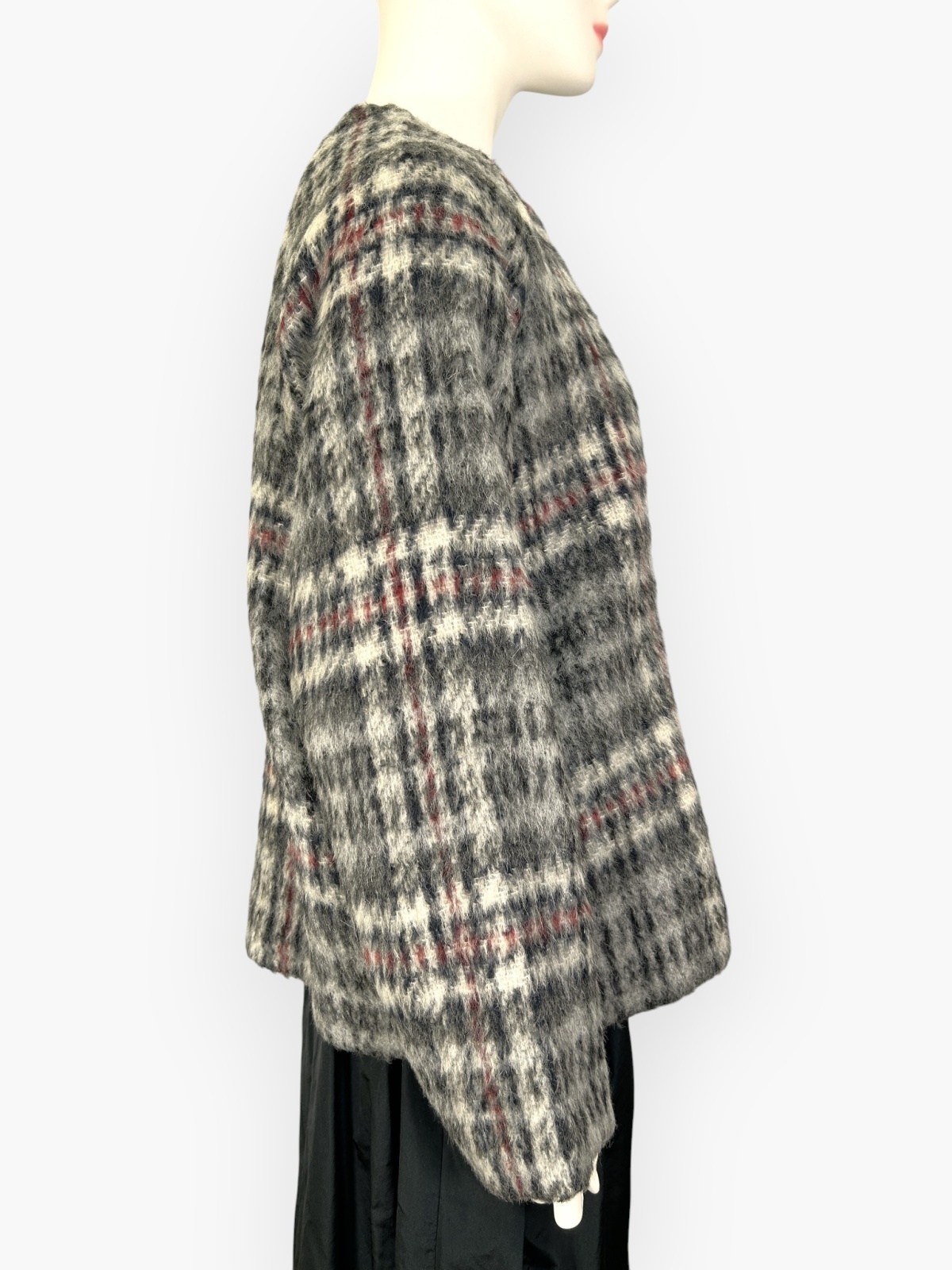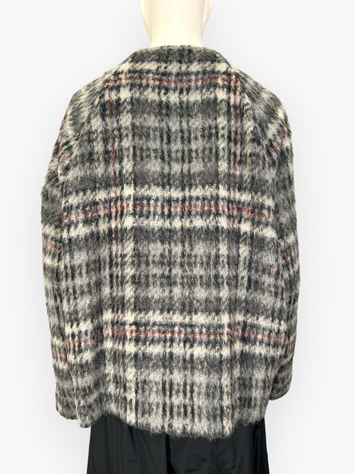 毛足が長く立体感ある素材を使用したチェック柄コート。