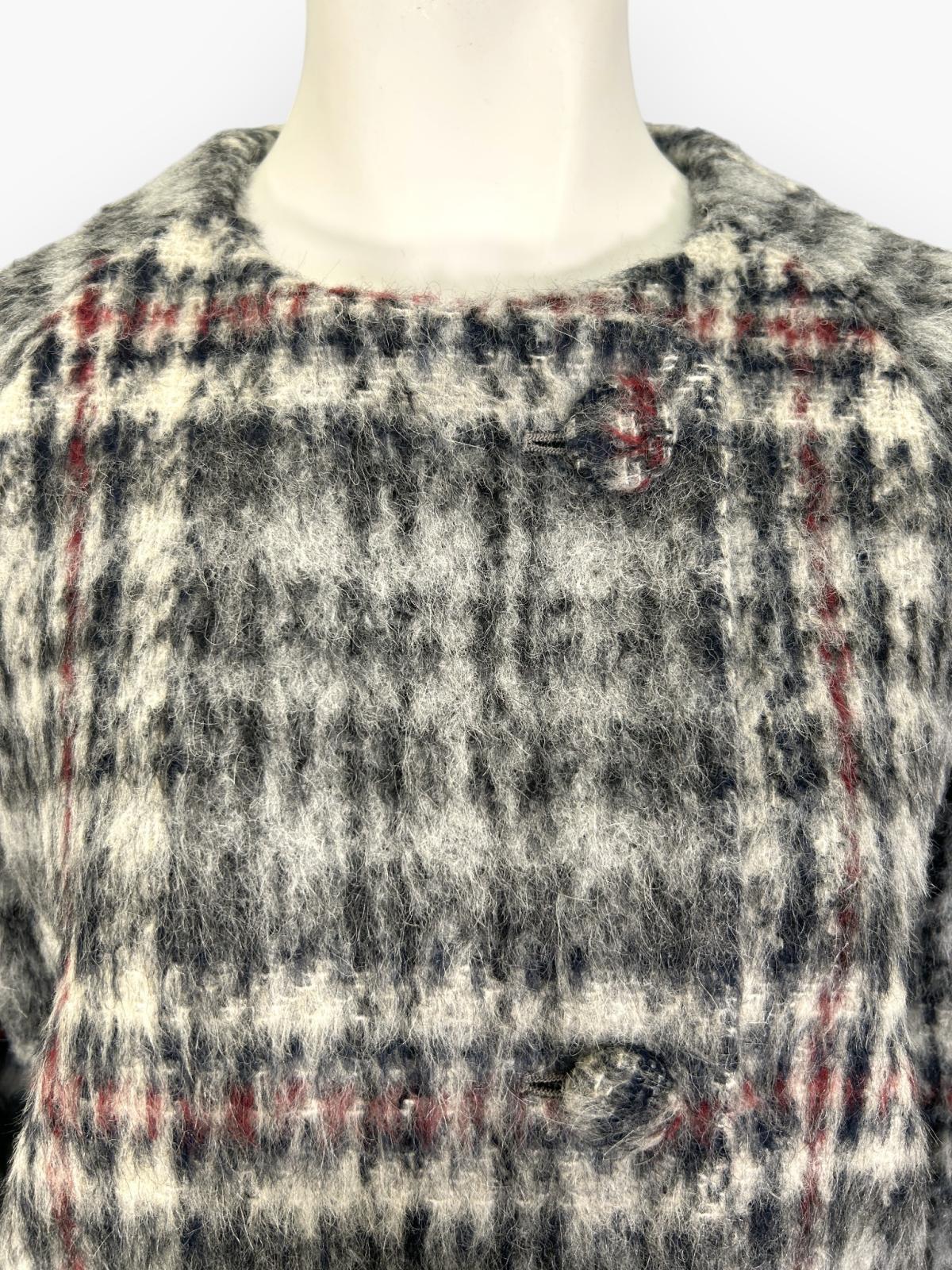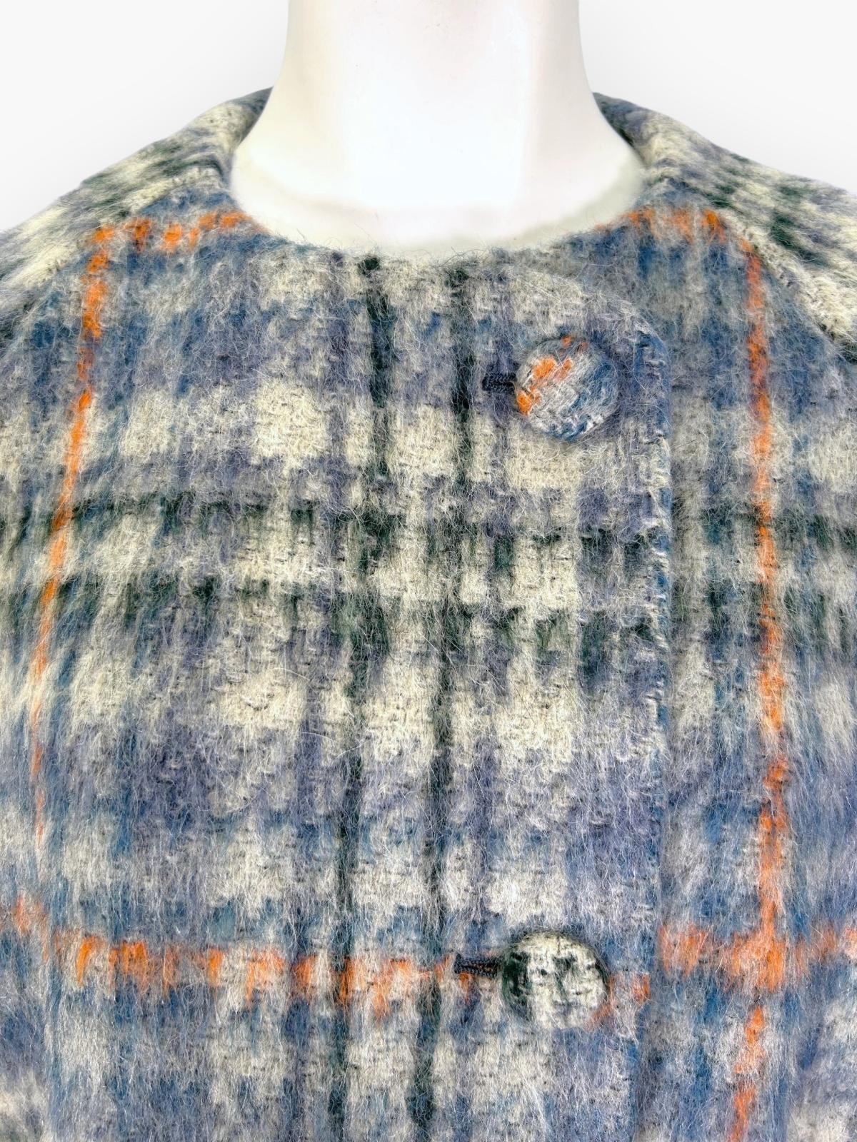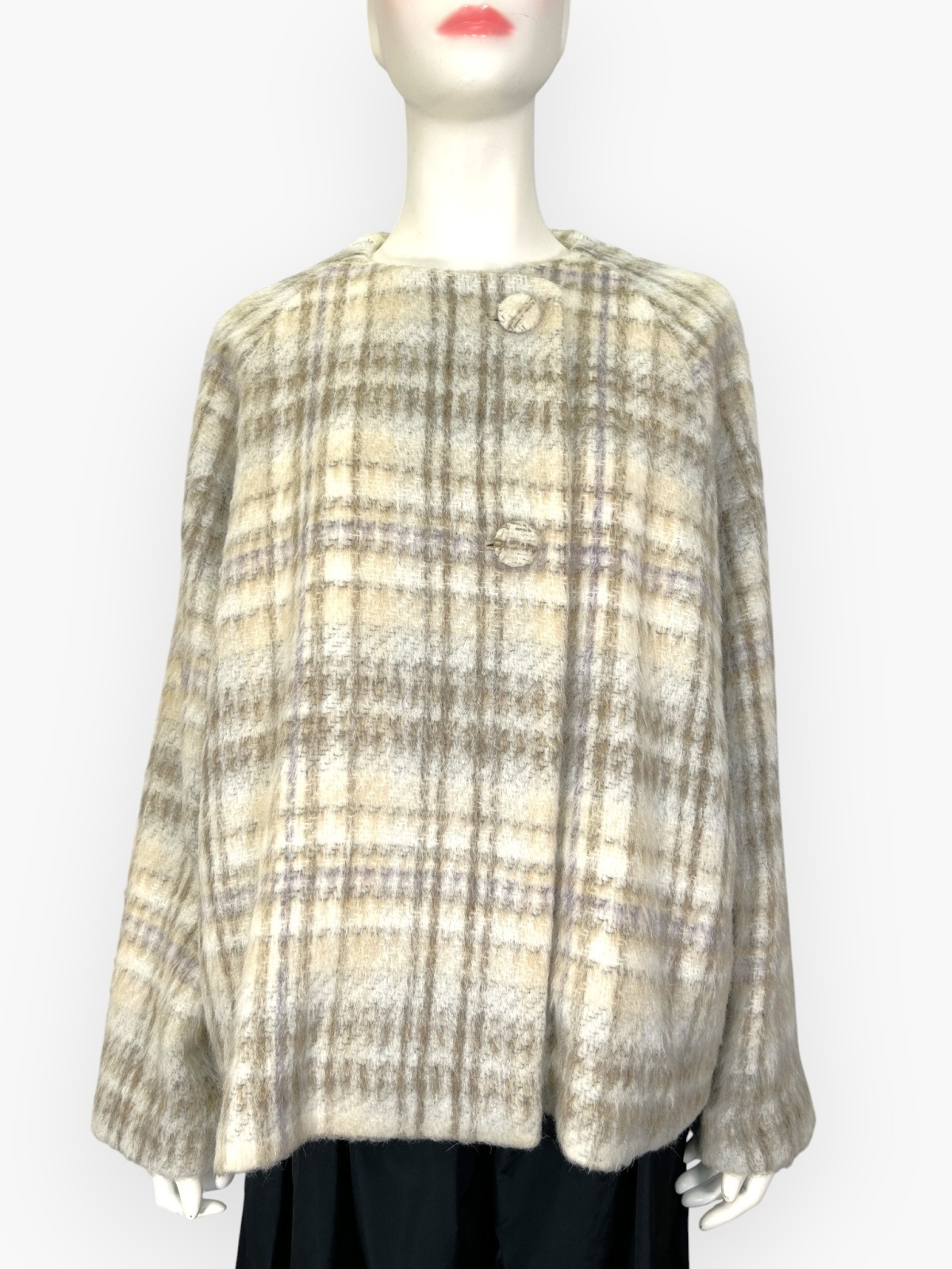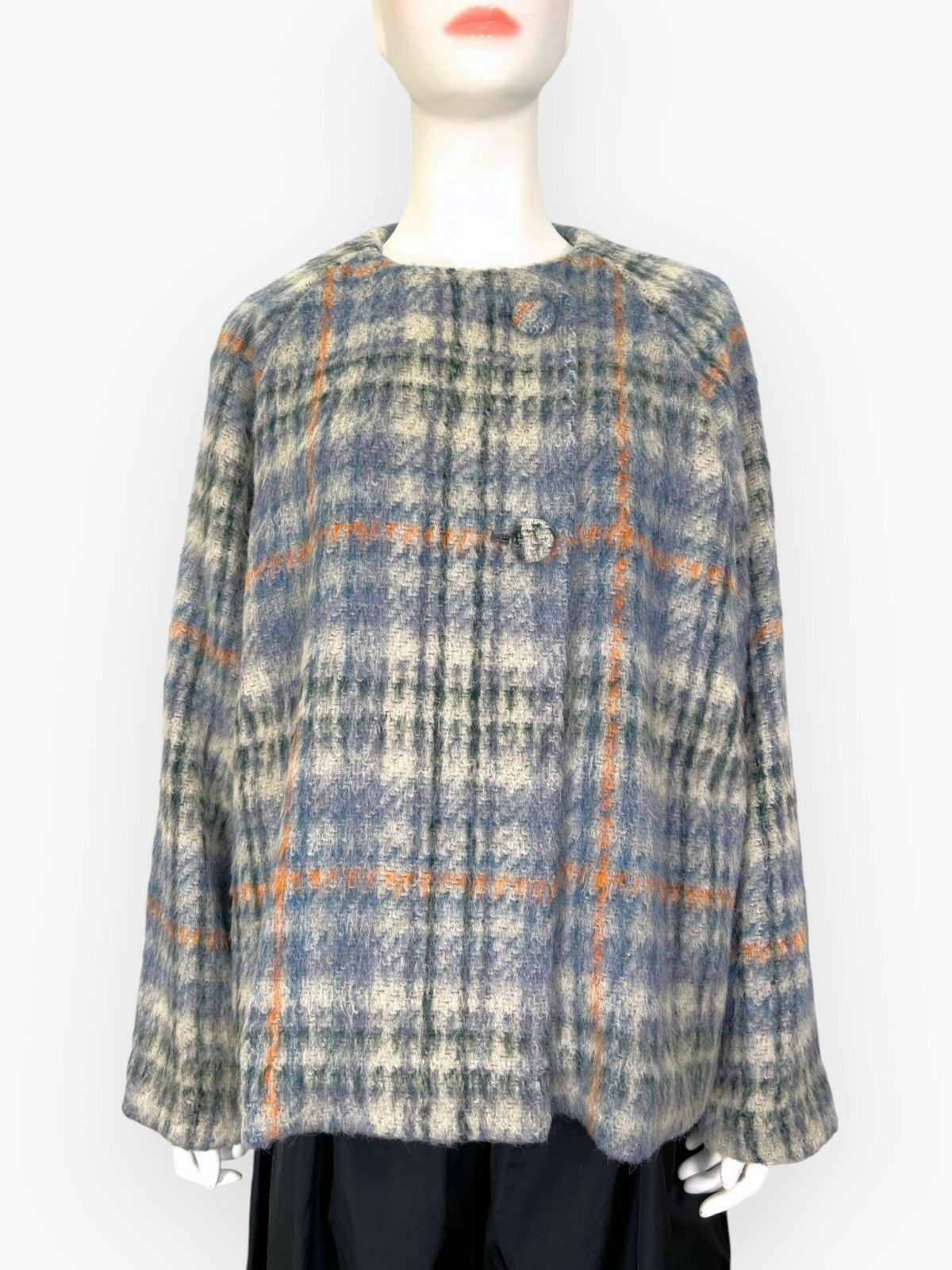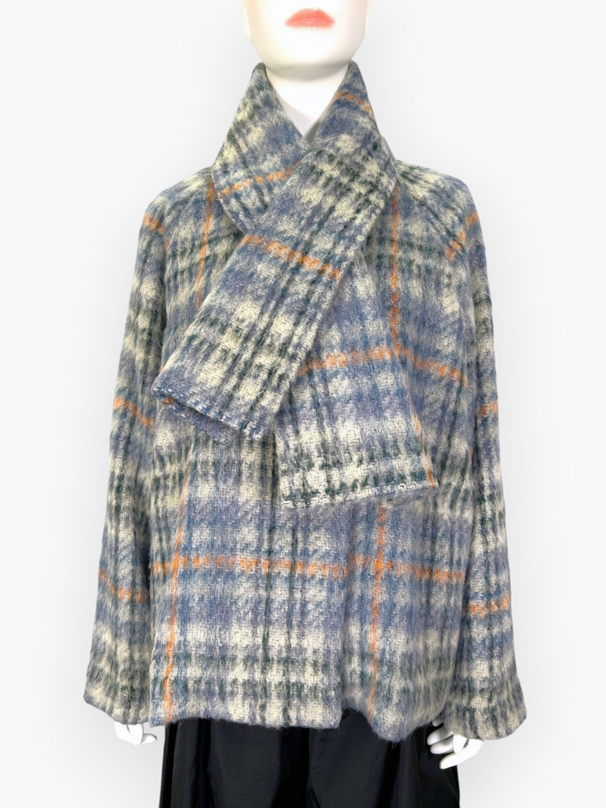 毛足が長く立体感ある素材を使用したチェック柄コート。