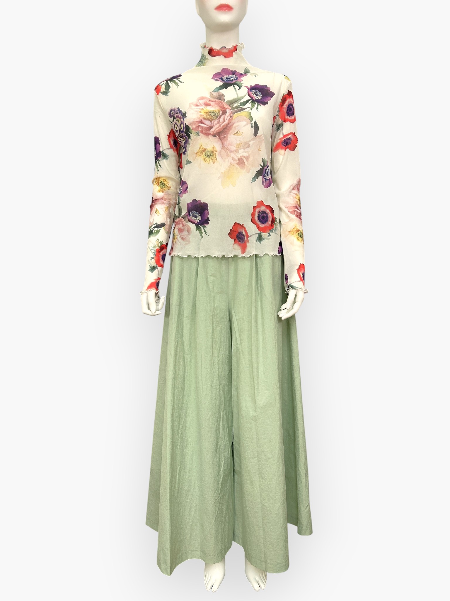 ハリがあるエアリーな素材は脚のラインを拾わないゆとりのあるシルエットが魅力的です。