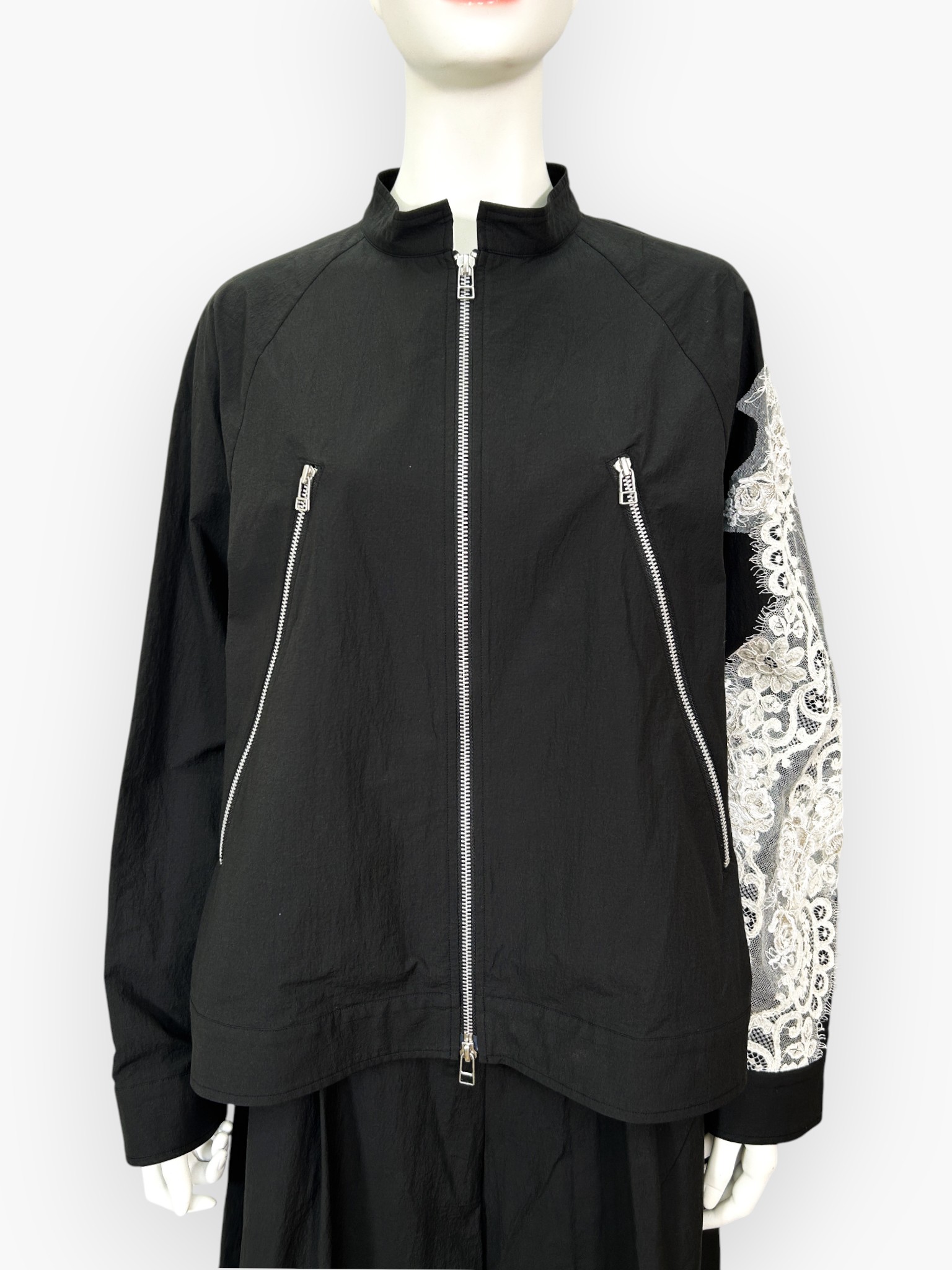 丁寧にあしらわれたレースが目を引くドライタフタジャケット。