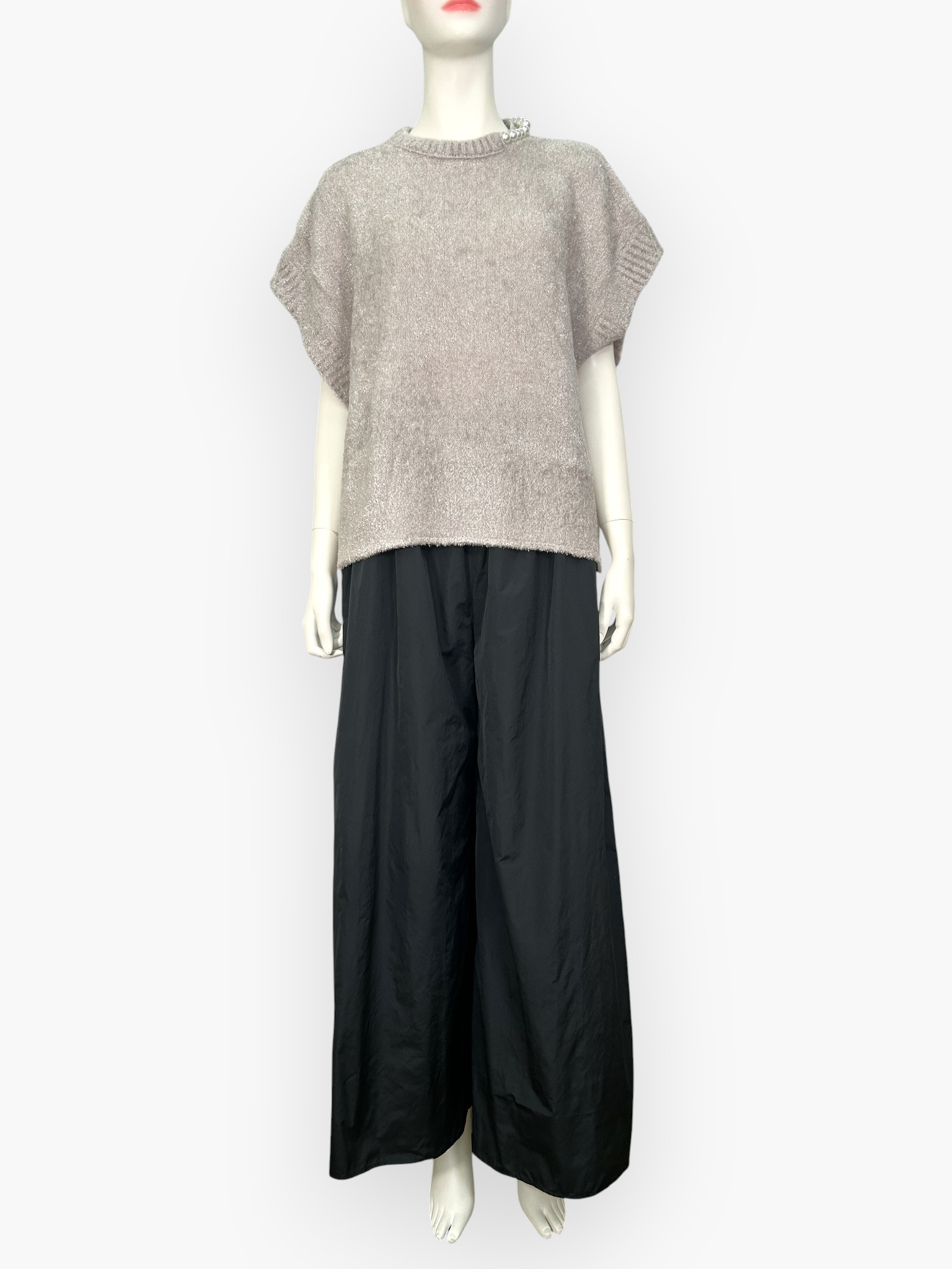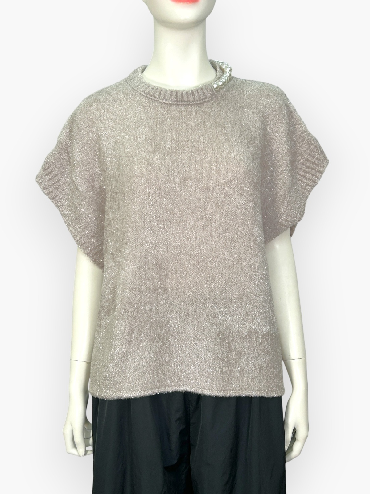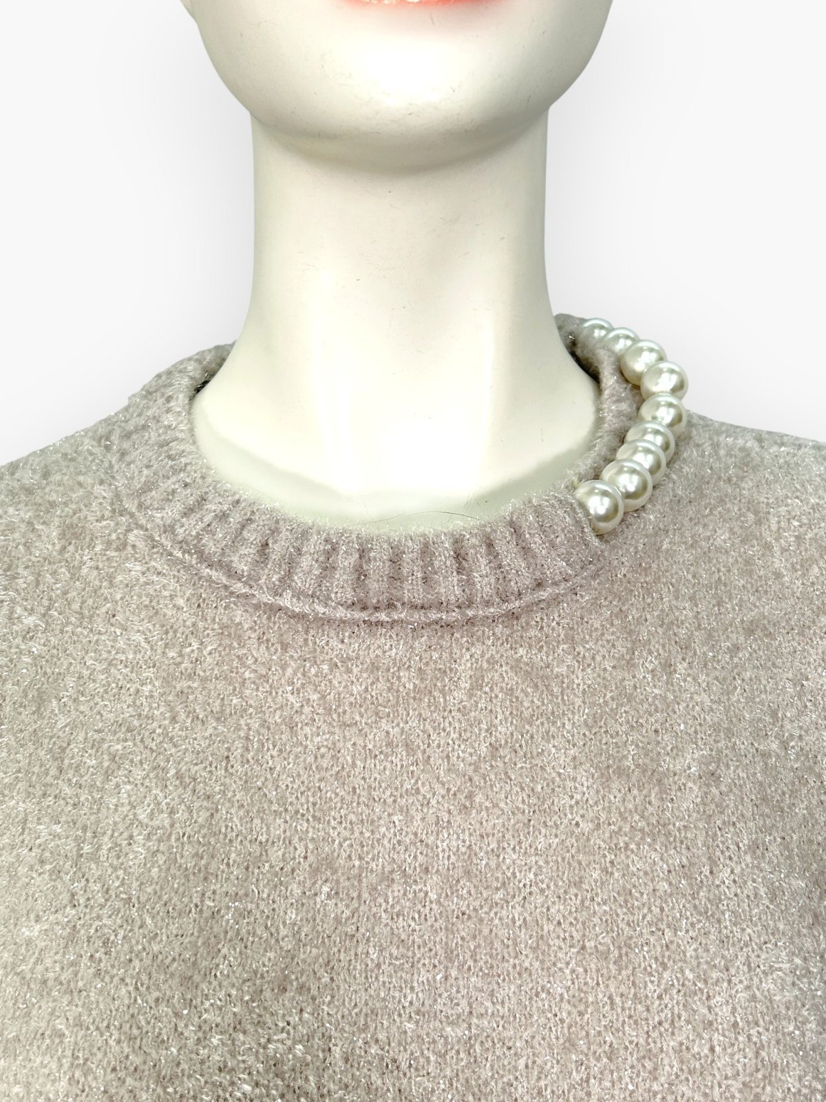表情感のあるふんわりとした素材と首元のパールが大人の上品さを演出してくれます。