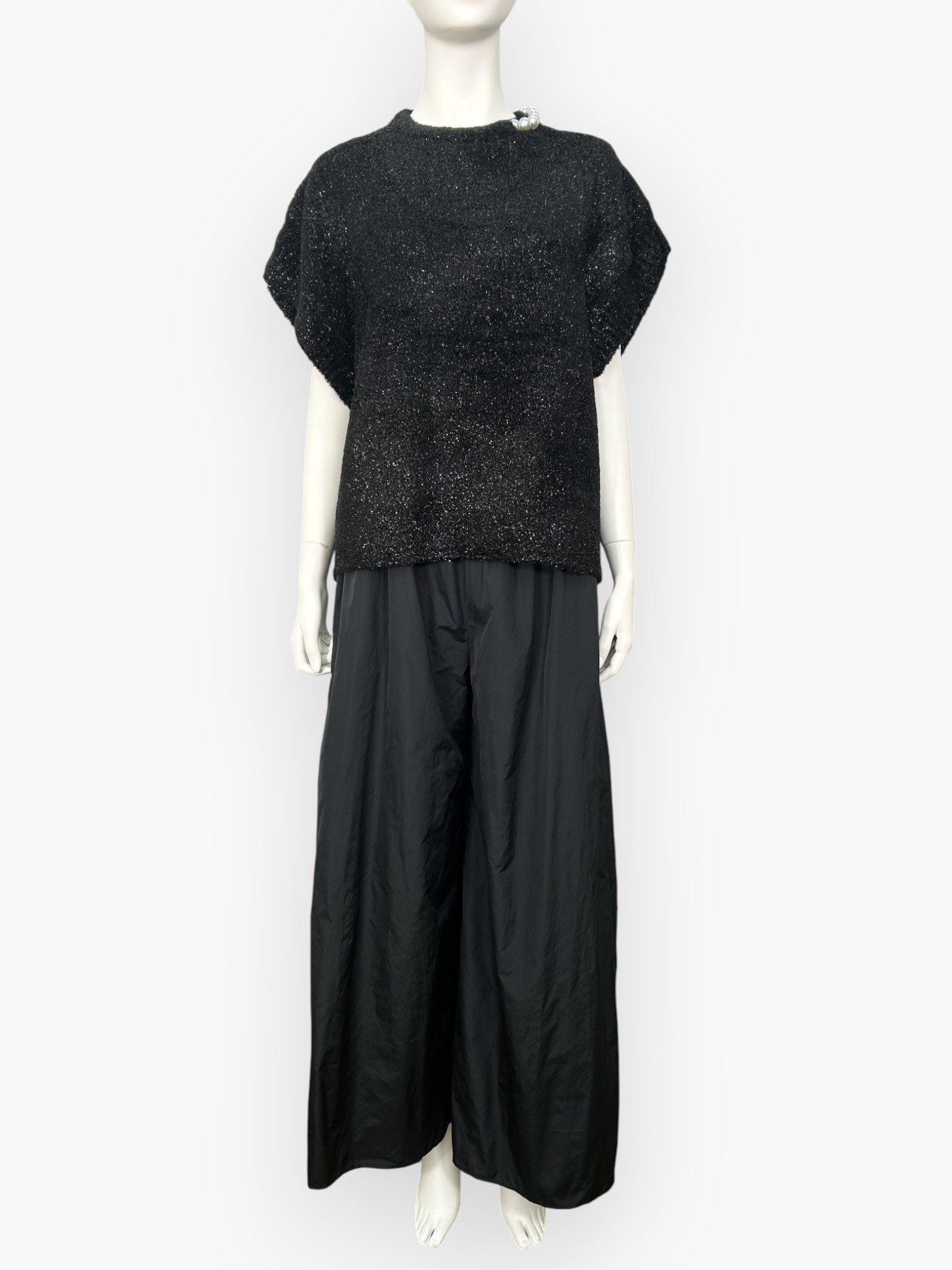 きらきらと煌めく糸を贅沢に使用し編み上げたプルオーバーニット。