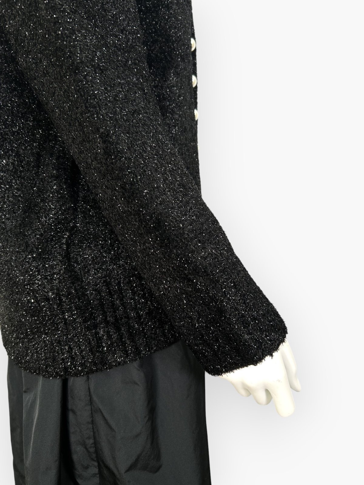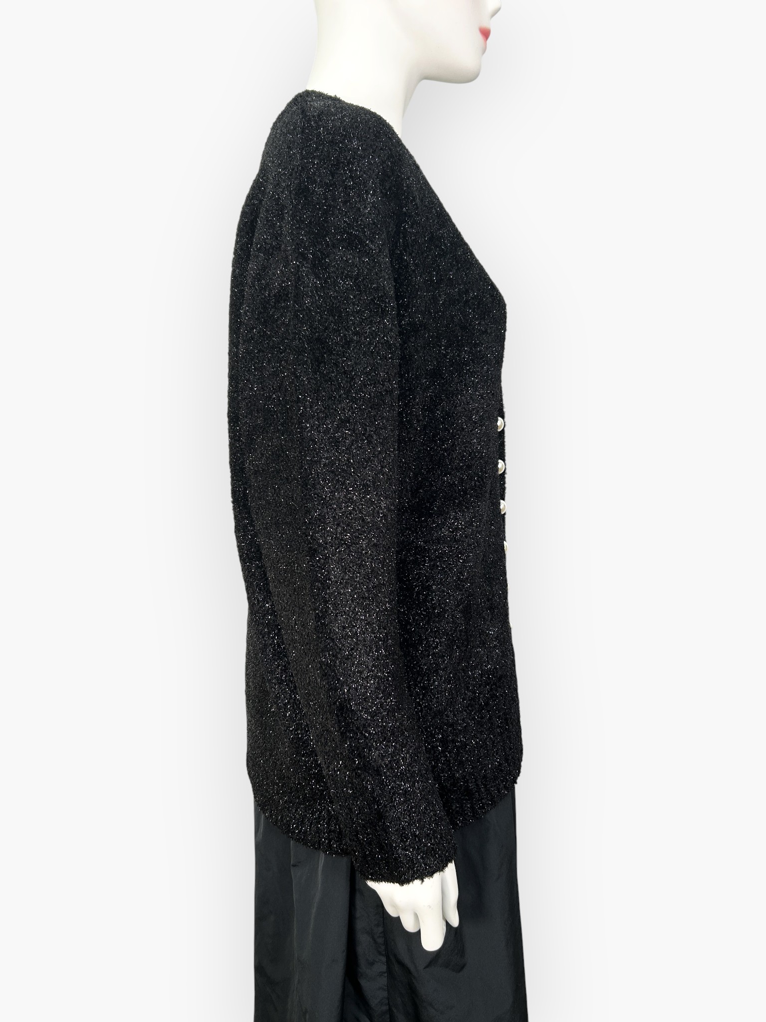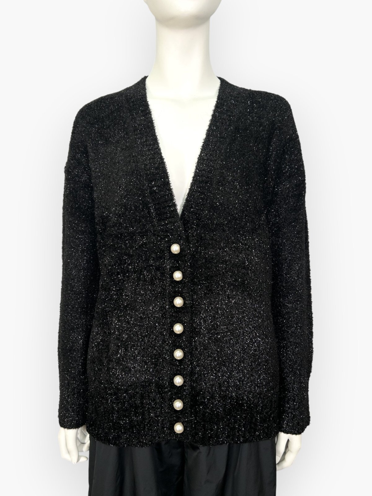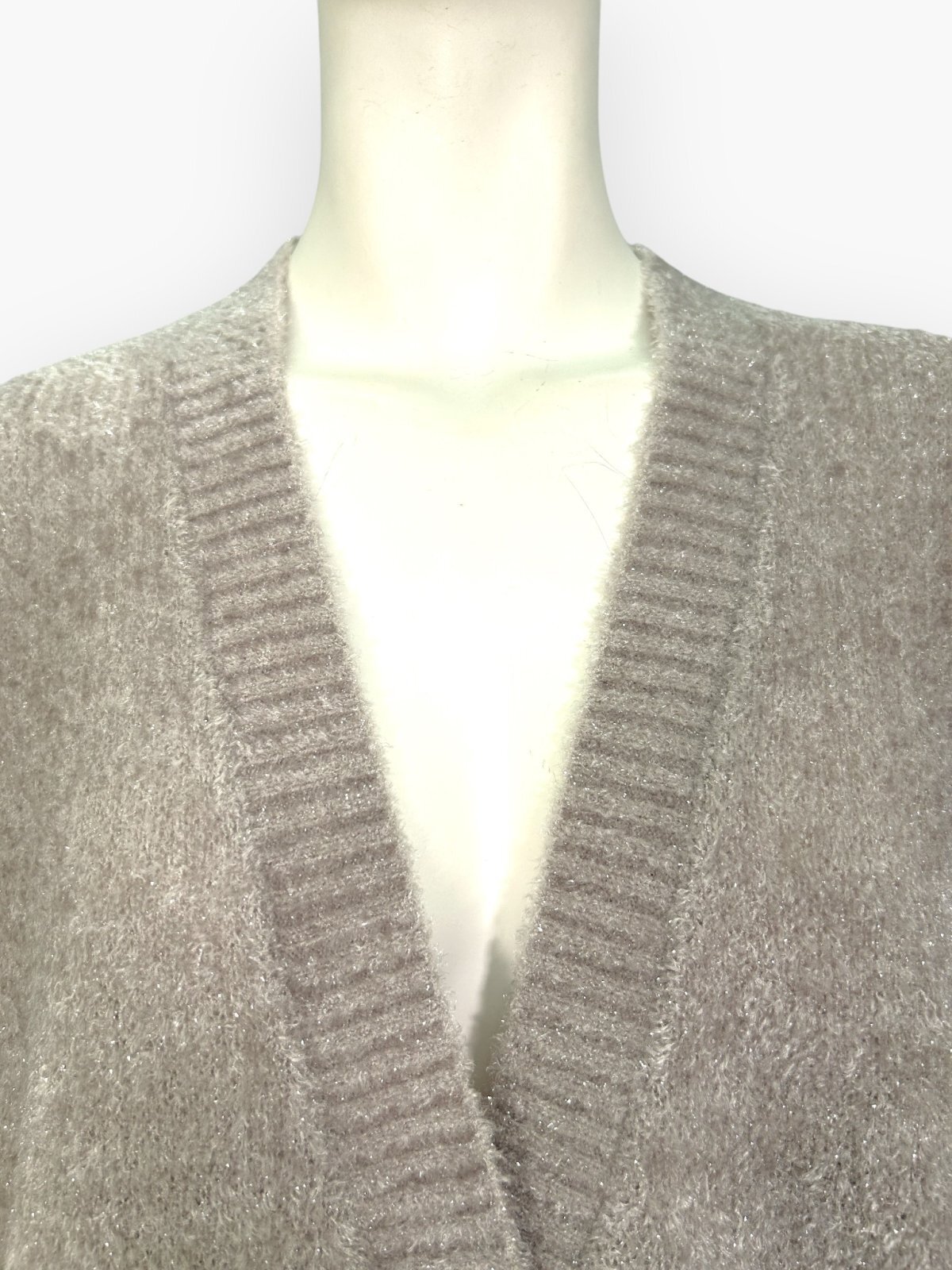 きらきらと煌めく糸を贅沢に使用し編み上げたニットカーディガン。