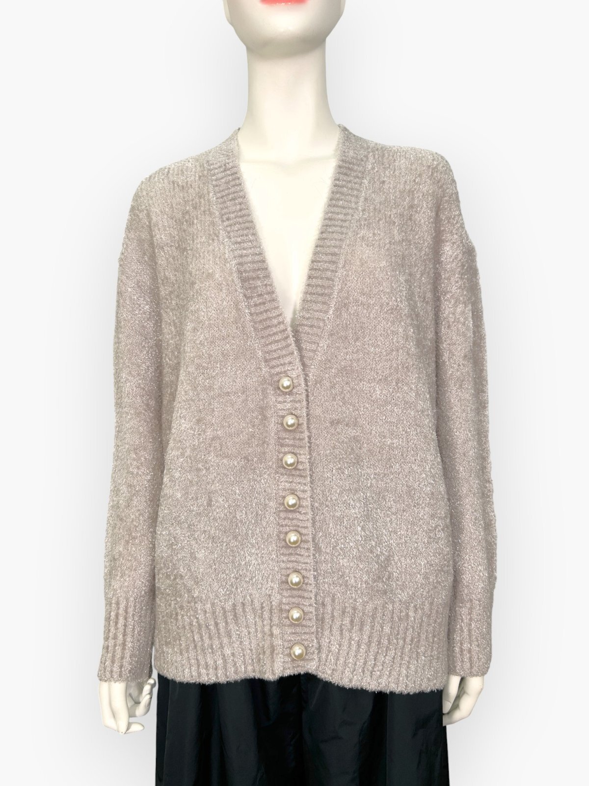表情感のあるふんわりとした素材とパールボタンが大人の上品さを演出してくれます。