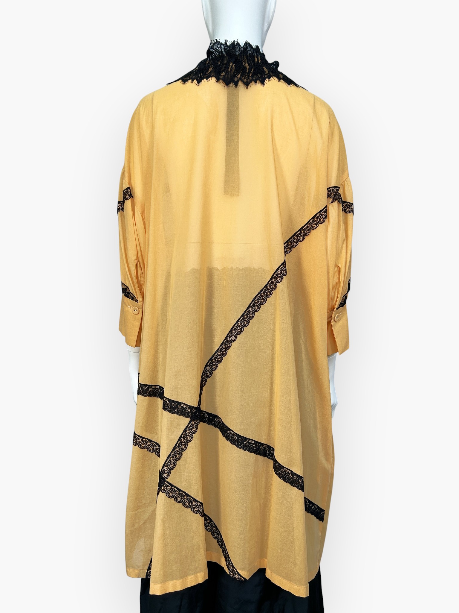 綿100%なのに特殊な加工でポリエステルの様なシャリ感、清涼感を出した高級感あるロングブラウス。