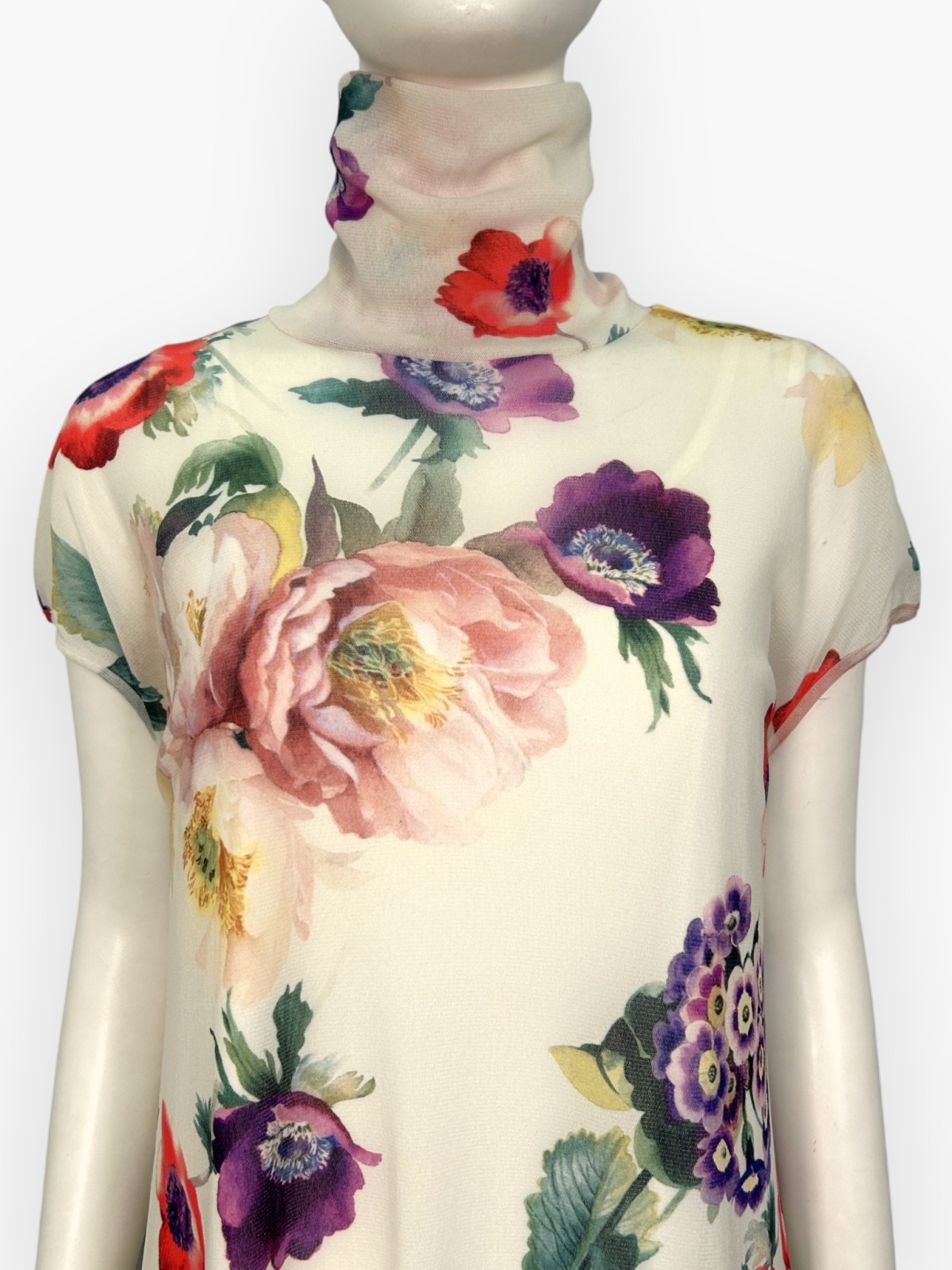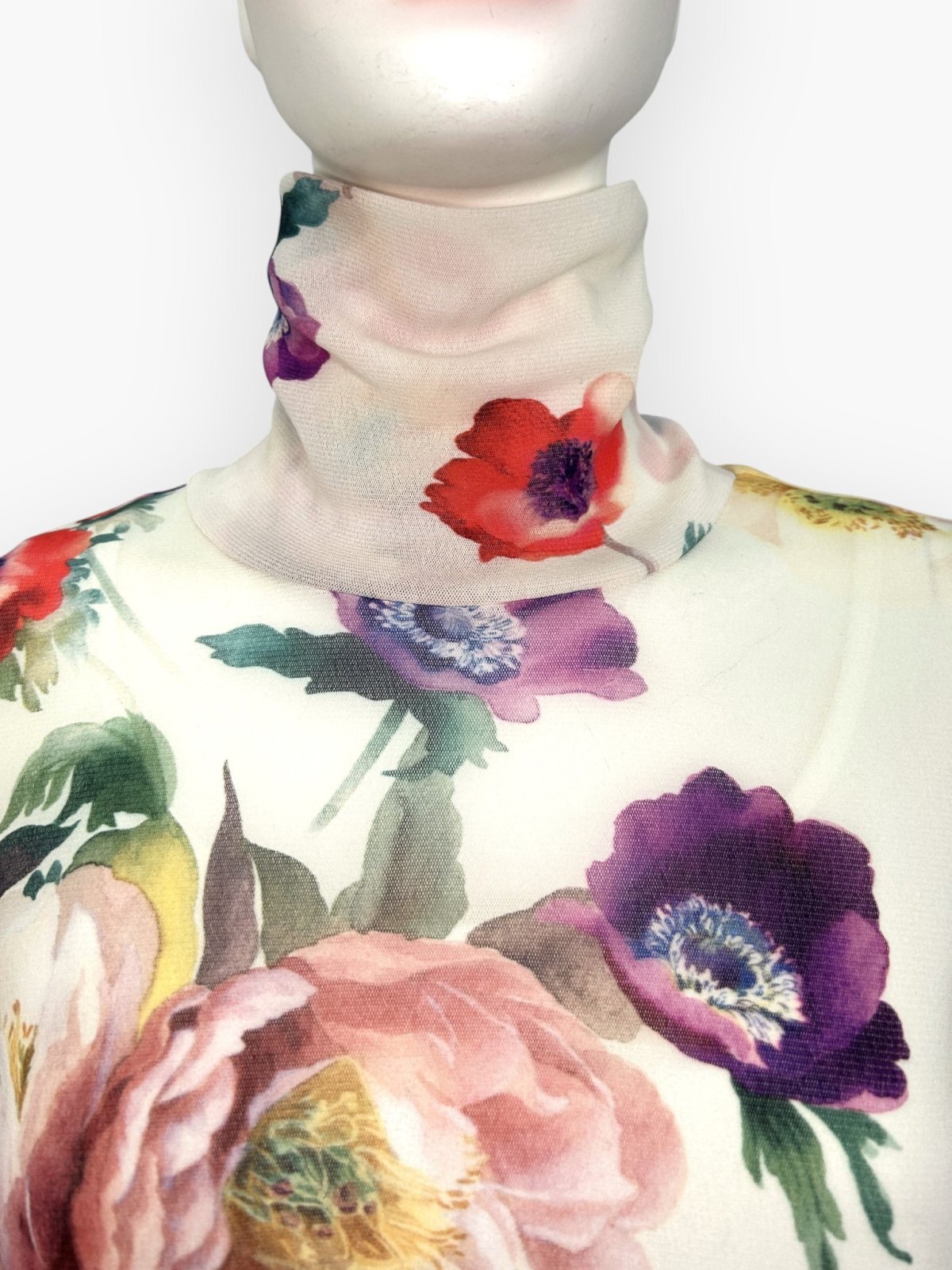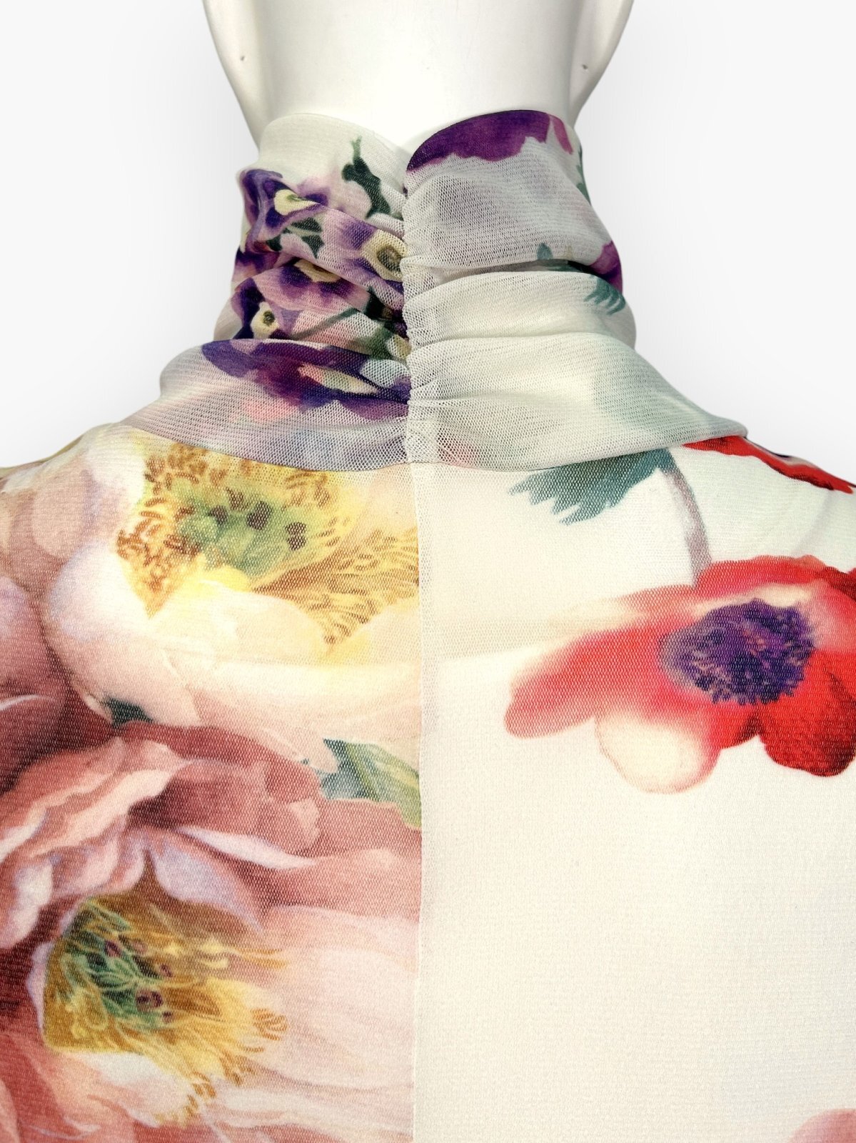抜群のストレッチ性があるチュールにアネモネ、プリムラオーリキュラ、ピオニーといった