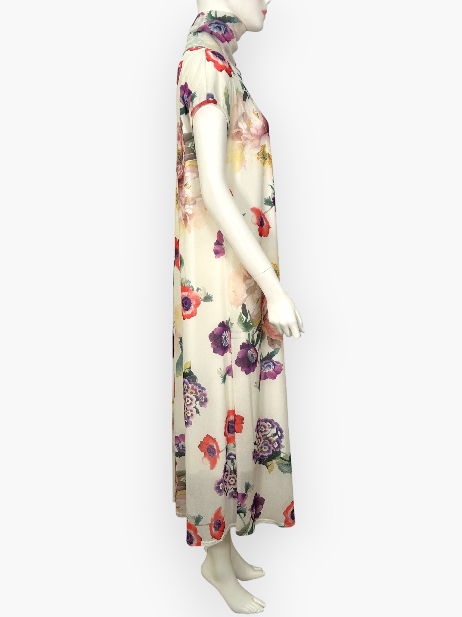 鮮やかで個性的な花を集めて散りばめた大胆なオリジナル柄をプリント。