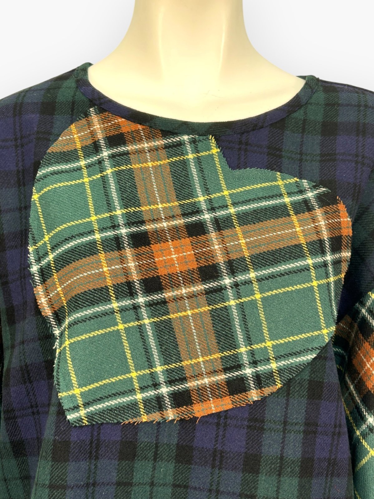 大胆なハートのパッチワークがポイントになった大人かわいいアイテムです。