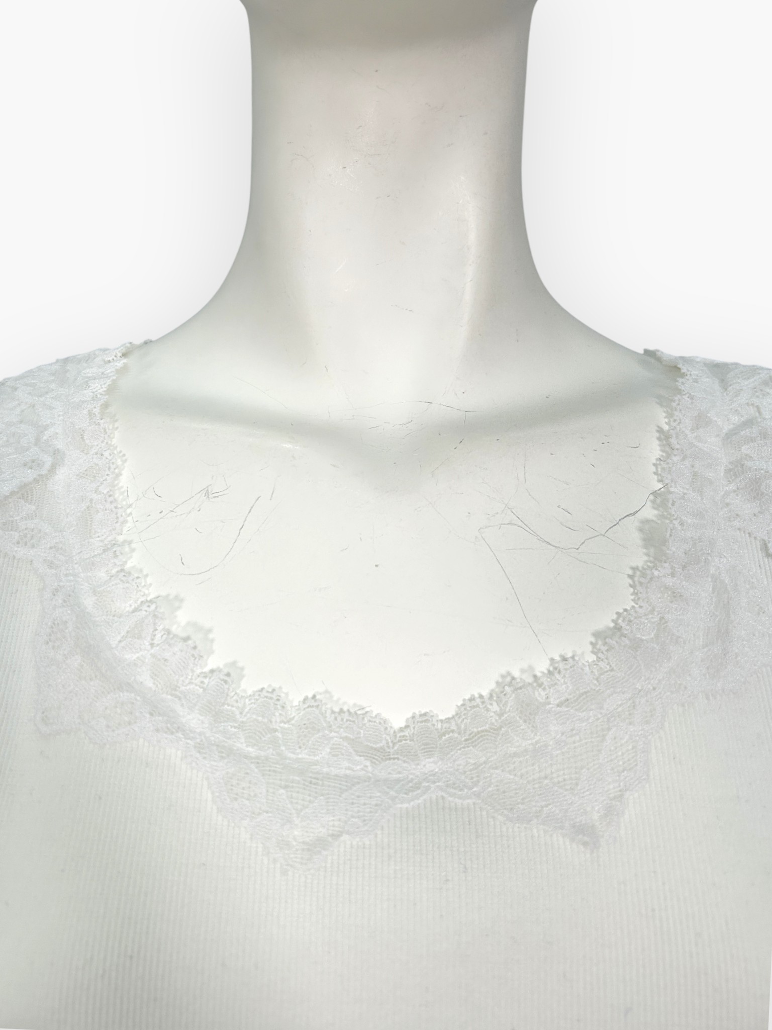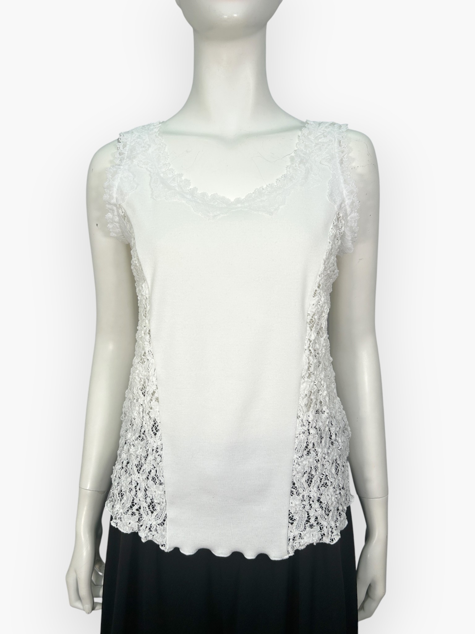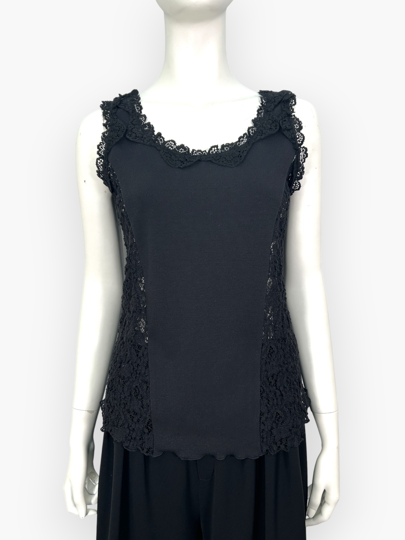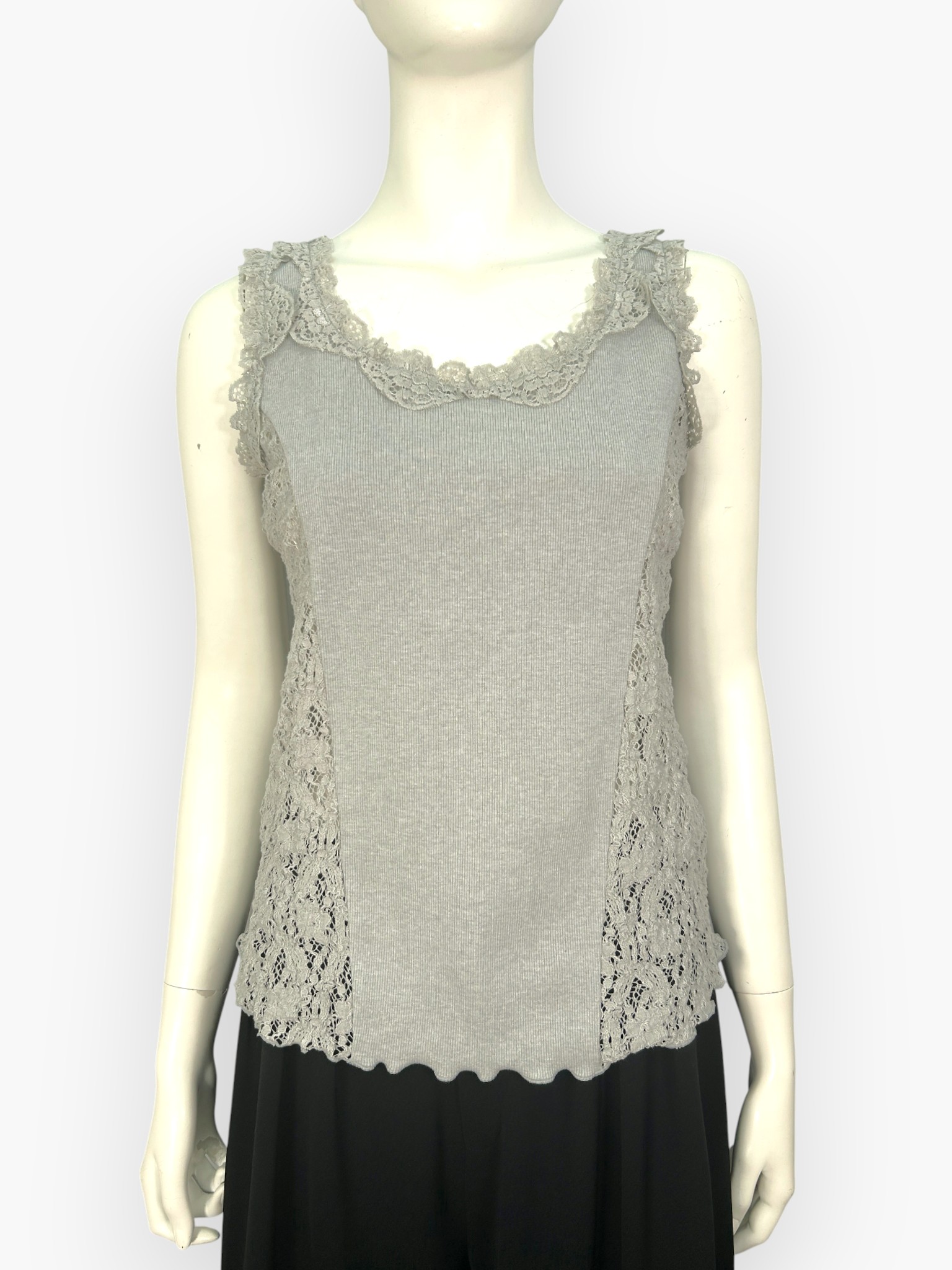 季節を問わずさまざまなスタイリングに取り入れられる、万能なレースリブタンクトップ。