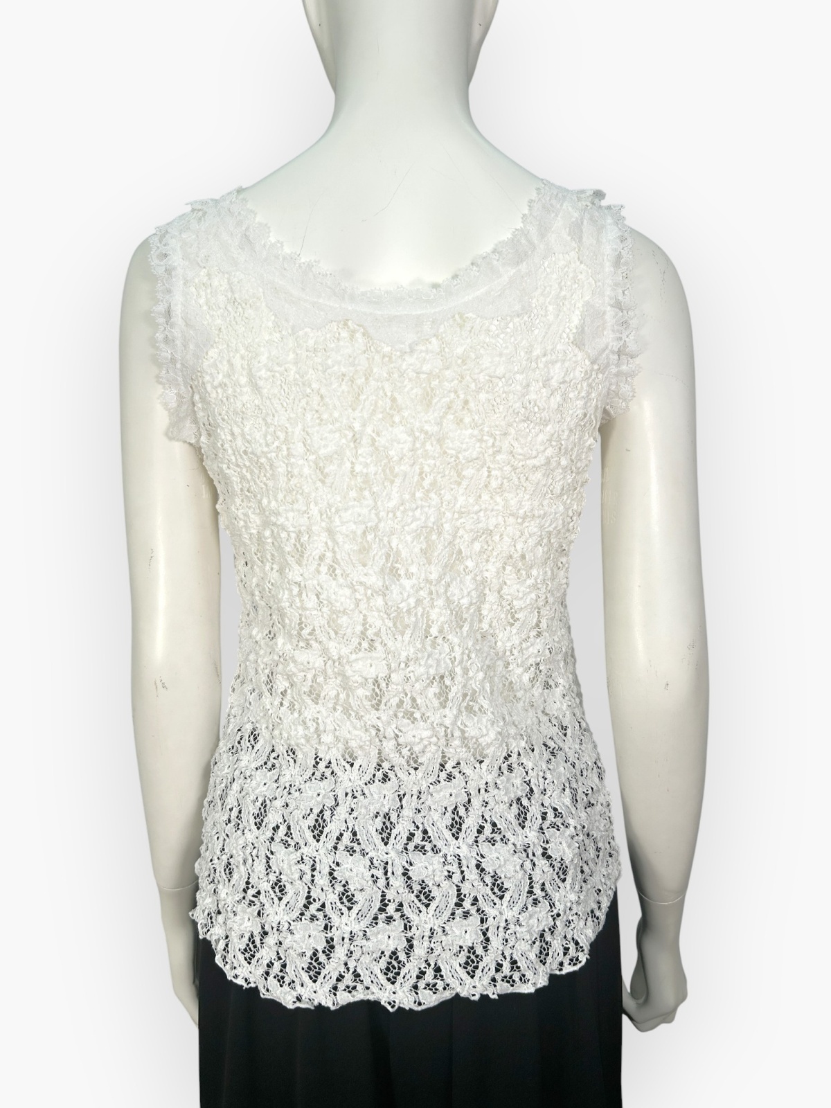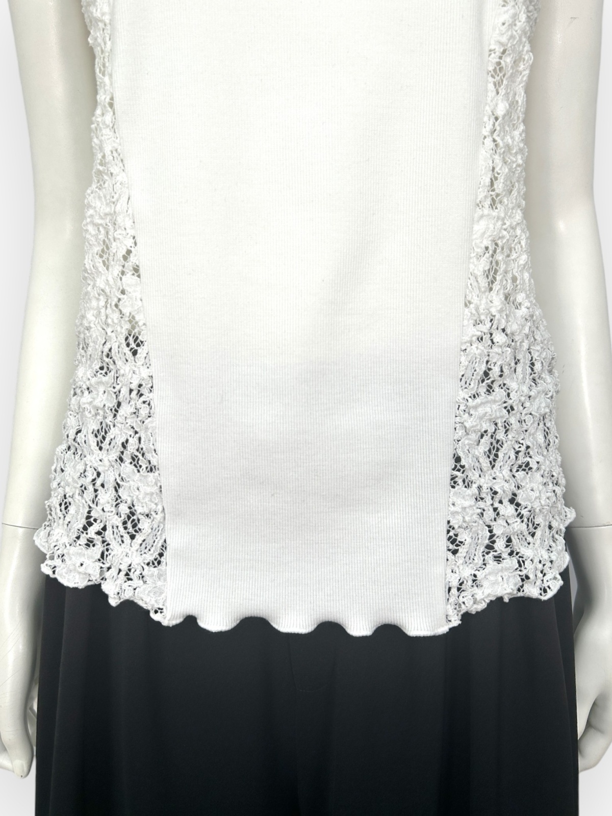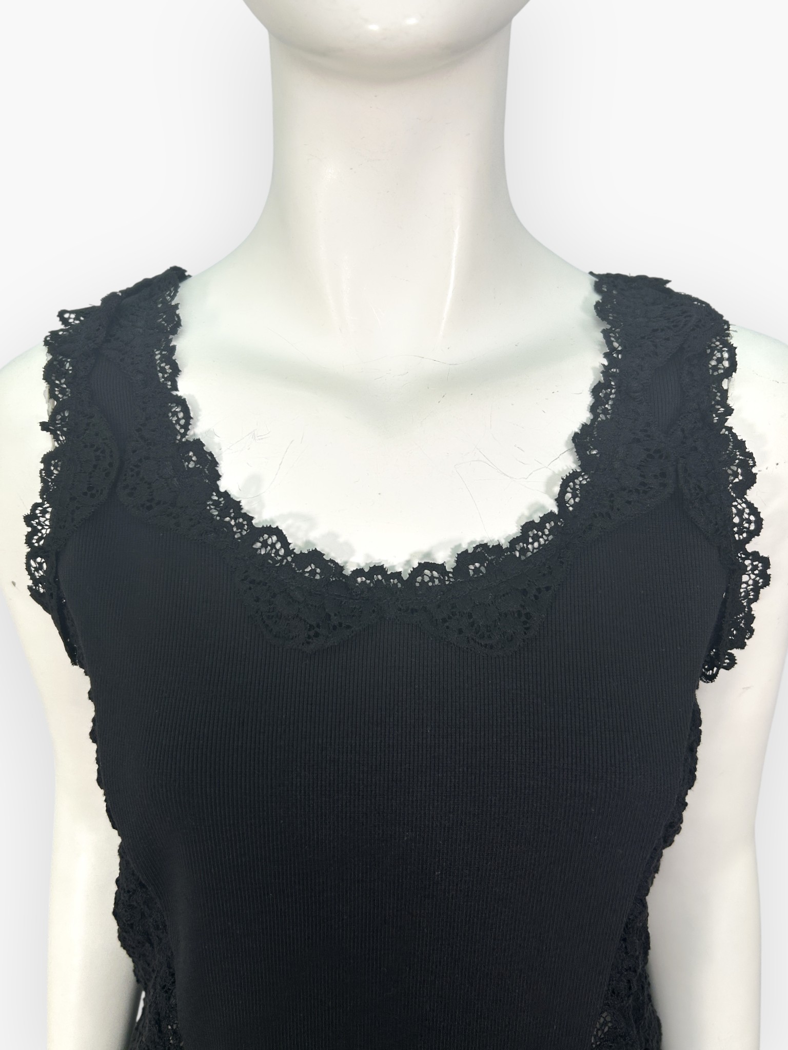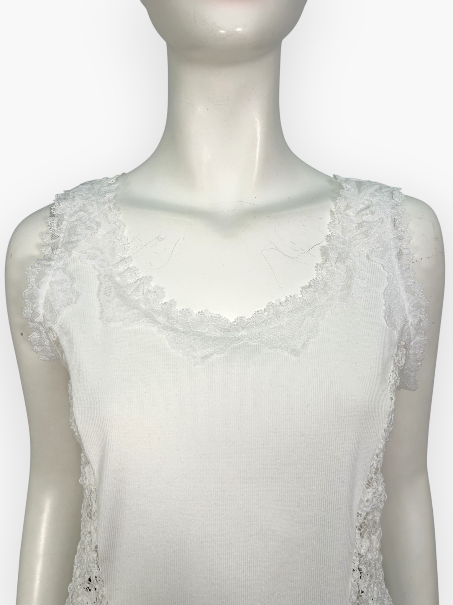 季節を問わずさまざまなスタイリングに取り入れられる、万能なレースリブタンクトップ。